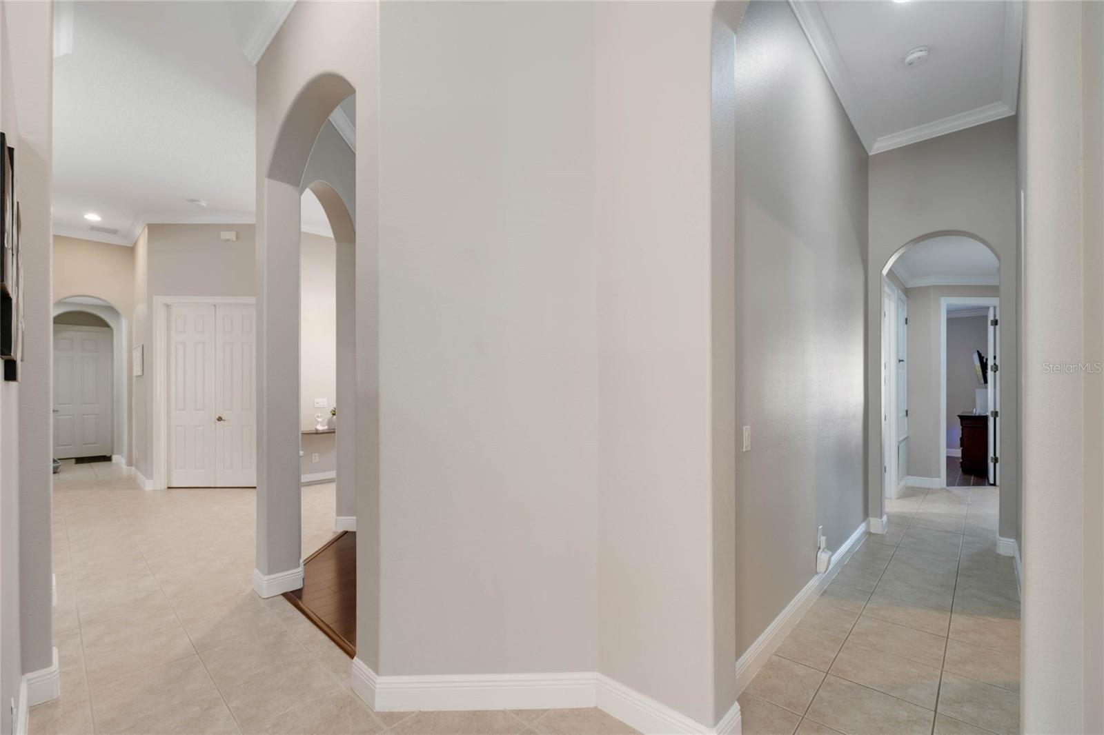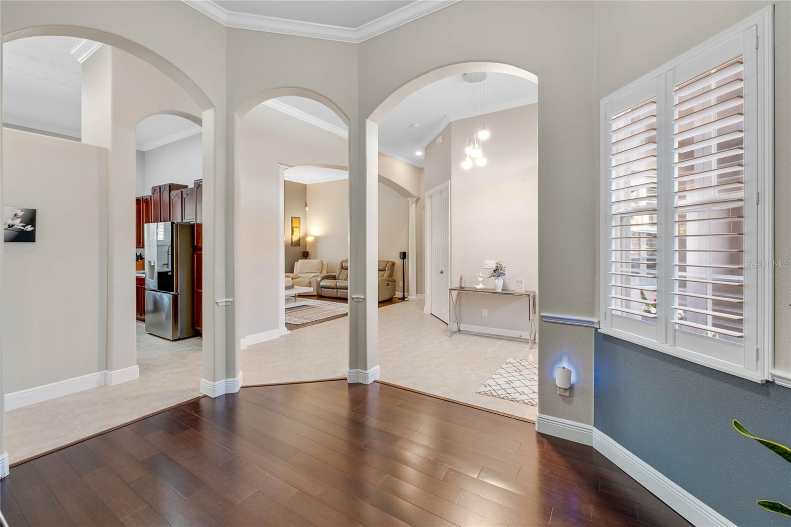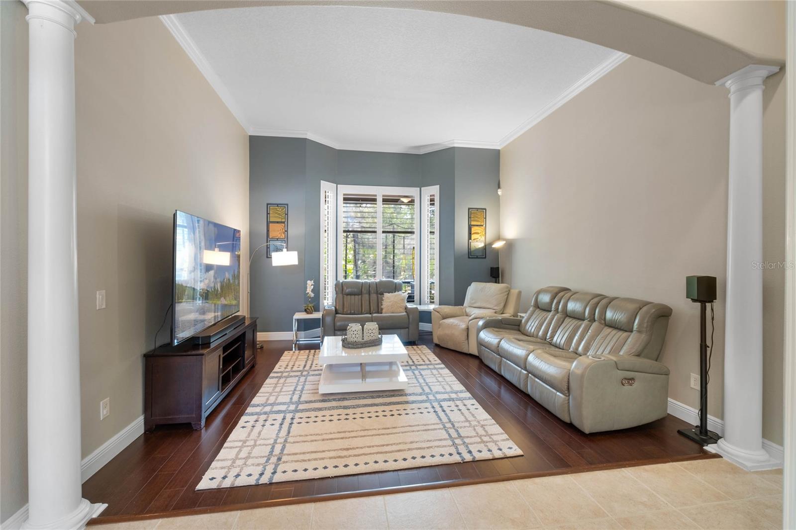 BEAUTIFUL BREEZES AND EXCEPTIONAL VIEWS IN THIS STUNNING "MAYFAIR" MODEL HOME LOVINGLY MAINTAINED ON A CONSERVATION LOT! An oversized brick paver driveway and walkways with pretty landscaping welcome you to your new chapter of serenity. There’s plenty of space to enjoy everyday living & entertaining in this open & generously sized 4 bedroom, 3 bath with an office/study and a 3 car garage offering 3,096 sq. ft. of elegant finishes. A brand new and magnificent kitchen delivers function & good looks with quartz counter tops, a large kitchen island made easy for the entertainer, a convenient breakfast bar, custom sink and upgraded lighting, a new LG Refrigerator including a speciality ice maker, a new Bosch Benchmark microwave and Bosch dishwasher, impressive 42” cabinetry with crown moldings and a marble backsplash, plenty of pantry space and a nicely sized eat in nook. The family room opens to the kitchen and is light and bright due to the windows overlooking the large backyard and conservation area allowing natural light in and creating a cozy atmosphere. The outdoor porch is screened with retractable screens (2024)- all yours to enjoy privately or with a crowd. Thoughtfully set far from the busy family area, you'll enter a spacious master suite through double doors with a large sitting area, a walk in closet and an impressive bathroom complete and newly renovated with a custom backsplash and flooring(2023), dual sinks & best of all, an oversized Clawfoot tub for luxuriating soaks. In addition this home offers three nicely sized bedrooms with an office and ensures ample personal space for everyone to work, play & rest. A simply stunning home built with the most exquisite luxuries. Additional extras to include; New roof (2019), New Tailwind Smart garage doors, New exterior doors (front and side entry-2019), New floors with Engineered Wood (2019), Plantation Shutters throughout (2019), New toilets (2019), New Rheem master suite AC (2019), New gutters (2019), New fire alarms (2019), Updated security system with contacts on every window and door (2019), New Samsung washer and dryer, New Smart Rheem water heater (2019), Full interior and exterior painting (2019), Crown molding added throughout (2019), New lighting fixtures and ceiling fans (2023), French drains added along both sides of home and driveway (2022), Tesla charging station installed (2022), New Daikin main AC with UV lighting and Smart safety switching and new drainage line (2023), Paver driveway and patio cleaned and sealed (2024), plenty of storage, impressive volume ceilings, plant shelves, tray ceilings and ceramic tile in all traffic areas. Cherry on Top features to include; Smart Home upgrades with Kasa switches, Hue lighting bulbs, an Ecobee thermostat, Rachio irrigation, doorbell and door locks! Conveniently located in the Sanctuary in a fabulous community with an oversized swimming pool, splash pad, fitness center, basketball courts and pickleball. Imagine ending your day watching the sun set over the glistening water and seeing beautiful wildlife. See this beautiful, move-in ready, model home & enjoy Florida style living at its best!