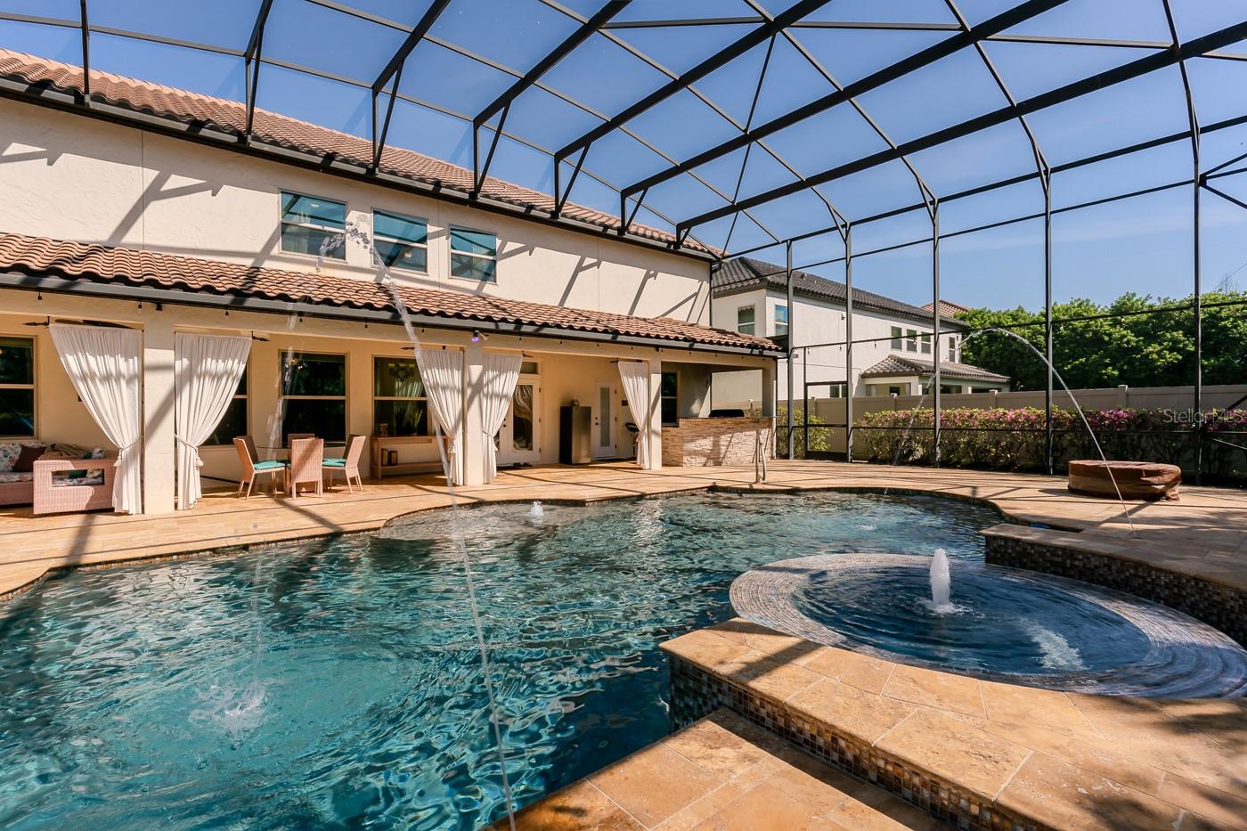 Welcome to your Mediterranean dream estate in an exclusive gated community. This stunning 7-bedroom, 5-bathroom residence blends timeless elegance with modern sophistication, offering over-the-top comfort and functionality. Designed for multi-generational living, the home features a luxurious primary suite on the first floor and an impressive double-primary bedroom retreat upstairs. Step into the heart of the home—a true chef’s gourmet kitchen outfitted with top-of-the-line appliances, double oven, custom cabinetry, and expansive countertops designed to inspire culinary excellence. The first floor boasts rich wood flooring throughout, while all bedrooms feature plush, high-end carpeting for added warmth and comfort. Resort-style living continues outdoors with a show-stopping 70,000-gallon heated pool, a jetted spa, cozy fire pit, and a fully equipped summer kitchen—perfect for entertaining under the stars. A dedicated office, media room, and smart-home integration for sound, security, pool, and lighting add the final touches to this one-of-a-kind sanctuary. Sophisticated, spacious, and move-in ready—this home defines luxury Florida living.