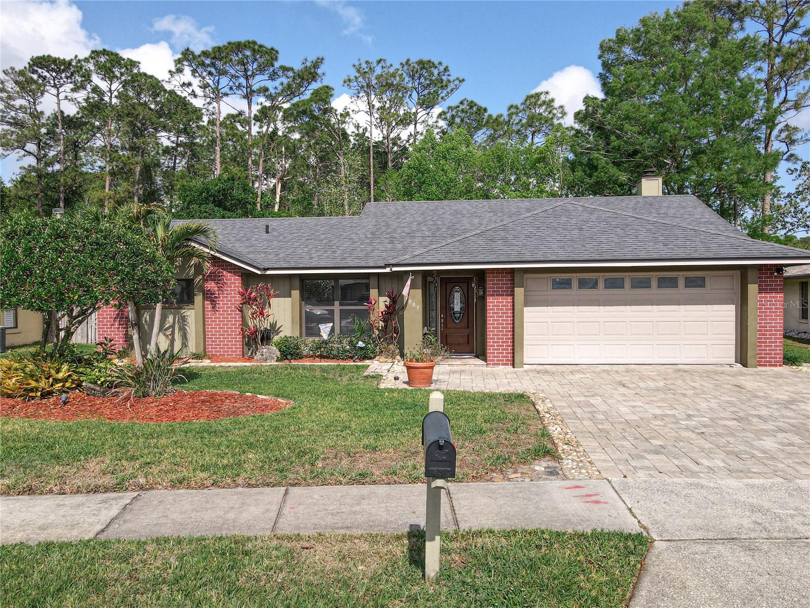 One or more photo(s) has been virtually staged. Welcome to Florida lifestyle at its best. Enjoy your Private Backyard Oasis with a Heated and Screened POOL complimented by a Large Covered Patio overlooking your Large 0.4 acre lot Without Rear Neighbors! This move-in ready pool home is in excellent condition. A paver driveway greets you as you arrive at the property. The Open Floor Plan flows from the Living Room to the Kitchen and into the Family Room. This home is perfect for entertaining! Newer slate kitchen appliances compliment the kitchen, with its ample counterspace and sit-at island where friends and family meet. Enjoy the brick, woodburning fireplace during the Holiday Season. Updated Tinted Windows, a New Electrical Panel, and a Newer AC, interior laundry, newer Rainbird irrigation, newer water heater (2019). Alafaya Woods community offers basketball & tennis courts and playground. Plus, you are located close to Oviedo’s top-rated schools, shops, restaurants, UCF, Seminole State College, Siemens and Lockheed Martin, as well as nearby highways.