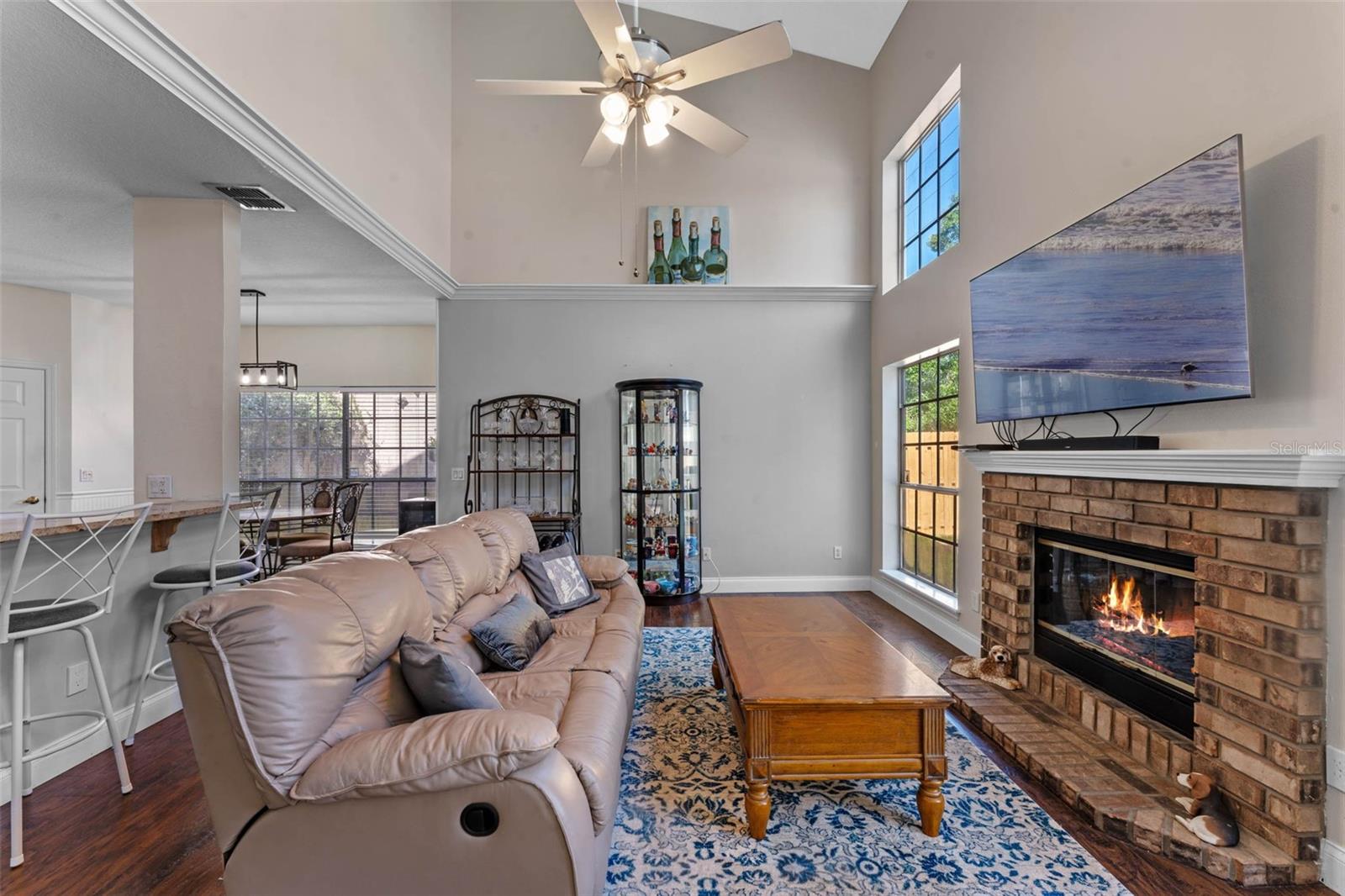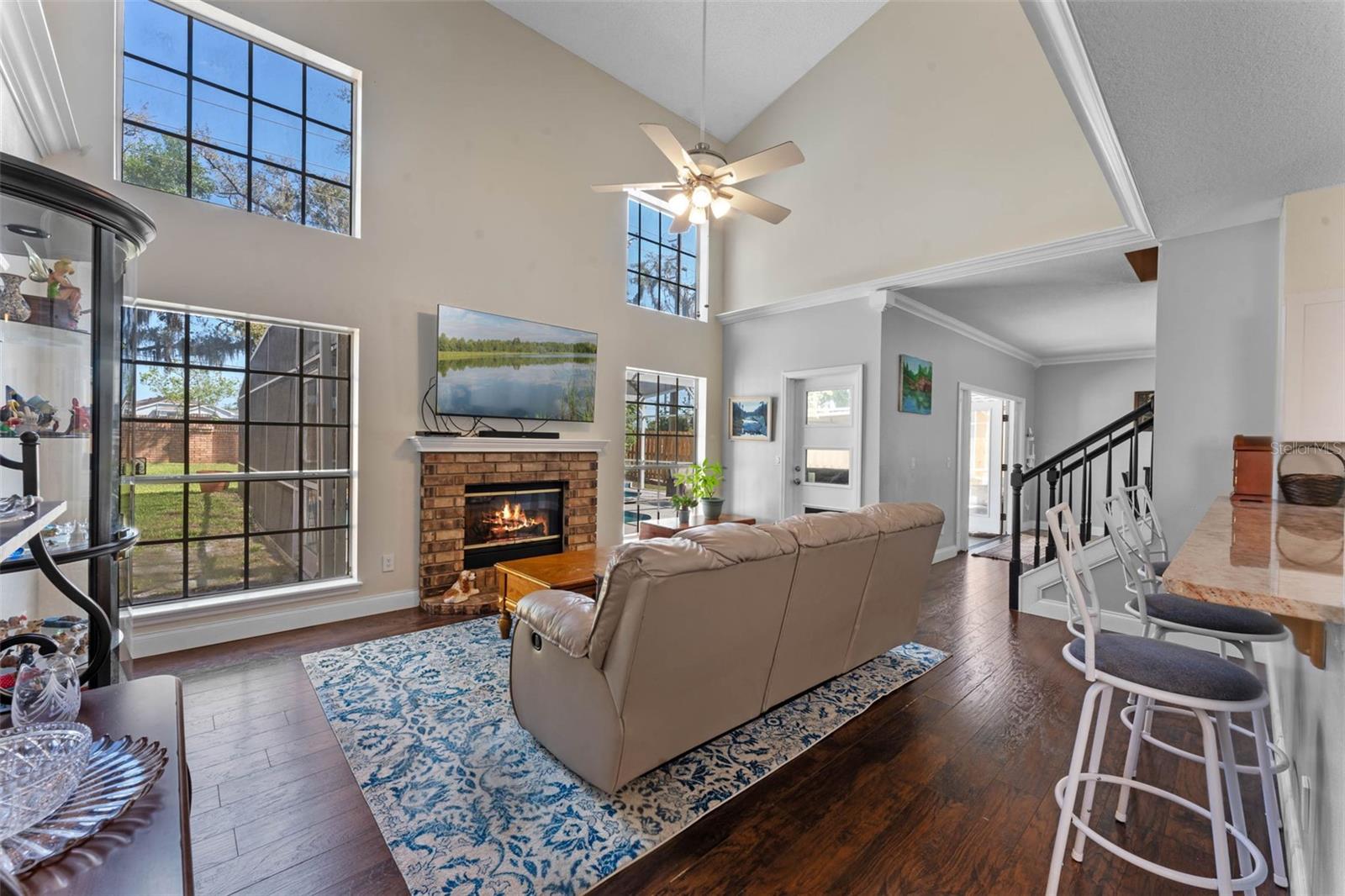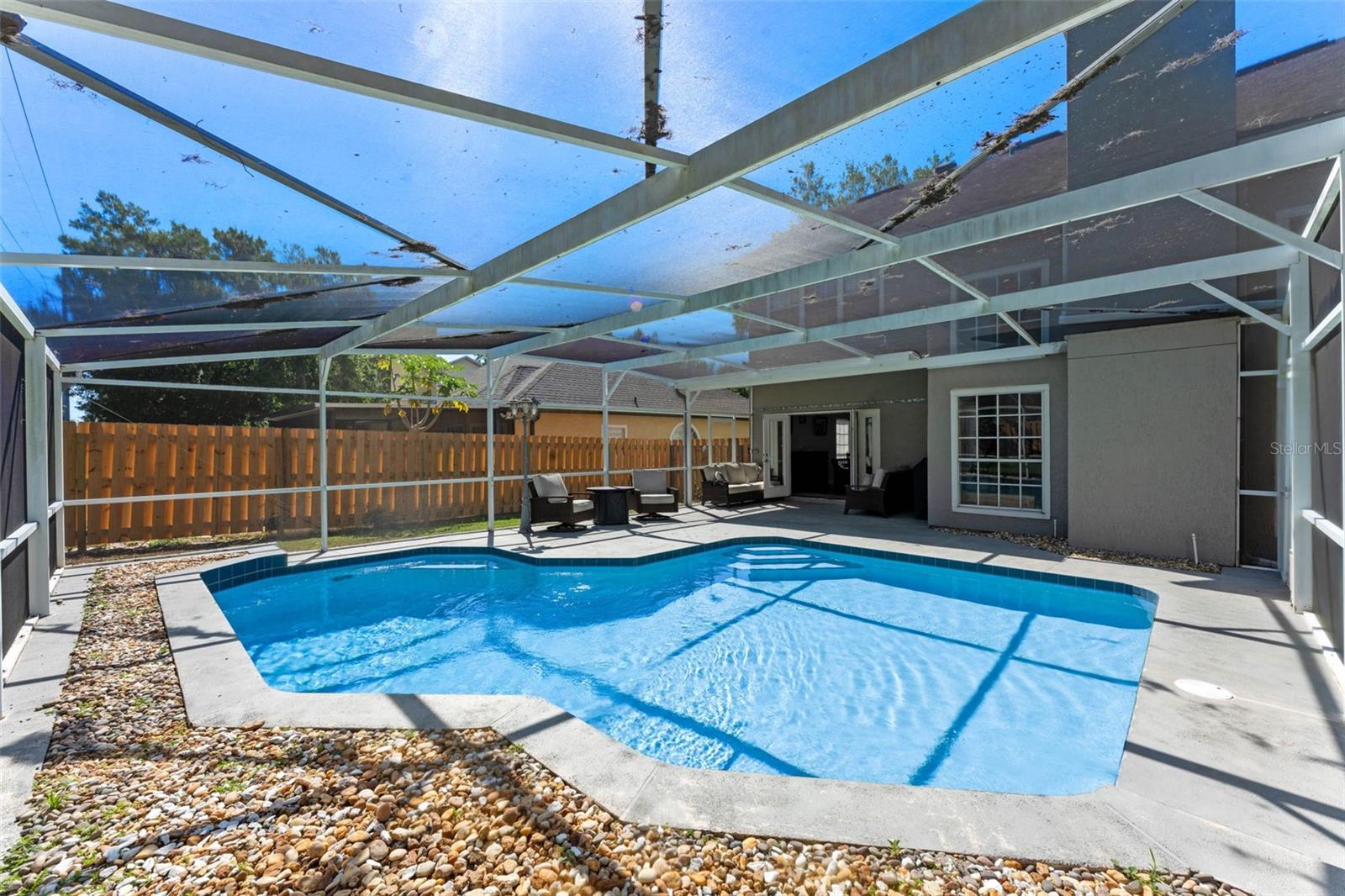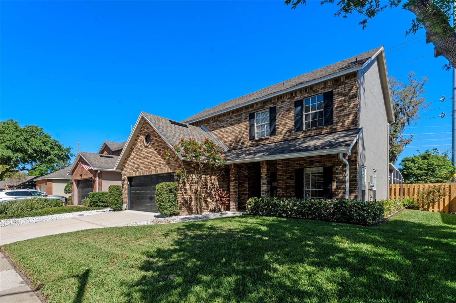 Nestled in a quiet community in Oviedo, just minutes from SR 417, top-rated schools, and countless shopping, dining, and entertainment options, this great home is ready to welcome the family on-the-go! Lush, mature landscaping, new driveway and garage door, and 2019 ROOF greet you upon approach to this beautiful, brick-faced home. Walk through the front door into a home flooded with natural lighting, neutral paint, TALL CEILINGS WITH CROWN MOLDING, and LAMINATE FLOORING that runs throughout. A spacious combination living and dining room opens to the patio via FRENCH DOORS, creating seamless indoor/outdoor living and the ideal space for entertaining and large family gatherings. The spacious, combination kitchen and family room is the true heart of the home - complete with wood-burning fireplace, patio access, and soaring ceilings. The kitchen is complete with white cabinetry, miles of GRANITE COUNTERTOPS, STAINLESS APPLIANCES, BUILT-IN DOUBLE OVENS, arched brick stovetop surround, island, spacious breakfast bar, and dinette. The laundry room, with garage access, and a half bath, for convenience, round out the first floor of the home. Upstairs you will find the primary suite, three secondary bedrooms, and a secondary bathroom. The spacious primary suite boasts DOUBLE WALK-IN CLOSETS, pool views, tall ceilings, and UPDATED EN-SUITE BATHROOM, complete with large double-sink vanity and beautifully tiled shower. The three secondary bedrooms offer tall ceilings, ceiling fans, and large closets while the secondary bathroom boasts a double-sink vanity and shower/tub combo. WHOLE HOUSE WATER TREATMENT SYSTEM stays with the home. $3,500 value! Out back, a covered patio opens to a large pool deck with private pool, all under screen enclosure. The large private pool is perfect for escaping the hot Florida sun with a game of Marco Polo or pool float. This all overlooks a large yard with NEW FENCE, perfect for letting your little ones and pets run around without worry, and SHED, great for all your storage needs. This home is zoned for Rainbow Elementary, Tuskawilla Middle, and Lake Howell High School. Rainbow Elementary is rated #1 in Seminole County Public Schools District Elementary Schools, according to U.S. News & World Reports. Don’t miss out on your chance to call this home your own!