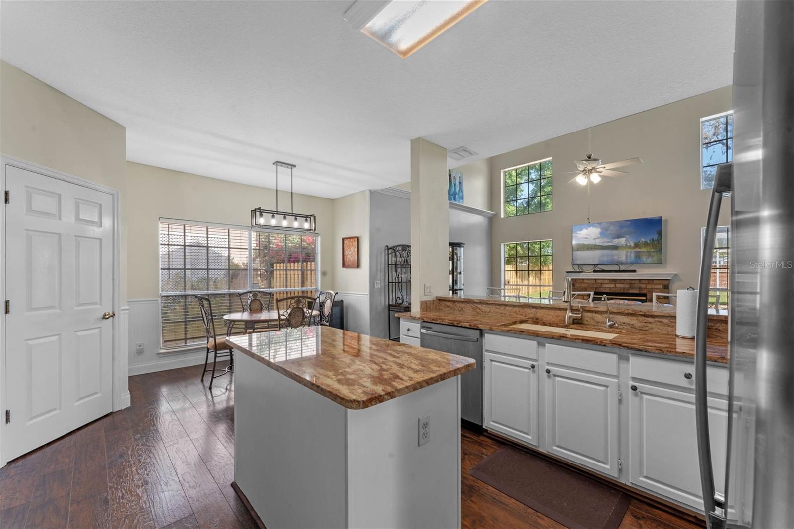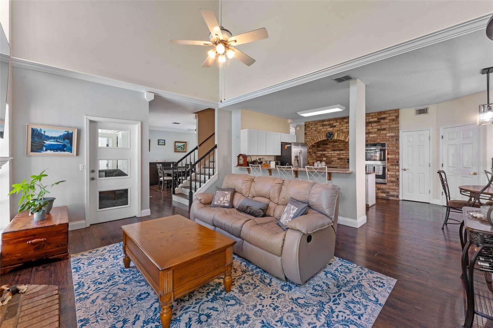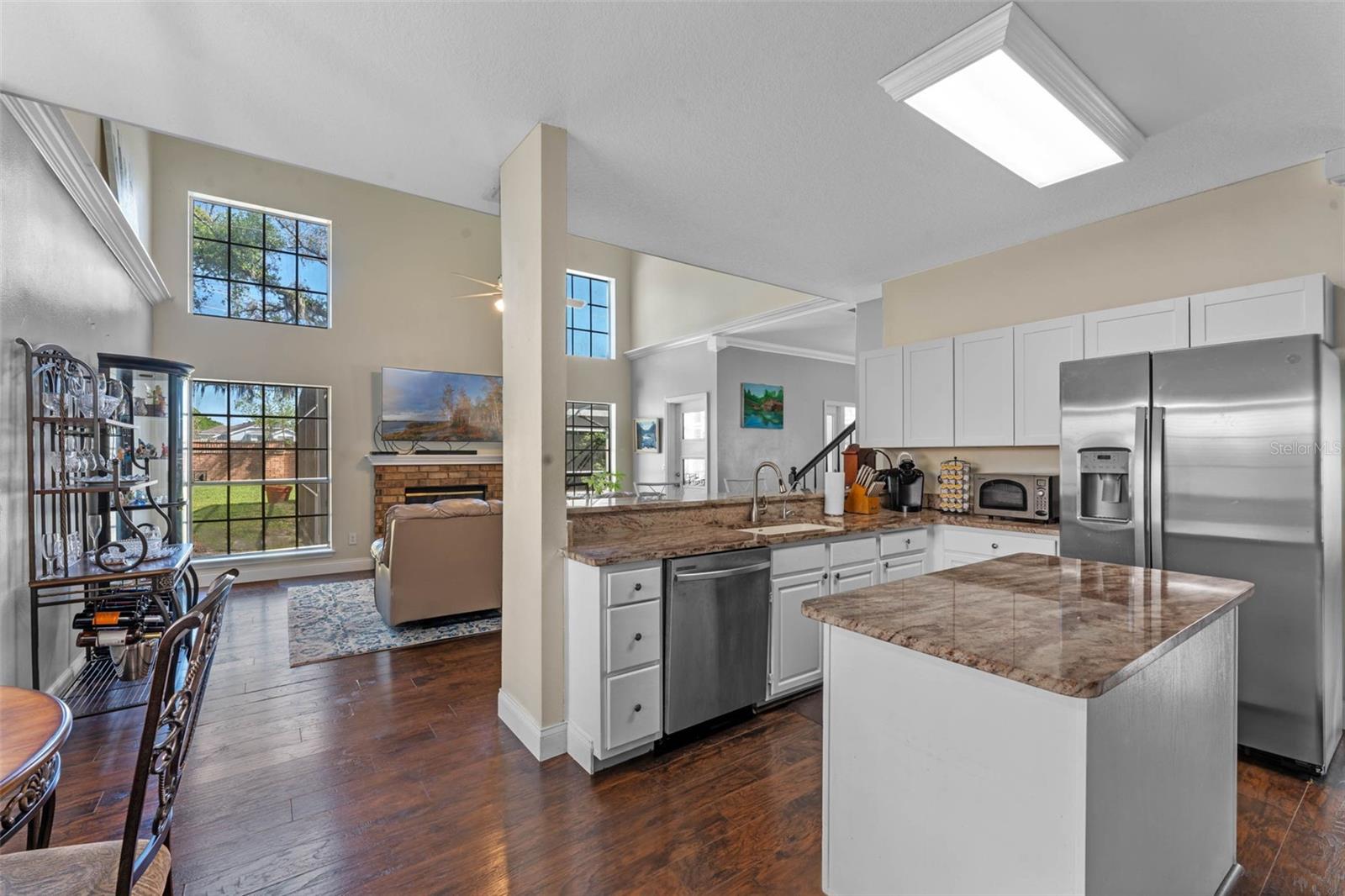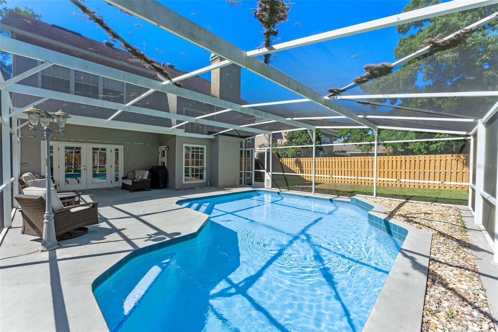 Nestled in a quiet community in Oviedo, just minutes from SR 417, top-rated schools, and countless shopping, dining, and entertainment options, this great home is ready to welcome the family on-the-go! Lush, mature landscaping, new driveway and garage door, and 2019 ROOF greet you upon approach to this beautiful, brick-faced home. Walk through the front door into a home flooded with natural lighting, neutral paint, TALL CEILINGS WITH CROWN MOLDING, and LAMINATE FLOORING that runs throughout. A spacious combination living and dining room opens to the patio via FRENCH DOORS, creating seamless indoor/outdoor living and the ideal space for entertaining and large family gatherings. The spacious, combination kitchen and family room is the true heart of the home - complete with wood-burning fireplace, patio access, and soaring ceilings. The kitchen is complete with white cabinetry, miles of GRANITE COUNTERTOPS, STAINLESS APPLIANCES, BUILT-IN DOUBLE OVENS, arched brick stovetop surround, island, spacious breakfast bar, and dinette. The laundry room, with garage access, and a half bath, for convenience, round out the first floor of the home. Upstairs you will find the primary suite, three secondary bedrooms, and a secondary bathroom. The spacious primary suite boasts DOUBLE WALK-IN CLOSETS, pool views, tall ceilings, and UPDATED EN-SUITE BATHROOM, complete with large double-sink vanity and beautifully tiled shower. The three secondary bedrooms offer tall ceilings, ceiling fans, and large closets while the secondary bathroom boasts a double-sink vanity and shower/tub combo. WHOLE HOUSE WATER TREATMENT SYSTEM stays with the home. $3,500 value! Out back, a covered patio opens to a large pool deck with private pool, all under screen enclosure. The large private pool is perfect for escaping the hot Florida sun with a game of Marco Polo or pool float. This all overlooks a large yard with NEW FENCE, perfect for letting your little ones and pets run around without worry, and SHED, great for all your storage needs. This home is zoned for Rainbow Elementary, Tuskawilla Middle, and Lake Howell High School. Rainbow Elementary is rated #1 in Seminole County Public Schools District Elementary Schools, according to U.S. News & World Reports. Don’t miss out on your chance to call this home your own!