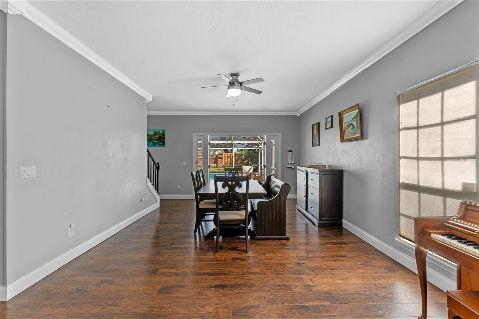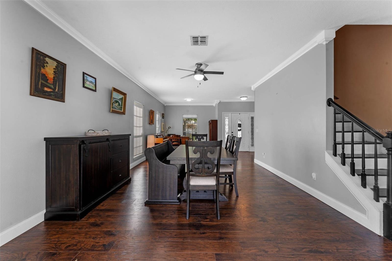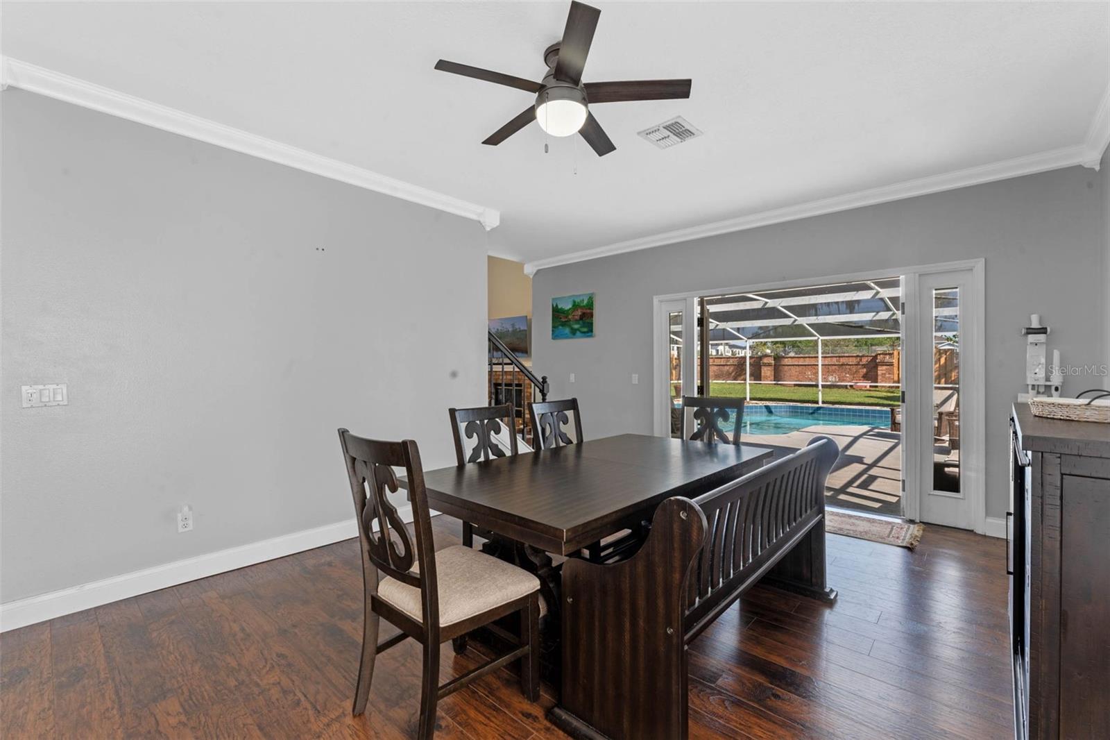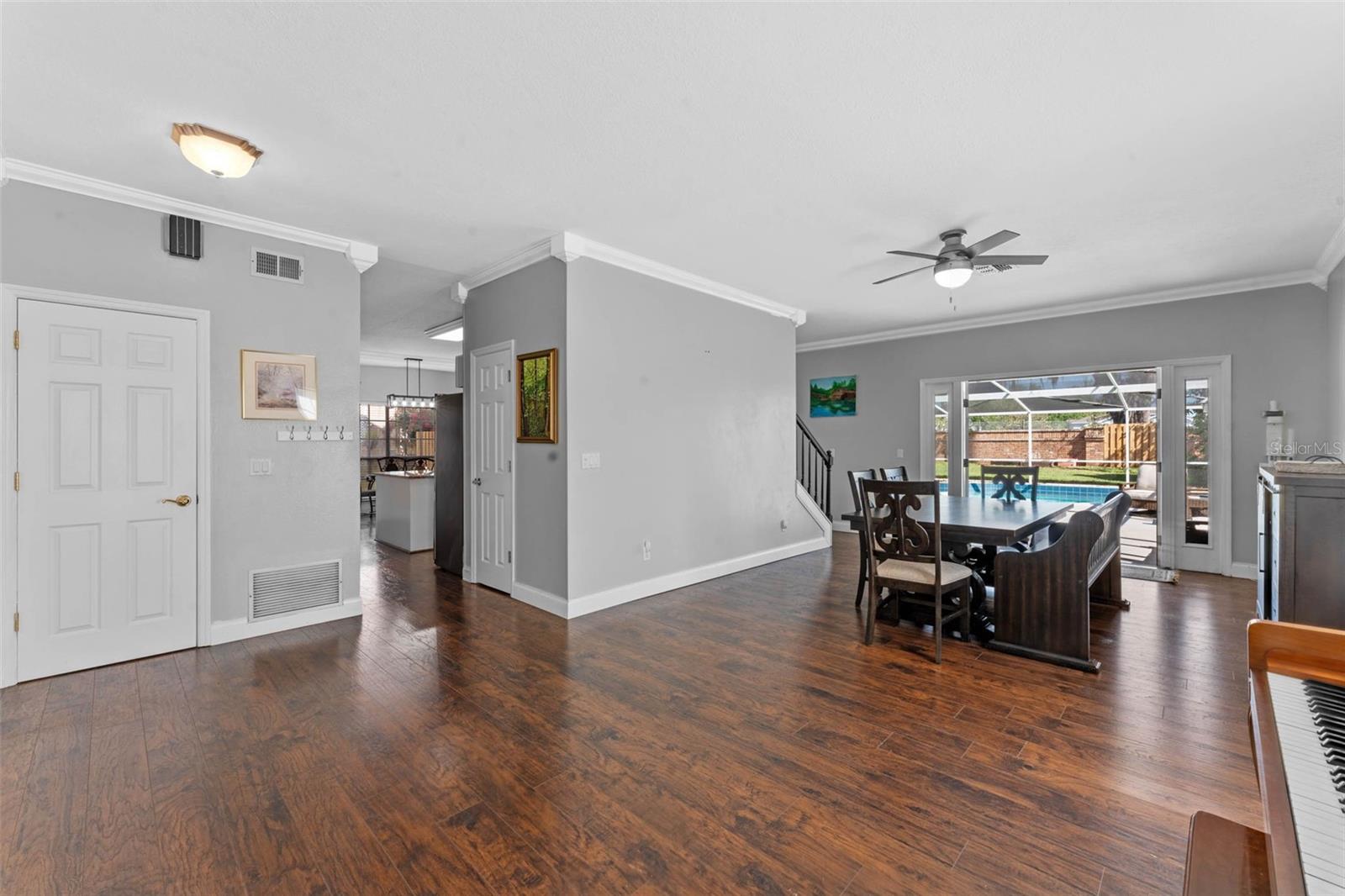 Nestled in a quiet community in Oviedo, just minutes from SR 417, top-rated schools, and countless shopping, dining, and entertainment options, this great home is ready to welcome the family on-the-go! Lush, mature landscaping, new driveway and garage door, and 2019 ROOF greet you upon approach to this beautiful, brick-faced home. Walk through the front door into a home flooded with natural lighting, neutral paint, TALL CEILINGS WITH CROWN MOLDING, and LAMINATE FLOORING that runs throughout. A spacious combination living and dining room opens to the patio via FRENCH DOORS, creating seamless indoor/outdoor living and the ideal space for entertaining and large family gatherings. The spacious, combination kitchen and family room is the true heart of the home - complete with wood-burning fireplace, patio access, and soaring ceilings. The kitchen is complete with white cabinetry, miles of GRANITE COUNTERTOPS, STAINLESS APPLIANCES, BUILT-IN DOUBLE OVENS, arched brick stovetop surround, island, spacious breakfast bar, and dinette. The laundry room, with garage access, and a half bath, for convenience, round out the first floor of the home. Upstairs you will find the primary suite, three secondary bedrooms, and a secondary bathroom. The spacious primary suite boasts DOUBLE WALK-IN CLOSETS, pool views, tall ceilings, and UPDATED EN-SUITE BATHROOM, complete with large double-sink vanity and beautifully tiled shower. The three secondary bedrooms offer tall ceilings, ceiling fans, and large closets while the secondary bathroom boasts a double-sink vanity and shower/tub combo. WHOLE HOUSE WATER TREATMENT SYSTEM stays with the home. $3,500 value! Out back, a covered patio opens to a large pool deck with private pool, all under screen enclosure. The large private pool is perfect for escaping the hot Florida sun with a game of Marco Polo or pool float. This all overlooks a large yard with NEW FENCE, perfect for letting your little ones and pets run around without worry, and SHED, great for all your storage needs. This home is zoned for Rainbow Elementary, Tuskawilla Middle, and Lake Howell High School. Rainbow Elementary is rated #1 in Seminole County Public Schools District Elementary Schools, according to U.S. News & World Reports. Don’t miss out on your chance to call this home your own!