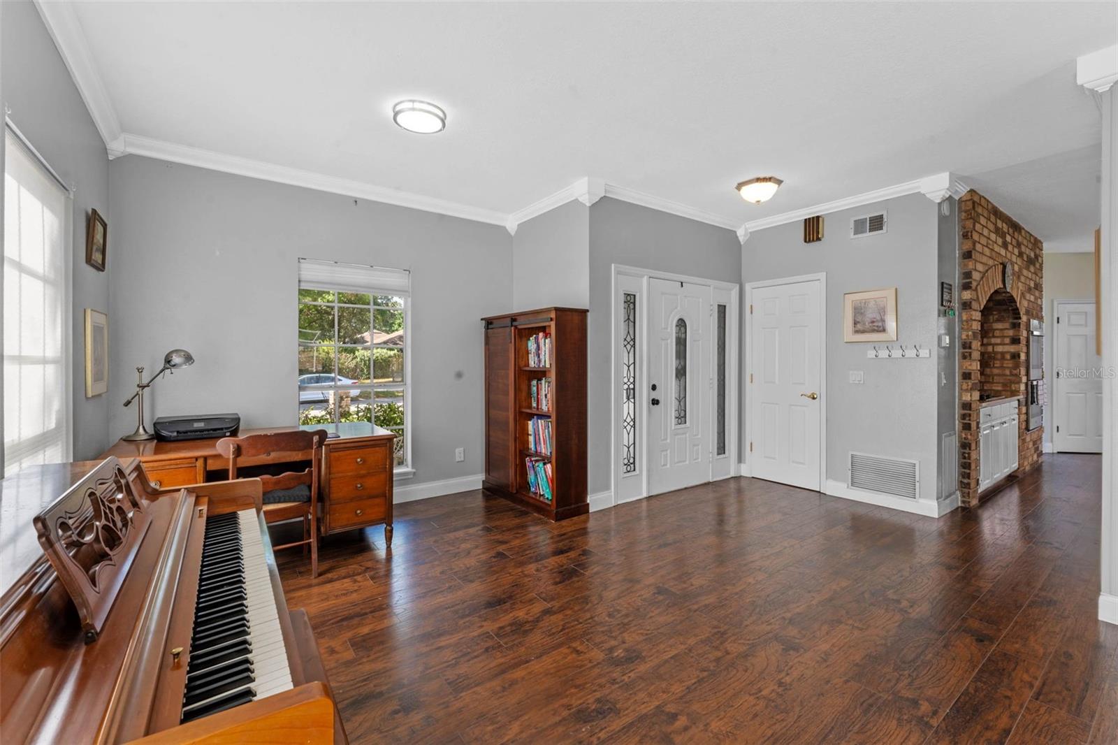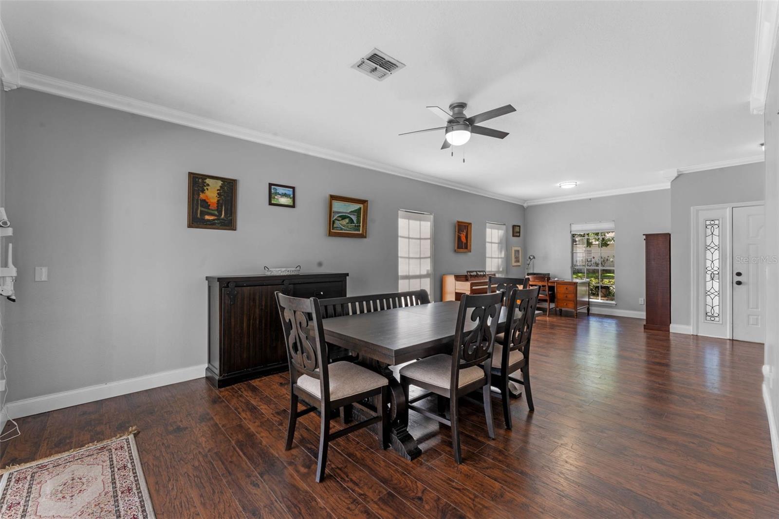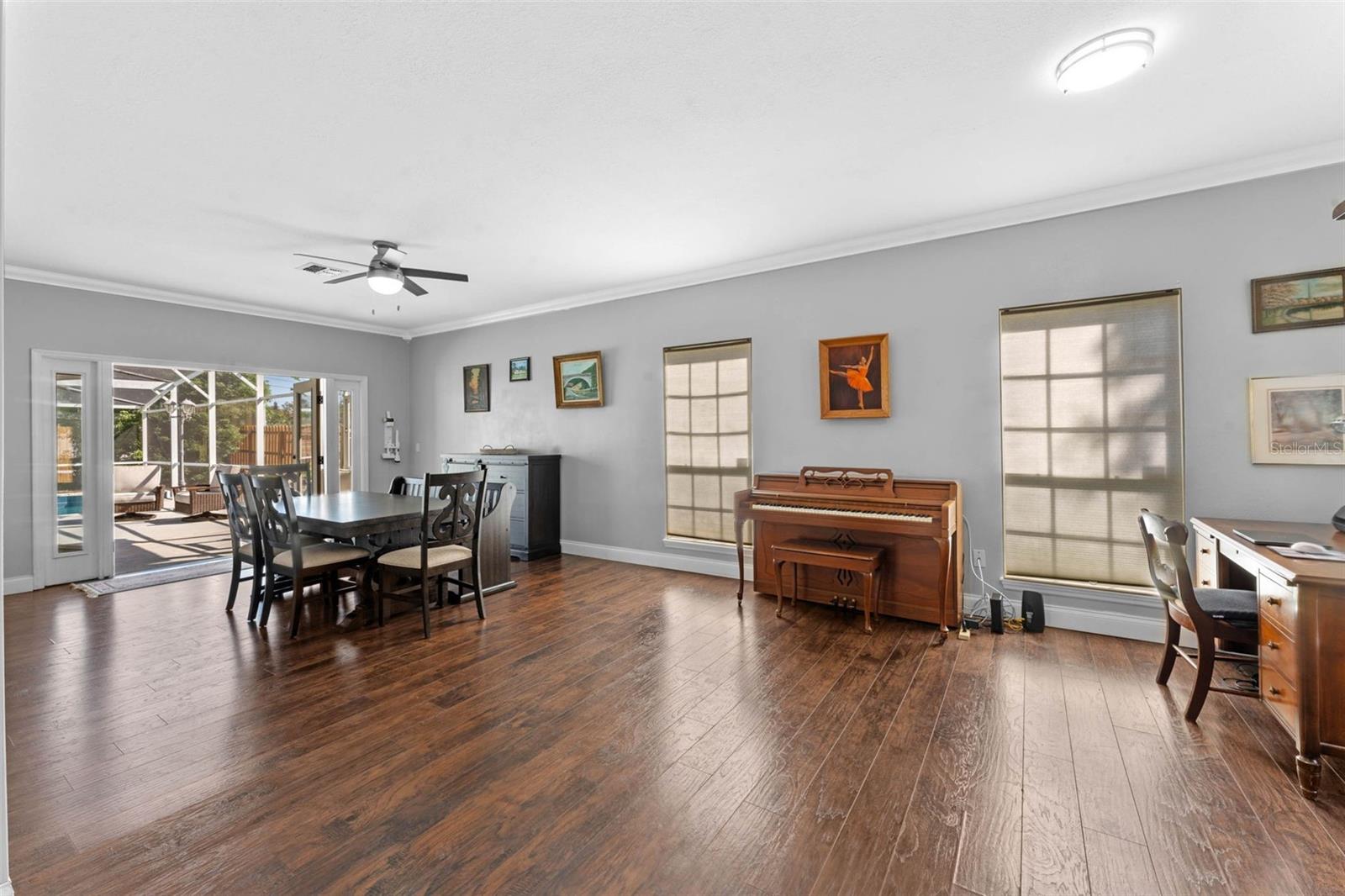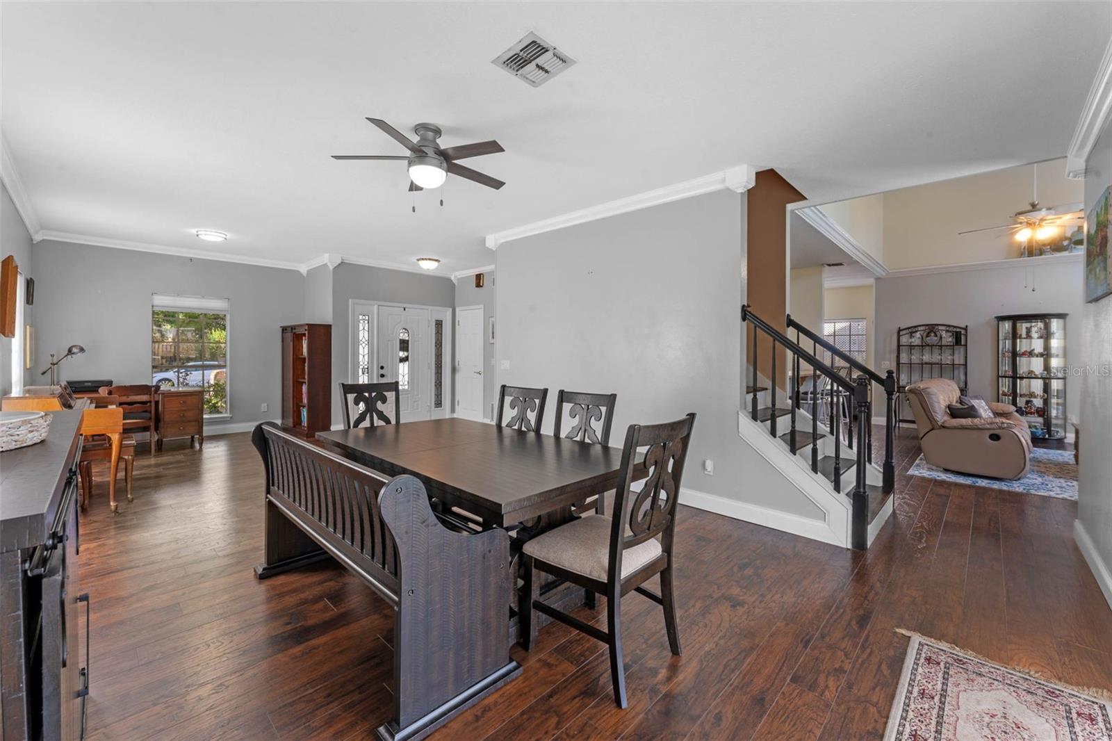 Nestled in a quiet community in Oviedo, just minutes from SR 417, top-rated schools, and countless shopping, dining, and entertainment options, this great home is ready to welcome the family on-the-go! Lush, mature landscaping, new driveway and garage door, and 2019 ROOF greet you upon approach to this beautiful, brick-faced home. Walk through the front door into a home flooded with natural lighting, neutral paint, TALL CEILINGS WITH CROWN MOLDING, and LAMINATE FLOORING that runs throughout. A spacious combination living and dining room opens to the patio via FRENCH DOORS, creating seamless indoor/outdoor living and the ideal space for entertaining and large family gatherings. The spacious, combination kitchen and family room is the true heart of the home - complete with wood-burning fireplace, patio access, and soaring ceilings. The kitchen is complete with white cabinetry, miles of GRANITE COUNTERTOPS, STAINLESS APPLIANCES, BUILT-IN DOUBLE OVENS, arched brick stovetop surround, island, spacious breakfast bar, and dinette. The laundry room, with garage access, and a half bath, for convenience, round out the first floor of the home. Upstairs you will find the primary suite, three secondary bedrooms, and a secondary bathroom. The spacious primary suite boasts DOUBLE WALK-IN CLOSETS, pool views, tall ceilings, and UPDATED EN-SUITE BATHROOM, complete with large double-sink vanity and beautifully tiled shower. The three secondary bedrooms offer tall ceilings, ceiling fans, and large closets while the secondary bathroom boasts a double-sink vanity and shower/tub combo. WHOLE HOUSE WATER TREATMENT SYSTEM stays with the home. $3,500 value! Out back, a covered patio opens to a large pool deck with private pool, all under screen enclosure. The large private pool is perfect for escaping the hot Florida sun with a game of Marco Polo or pool float. This all overlooks a large yard with NEW FENCE, perfect for letting your little ones and pets run around without worry, and SHED, great for all your storage needs. This home is zoned for Rainbow Elementary, Tuskawilla Middle, and Lake Howell High School. Rainbow Elementary is rated #1 in Seminole County Public Schools District Elementary Schools, according to U.S. News & World Reports. Don’t miss out on your chance to call this home your own!