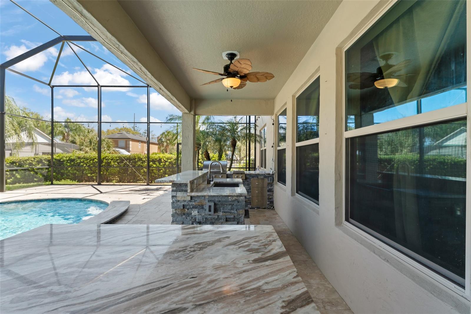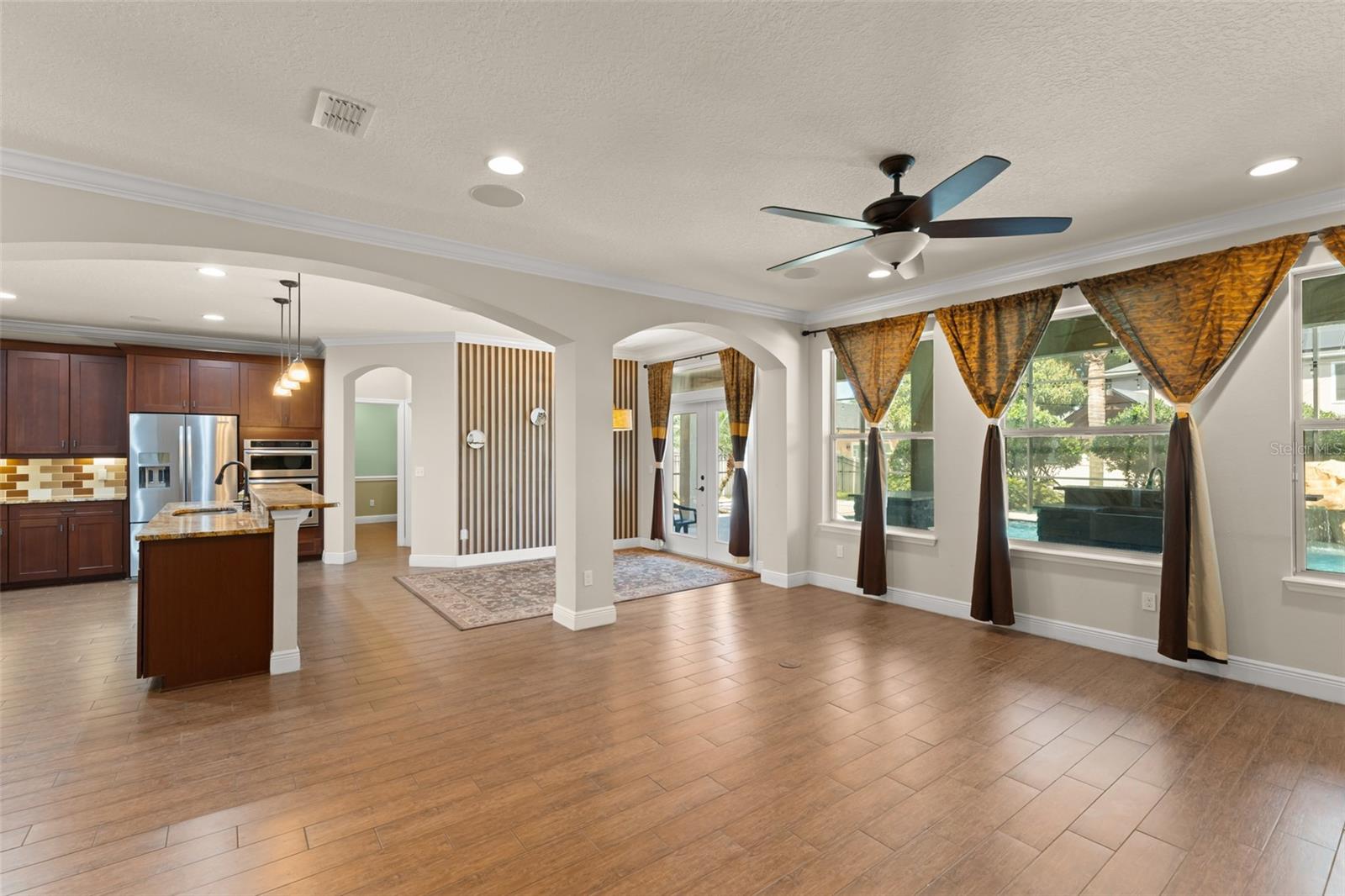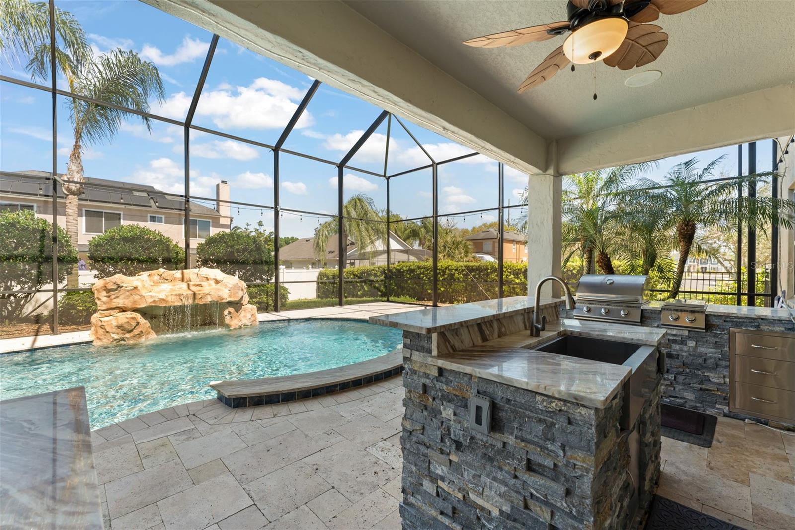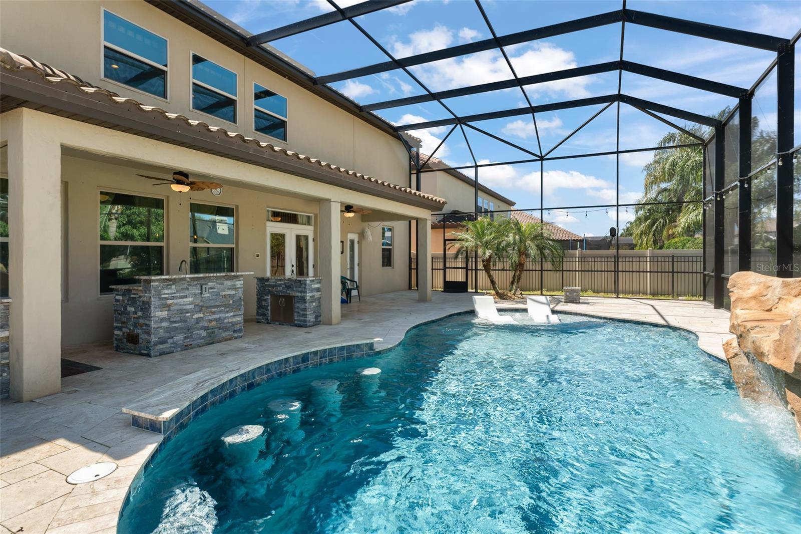 Welcome to the former model home of the sought after Ellingsworth community in beautiful Oveido, FL. This 7 bed / 5 bath corner lot pool home has tons of custom features not found in any other home in the community. This Del Rio model features Tesla solar panels, upgraded flooring, lighting fixtures, landscaping, and beautiful designer only options including paint and trim in all rooms. Gourmet kitchen flows through to the dining nook, family room, and private rear patio. Duel Master Suites, upstairs and down, ensures that everyone has a private escape. This home also features an open, over-sized game room with a custom theater room and living, dining, and study areas. A stunning resort like pool with a full outdoor kitchen make this backyard the perfect place to spend your summer with friends and family! This community of beautiful architectural homes is located just minutes from SR 434, SR 417 and McCulloch Road, convenient to Downtown Orlando, UCF, the International Airport, area recreation like Econ River Wilderness Area and Oviedo River Side Park, and area shopping like the Oviedo Mall, Winter Springs Town Center as well as Millenia Mall.