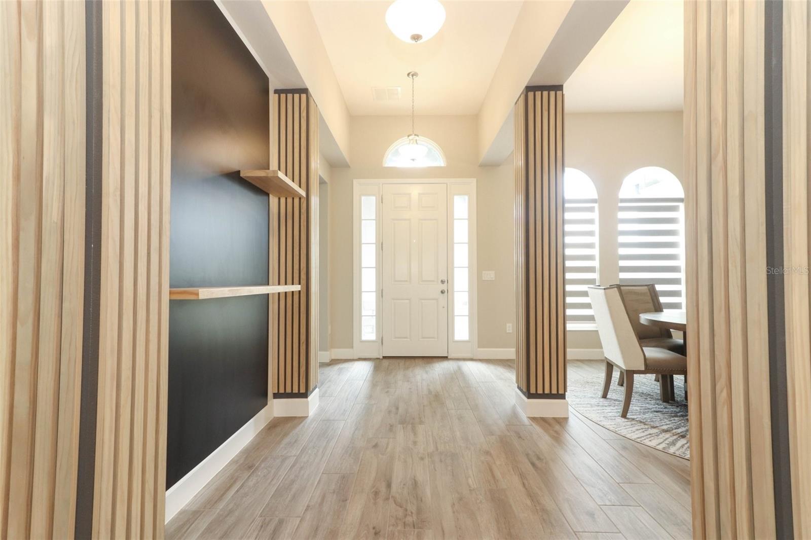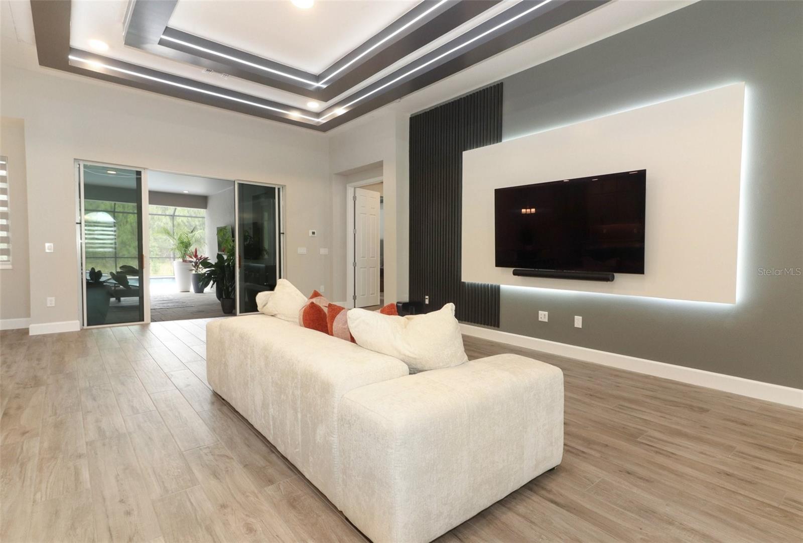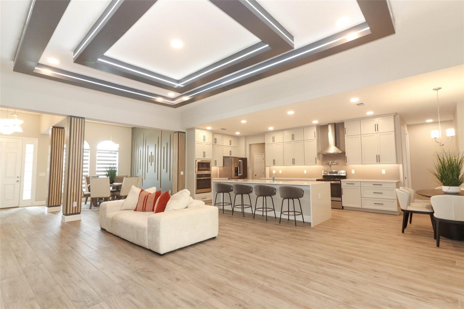Step into luxury in this nearly new, beautifully appointed, energy-efficient pool home with serene conservation and nature views—perfectly nestled in sought-after Oviedo, Florida. Built by MI Homes in 2023, this stunning residence has been thoughtfully customized with designer touches and upgrades by the current owner, offering all the benefits of new construction without the wait. Nestled in the sought after Red Ember community in Seminole County, this Brookhaven plan includes the structural additions of the bonus room, bedroom and bathroom as a second level, providing space for everyone! Fresh landscaping and a 3 car wide paver driveway with lead walk welcomes you home. Once inside, you will immediately notice the spacious, open-concept design with 11 foot high volume ceilings throughout the main living area. Your eyes will also be drawn to the views through to the porch, pool and peaceful views to the exterior. This home showcases modern updates, from ceiling beams with ambiance lighting, to decorative wall slats, trim work, back lighting and custom shelves. The kitchen is central to the home, and a haven for culinary enthusiasts, boasting quartz counters, tile backsplash, under cabinet lighting, vented hood, a pot filler, double stacked cabinets with hardware, stainless-steel appliances, pantry closet, pendant pre wires, and an expansive dining bar and separate cafe seamlessly integrated with the living area. This sanctuary features a 3 way split floor plan, with three secondary bedrooms on one side, 2 of which share a Jack-and-Jill bathroom, and a full-cabana bath with direct access to the lanai and pool area. The primary suite is a retreat of its own, with a large bedroom with ample space for furnishings and an en-suite bathroom. The private bathroom has a gorgeous soaking tub, standing shower, separate vanities, private water closet, and dual walk-in closets. Upstairs, a media/game room awaits, alongside another bedroom and bathroom. Outside, true Florida living awaits with the private lanai, salt-water pool with water features, and paver deck offering tranquility against a backdrop of conservation land. Perks of the location include: top rated Seminole County public schools, Hagerty Highschool, easy access to 434 and 417, new hospitals/medical facilities, shopping, dining, aquatics center, Oviedo on the Park, YMCA, golf courses, higher education opportunities, University of Central Florida and Seminole State College & more!