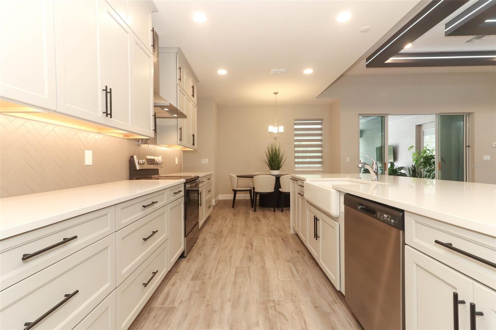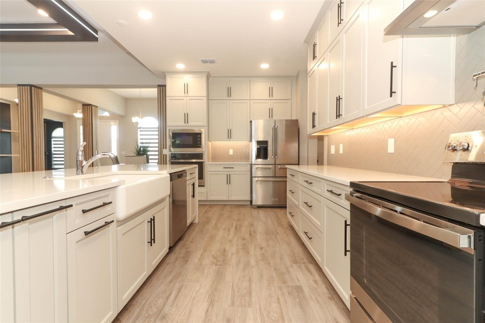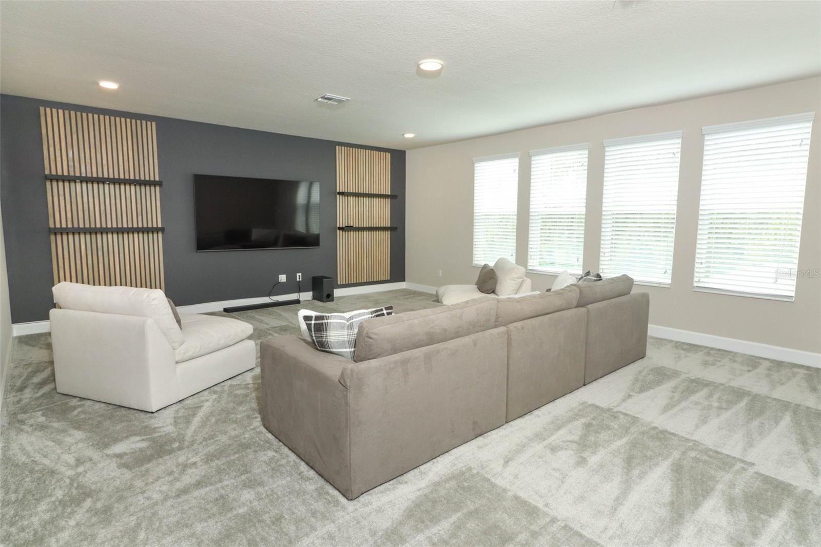 Step into luxury in this nearly new, beautifully appointed, energy-efficient pool home with serene conservation and nature views—perfectly nestled in sought-after Oviedo, Florida. Built by MI Homes in 2023, this stunning residence has been thoughtfully customized with designer touches and upgrades by the current owner, offering all the benefits of new construction without the wait. Nestled in the sought after Red Ember community in Seminole County, this Brookhaven plan includes the structural additions of the bonus room, bedroom and bathroom as a second level, providing space for everyone! Fresh landscaping and a 3 car wide paver driveway with lead walk welcomes you home. Once inside, you will immediately notice the spacious, open-concept design with 11 foot high volume ceilings throughout the main living area. Your eyes will also be drawn to the views through to the porch, pool and peaceful views to the exterior. This home showcases modern updates, from ceiling beams with ambiance lighting, to decorative wall slats, trim work, back lighting and custom shelves. The kitchen is central to the home, and a haven for culinary enthusiasts, boasting quartz counters, tile backsplash, under cabinet lighting, vented hood, a pot filler, double stacked cabinets with hardware, stainless-steel appliances, pantry closet, pendant pre wires, and an expansive dining bar and separate cafe seamlessly integrated with the living area. This sanctuary features a 3 way split floor plan, with three secondary bedrooms on one side, 2 of which share a Jack-and-Jill bathroom, and a full-cabana bath with direct access to the lanai and pool area. The primary suite is a retreat of its own, with a large bedroom with ample space for furnishings and an en-suite bathroom. The private bathroom has a gorgeous soaking tub, standing shower, separate vanities, private water closet, and dual walk-in closets. Upstairs, a media/game room awaits, alongside another bedroom and bathroom. Outside, true Florida living awaits with the private lanai, salt-water pool with water features, and paver deck offering tranquility against a backdrop of conservation land. Perks of the location include: top rated Seminole County public schools, Hagerty Highschool, easy access to 434 and 417, new hospitals/medical facilities, shopping, dining, aquatics center, Oviedo on the Park, YMCA, golf courses, higher education opportunities, University of Central Florida and Seminole State College & more!
