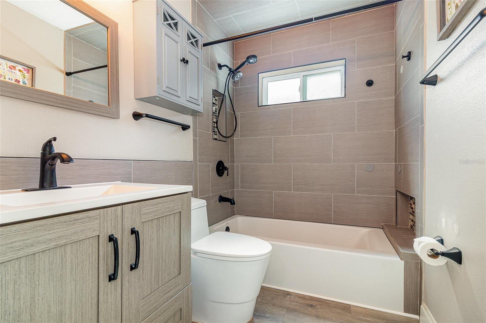 One or more photo(s) has been virtually staged. Welcome to your dream home in the coveted Alafaya Woods neighborhood, where comfort meets convenience. This immaculate 3-bedroom, 2-bathroom residence, complete with a versatile workshop/she-shed, is a true gem. Ready for immediate move-in, this pool home invites you to add your personal touch and make it uniquely yours. Step inside to discover elegant tile flooring throughout, complemented by modern lighting and ceiling fans that enhance the ambiance. The spacious laundry closet and abundant storage options ensure functionality and ease. At the heart of the home lies the gourmet kitchen, boasting Quartz countertops, a chic tile backsplash, and stainless steel appliances. The generous breakfast bar and cozy eat-in nook make this space perfect for casual dining and morning coffee. Adjacent to the kitchen, the formal dining area and family room provide an ideal setting for entertaining guests or enjoying family time. The luxurious Owner’s Suite offers a private retreat, featuring a walk-in closet and a fully renovated en-suite bathroom with a contemporary vanity, walk-in shower, and stylish fixtures. Each bathroom in the home has been thoughtfully redesigned with premium finishes, adding a touch of sophistication. The enclosed back patio offers a tranquil space to unwind, while the pool invites you to relax and enjoy Florida's sunny days. The low-maintenance private backyard is perfect for leisure or productivity, with the workshop/she-shed equipped with electricity and a mini split AC system for year-round comfort. Residents of Alafaya Woods benefit from a wealth of community amenities, including a park, playground, basketball and tennis courts, and scenic conservation areas with picnic spots and hiking trails. The location is unbeatable, with proximity to top-rated schools, Oviedo Mall, UCF, Oviedo Amphitheatre, shopping, dining, and major highways like 417 and Alafaya Trail. Plus, Florida's stunning beaches are just a short drive away. Experience the perfect blend of style, functionality, and location in this exceptional home. Schedule your visit today and discover why Alafaya Woods is one of the most sought-after neighborhoods in the area.
