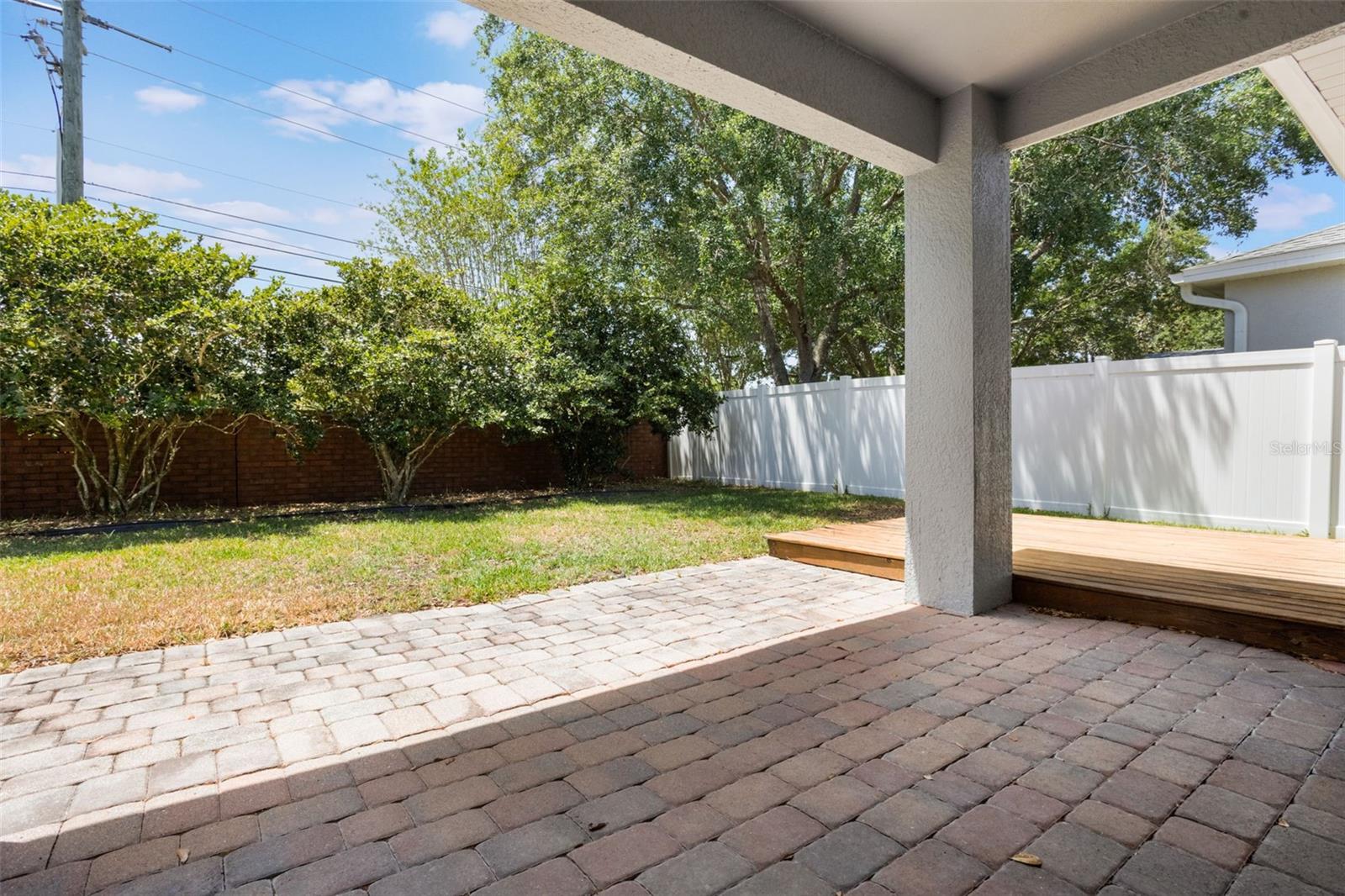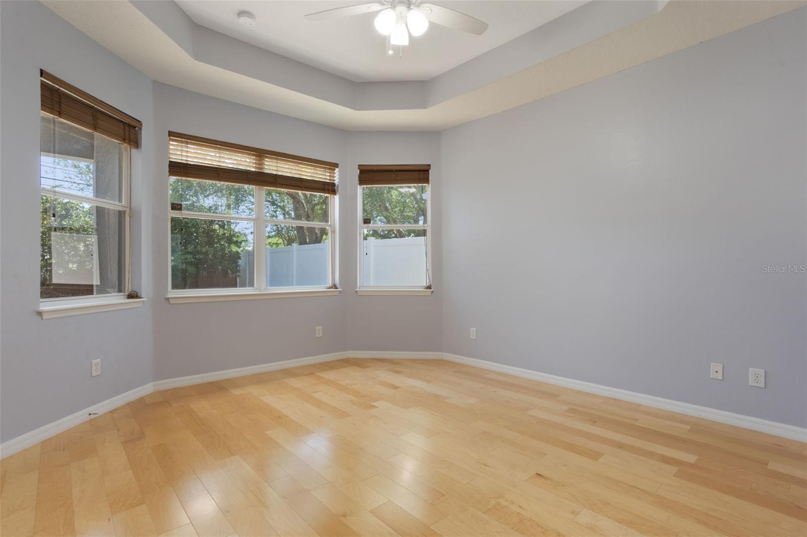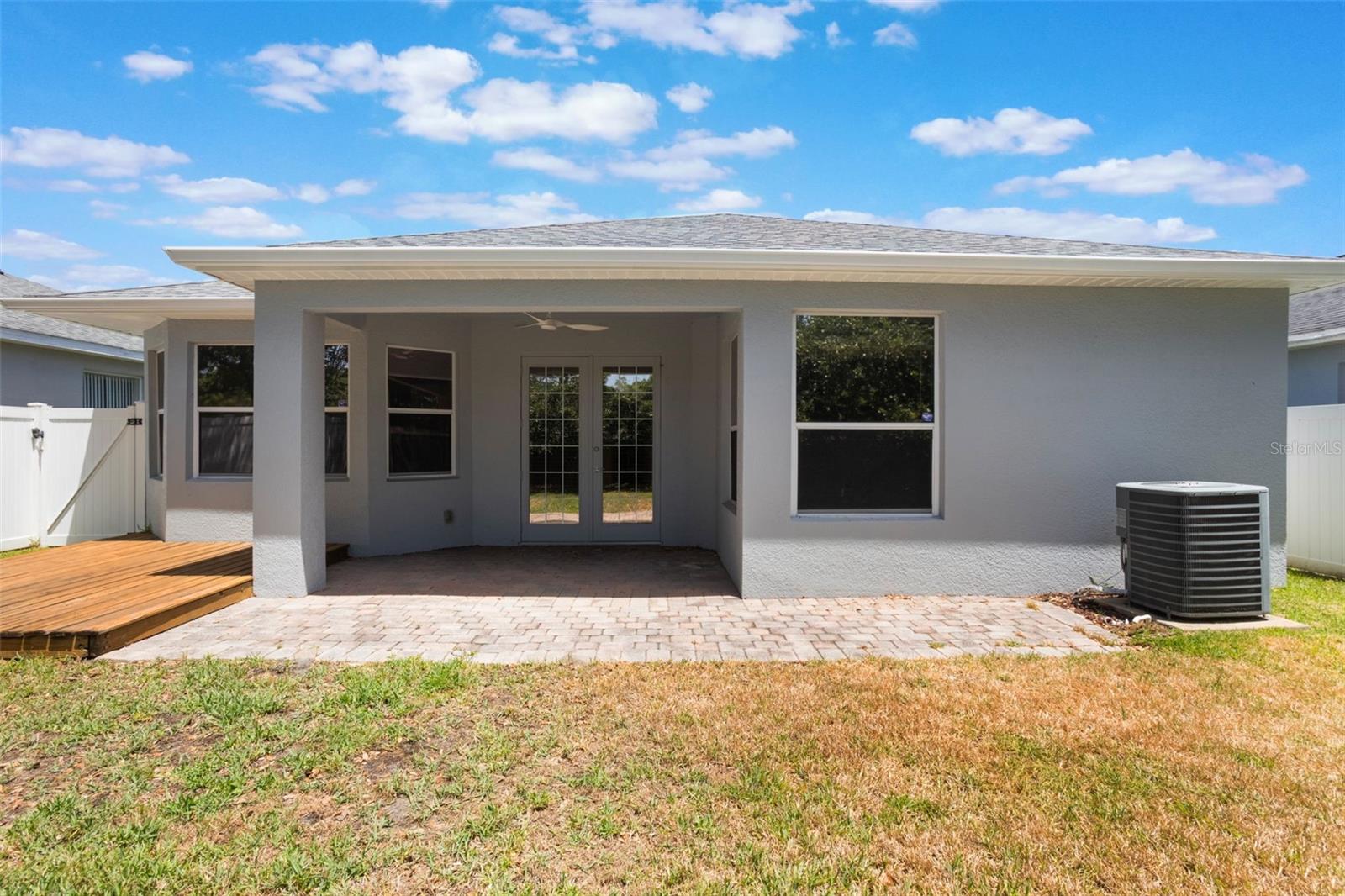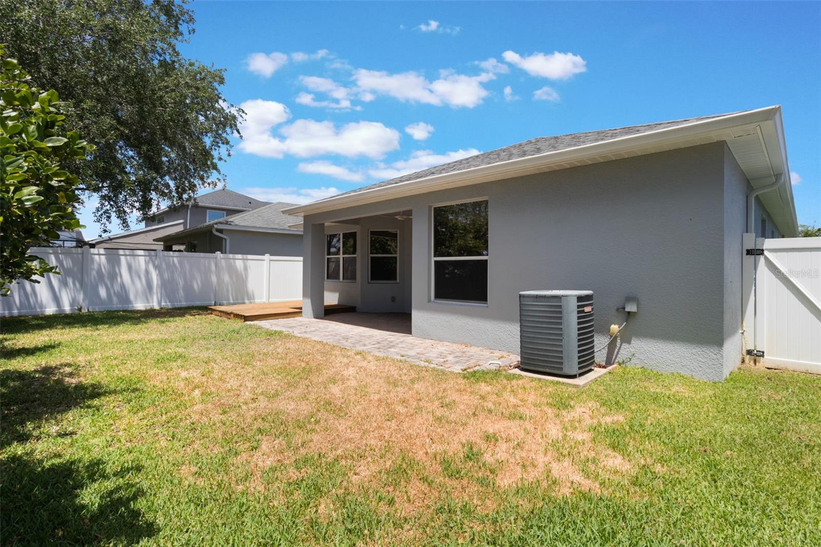 One or more photo(s) has been virtually staged. Welcome home to 3436 Gerber Daisy Lane, a cozy single family residence nestled in the highly sought-after community of The Sanctuary in the heart of Oviedo, FL. This charming home offers 1,549 square feet of thoughtfully designed living space, is a perfect blend of style and functionality. Walking up, you’ll notice a paver brick driveway and homey covered porch. Inside, you'll be greeted by a warm and welcoming foyer with 12 foot ceilings leading to an open living area and separate formal dining room with hardwood maple flooring throughout. The spacious eat-in kitchen, perfect for cooking and hosting, is complete with a pantry, breakfast bar and optional kitchen island. Large picture windows overlook the pretty brick fence and garden greenery of the backyard. The home boasts two ancillary bedrooms outfitted with new luxury vinyl plank flooring along with a full bathroom with bathtub for little ones. The primary suite offers a spacious retreat featuring tray ceilings and maple hardwood flooring. Picture windows to the backyard allow golden afternoon light while dual closets leave ample room for clothing and storage. The primary suite also features dual vanities, a garden tub and separate shower stall. The allure of this home extends beyond its interiors. Step outside to enjoy your private outdoor space on the covered patio with new ceiling fan to stay cool during hot Florida summers. Unwind and enjoy some al fresco dining on the wooden deck ideal for entertaining. This property features a fully fenced in back yard with picturesque brick wall along the back of the property. Residents also have access to a range of community amenities, including a pool, clubhouse with meeting rooms, tennis court, basketball court, volleyball court, fitness center, and playground, ensuring activities for everyone. Additional features include new exterior paint (2024) and new gutters (2024.) AC recently serviced with dehumidifier added (2025.) Roof 2016. Washer & Dryer, window treatments and kitchen island convey with the property.