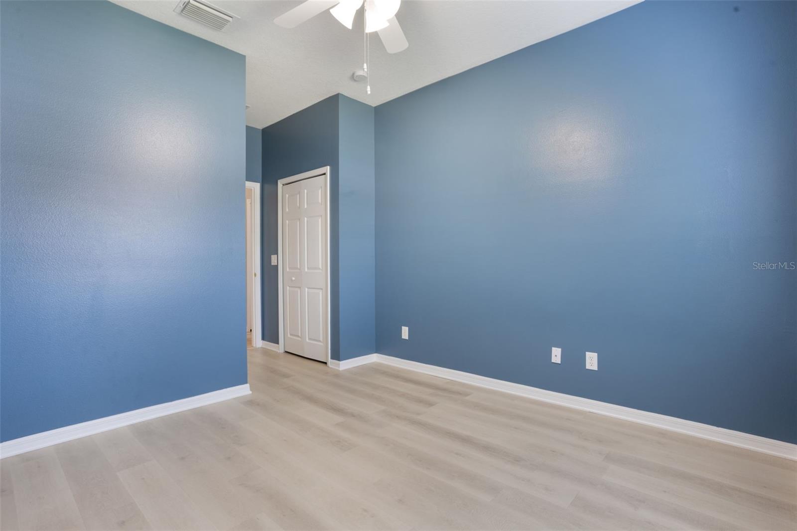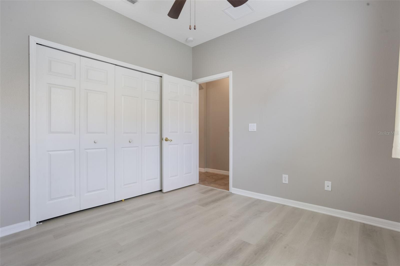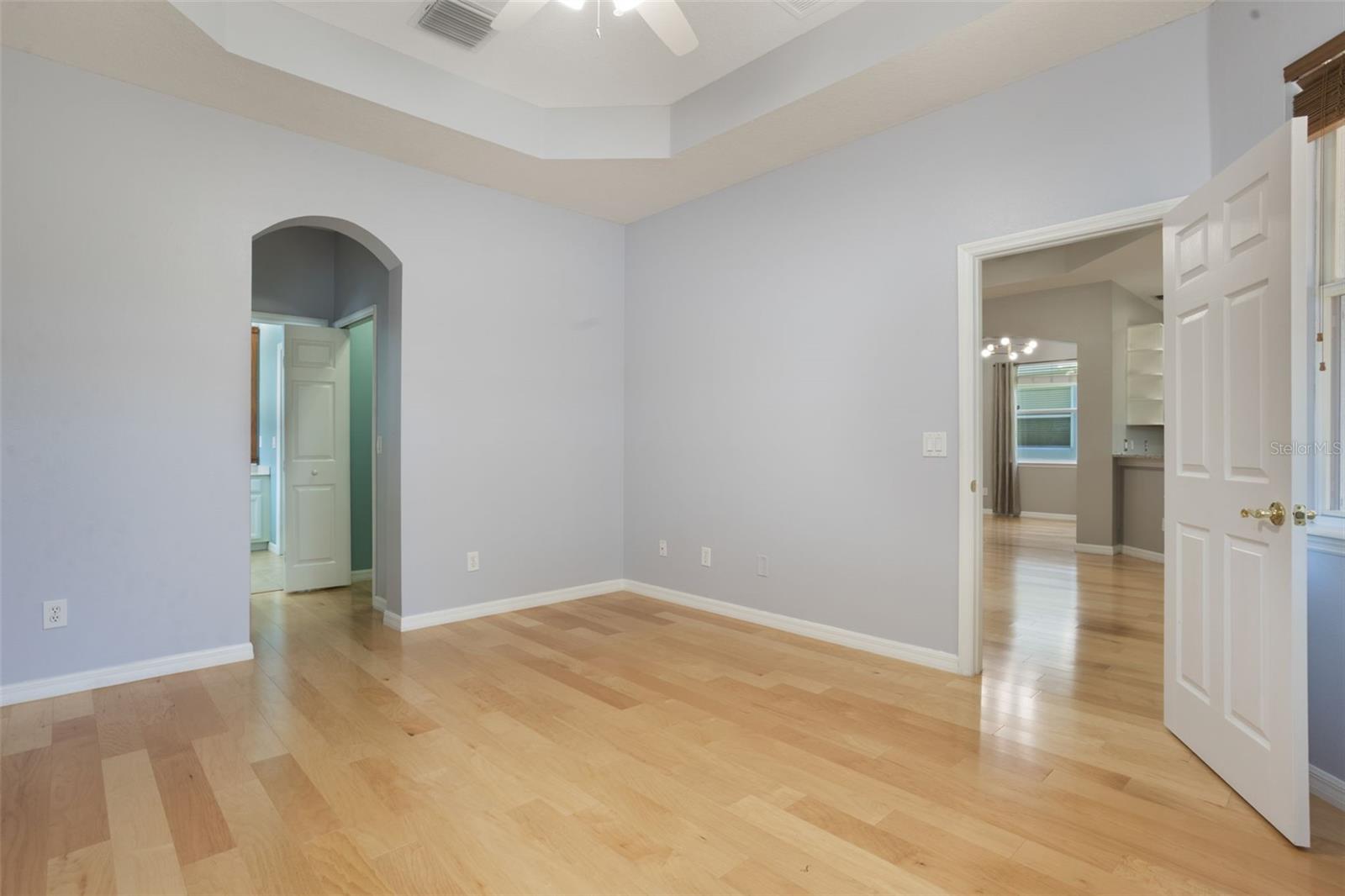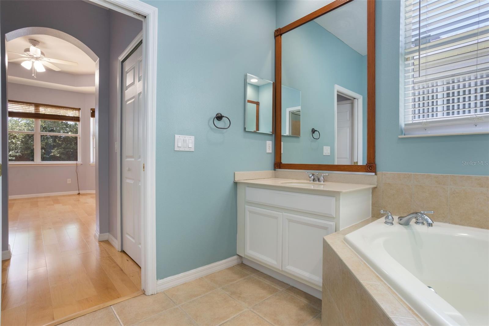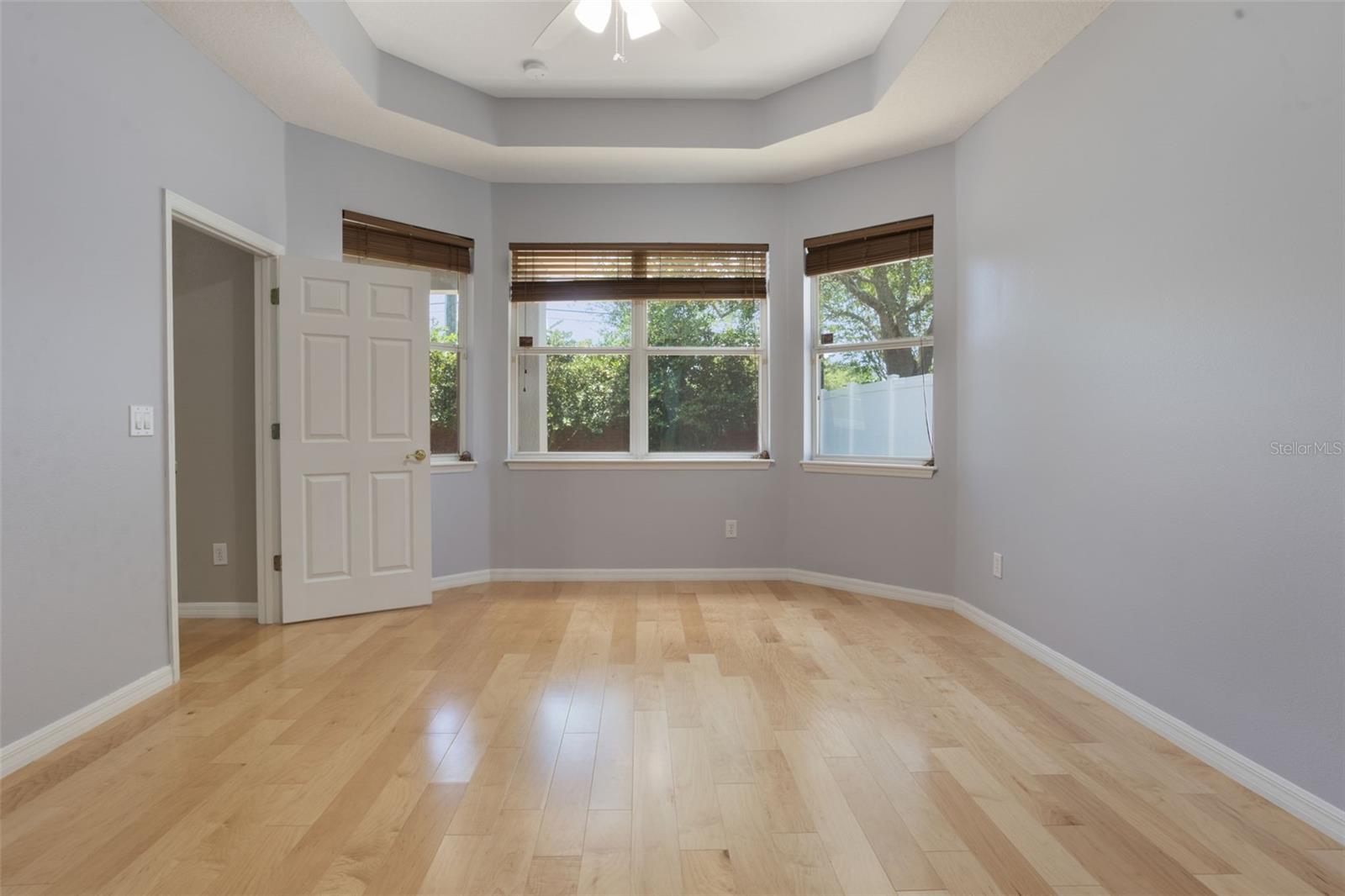 One or more photo(s) has been virtually staged. Welcome home to 3436 Gerber Daisy Lane, a cozy single family residence nestled in the highly sought-after community of The Sanctuary in the heart of Oviedo, FL. This charming home offers 1,549 square feet of thoughtfully designed living space, is a perfect blend of style and functionality. Walking up, you’ll notice a paver brick driveway and homey covered porch. Inside, you'll be greeted by a warm and welcoming foyer with 12 foot ceilings leading to an open living area and separate formal dining room with hardwood maple flooring throughout. The spacious eat-in kitchen, perfect for cooking and hosting, is complete with a pantry, breakfast bar and optional kitchen island. Large picture windows overlook the pretty brick fence and garden greenery of the backyard. The home boasts two ancillary bedrooms outfitted with new luxury vinyl plank flooring along with a full bathroom with bathtub for little ones. The primary suite offers a spacious retreat featuring tray ceilings and maple hardwood flooring. Picture windows to the backyard allow golden afternoon light while dual closets leave ample room for clothing and storage. The primary suite also features dual vanities, a garden tub and separate shower stall. The allure of this home extends beyond its interiors. Step outside to enjoy your private outdoor space on the covered patio with new ceiling fan to stay cool during hot Florida summers. Unwind and enjoy some al fresco dining on the wooden deck ideal for entertaining. This property features a fully fenced in back yard with picturesque brick wall along the back of the property. Residents also have access to a range of community amenities, including a pool, clubhouse with meeting rooms, tennis court, basketball court, volleyball court, fitness center, and playground, ensuring activities for everyone. Additional features include new exterior paint (2024) and new gutters (2024.) AC recently serviced with dehumidifier added (2025.) Roof 2016. Washer & Dryer, window treatments and kitchen island convey with the property.