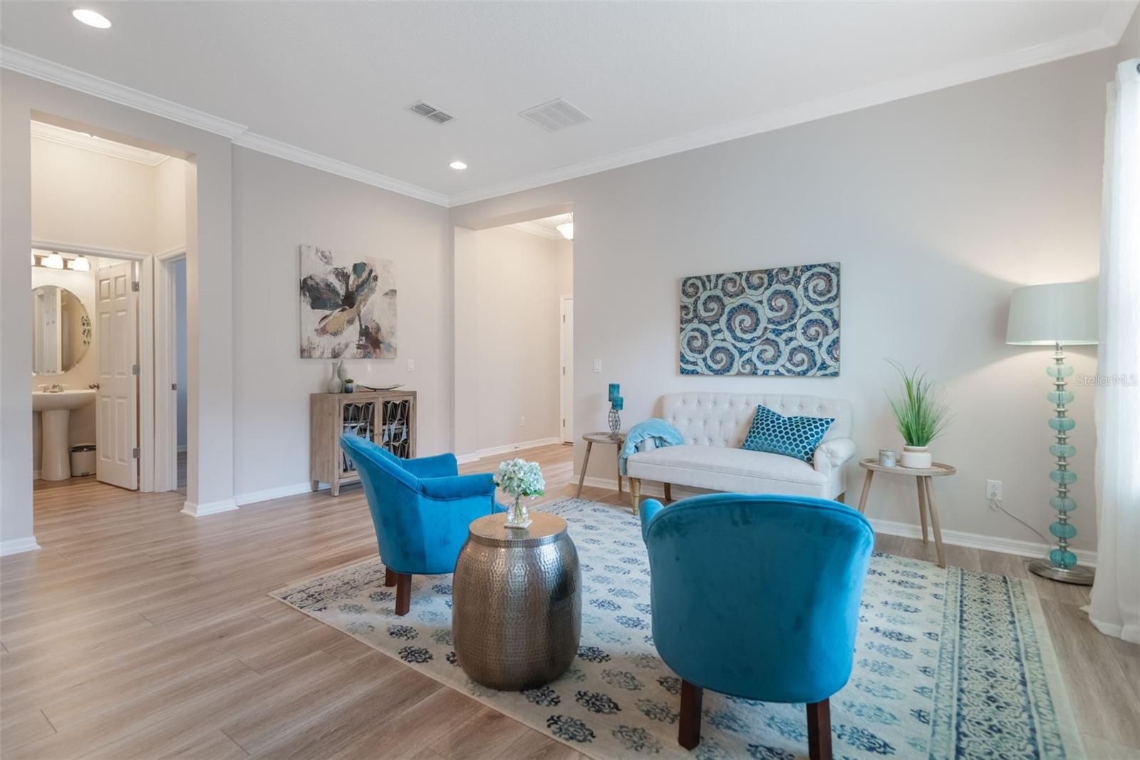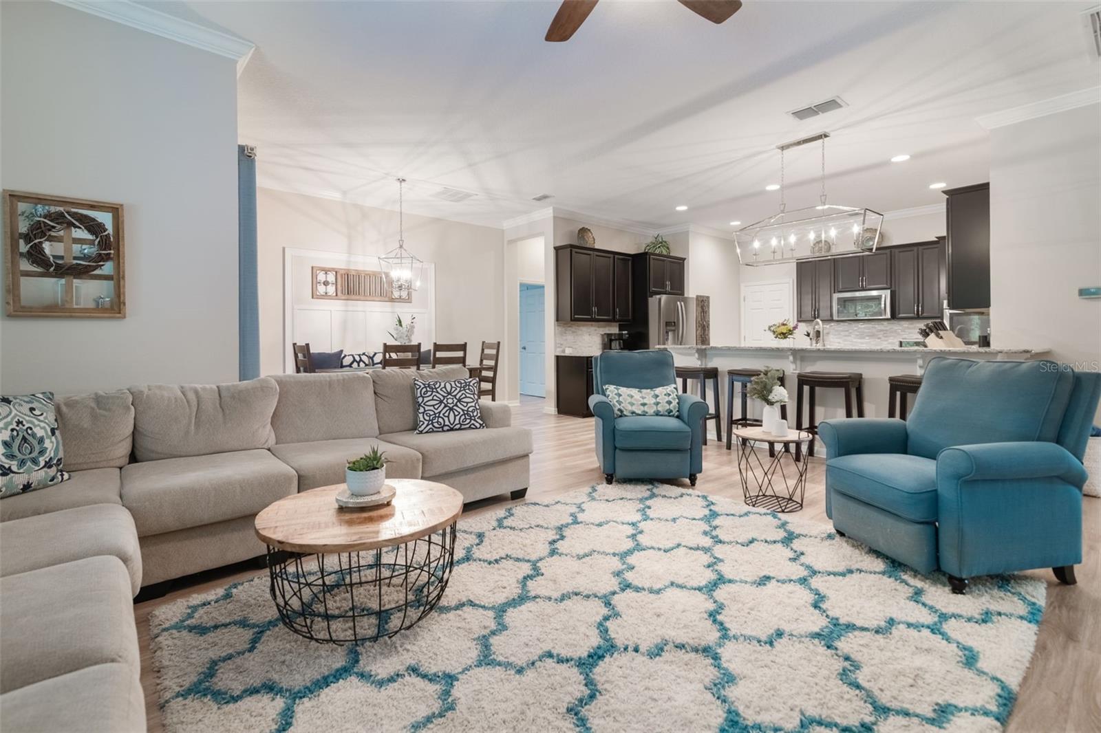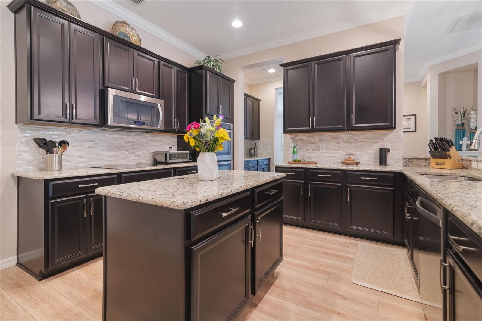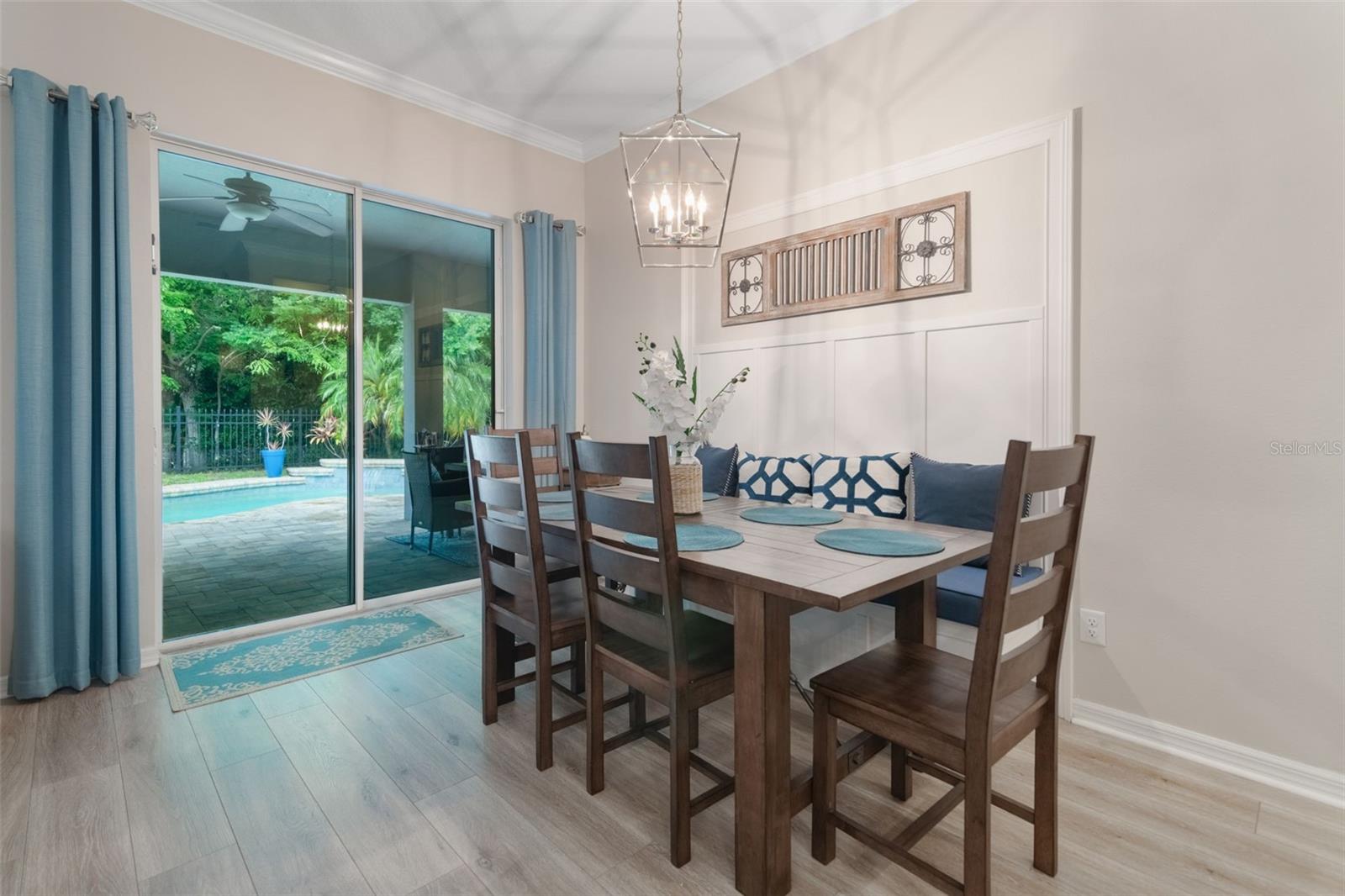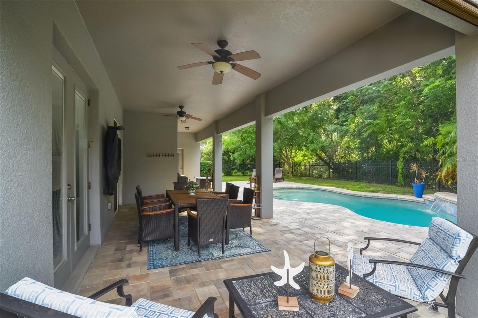 Under contract-accepting backup offers. Welcome to the Florida lifestyle you’ve been waiting for—this impeccably maintained, single-story pool home in the gated community of Oviedo Garden offers the perfect blend of comfort, sophistication, and functionality. Privately positioned at the end of a quiet cul-de-sac with serene conservation views, this 4-bedroom, 3-bath home with a dedicated office and over 3,000 square feet exudes model-home quality from the moment you arrive. High ceilings, crown molding, and luxury vinyl plank flooring throughout set a refined tone, while the open-concept layout provides seamless flow for everyday living and entertaining. The gourmet kitchen features stainless steel appliances, double ovens, an oversized center island, and a built-in breakfast nook—all connected to the formal dining and living areas by a convenient butler’s pantry. The family room is anchored by custom built-ins and a sleek electric fireplace, with two sets of doors leading to the extended lanai and private pool featuring a tranquil waterfall and optional saltwater system. A thoughtful split-bedroom layout ensures privacy for guests and family alike, while the serene primary suite opens directly to the lanai and offers a spa-inspired bath with soaking tub, dual vanities, a large walk-in shower, and an expansive walk-in closet. Additional highlights include a 3-car garage, full security system with Ring cameras, mature landscaping, and a fully fenced backyard. For peace of mind during storm season, the home is equipped with a built-in partial-home generator, ensuring the basic necessities are handled when power outages occur. Zoned for top-rated Seminole County schools and just minutes from parks, shopping, dining, and UCF, this move-in-ready gem captures the essence of upscale Florida living.