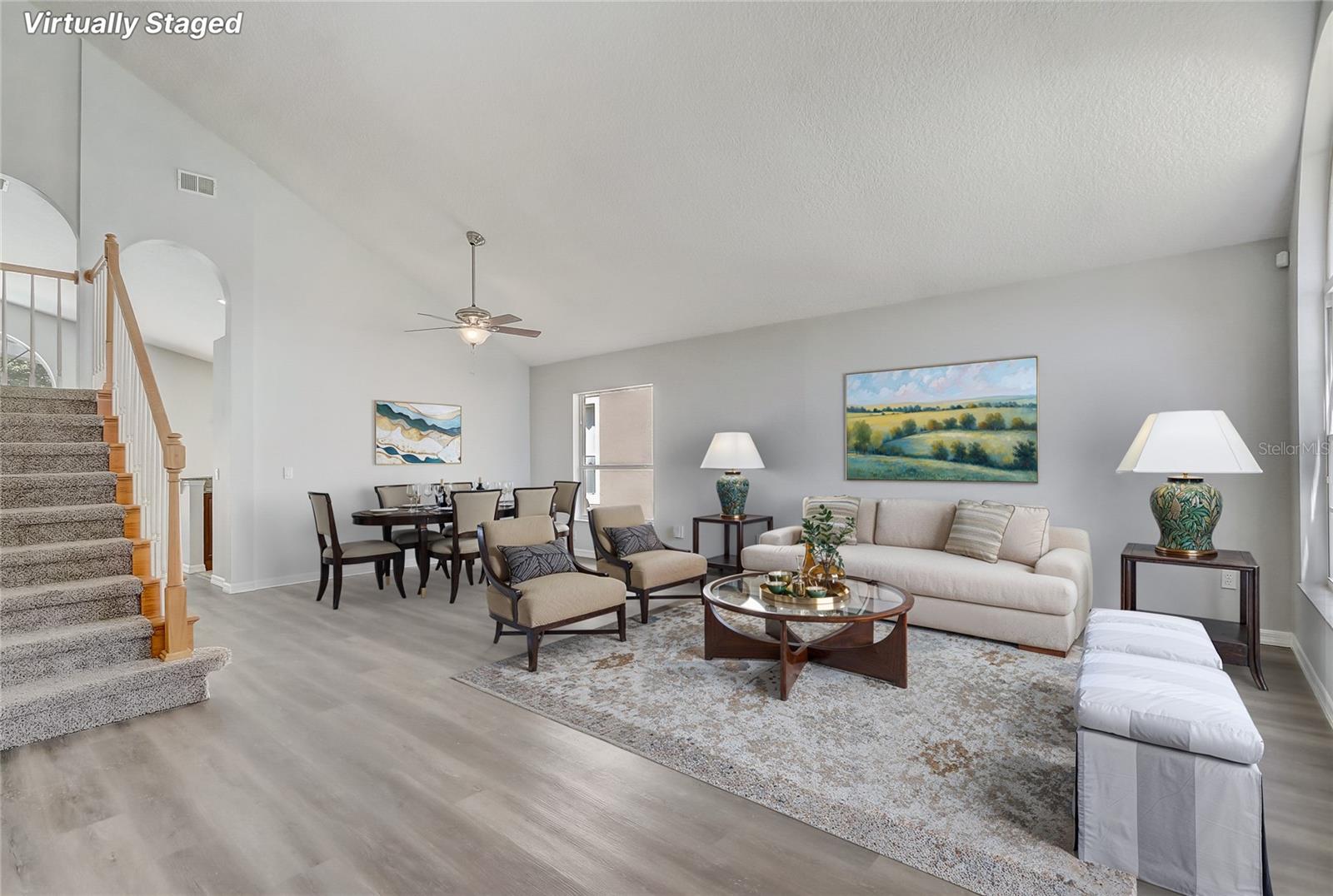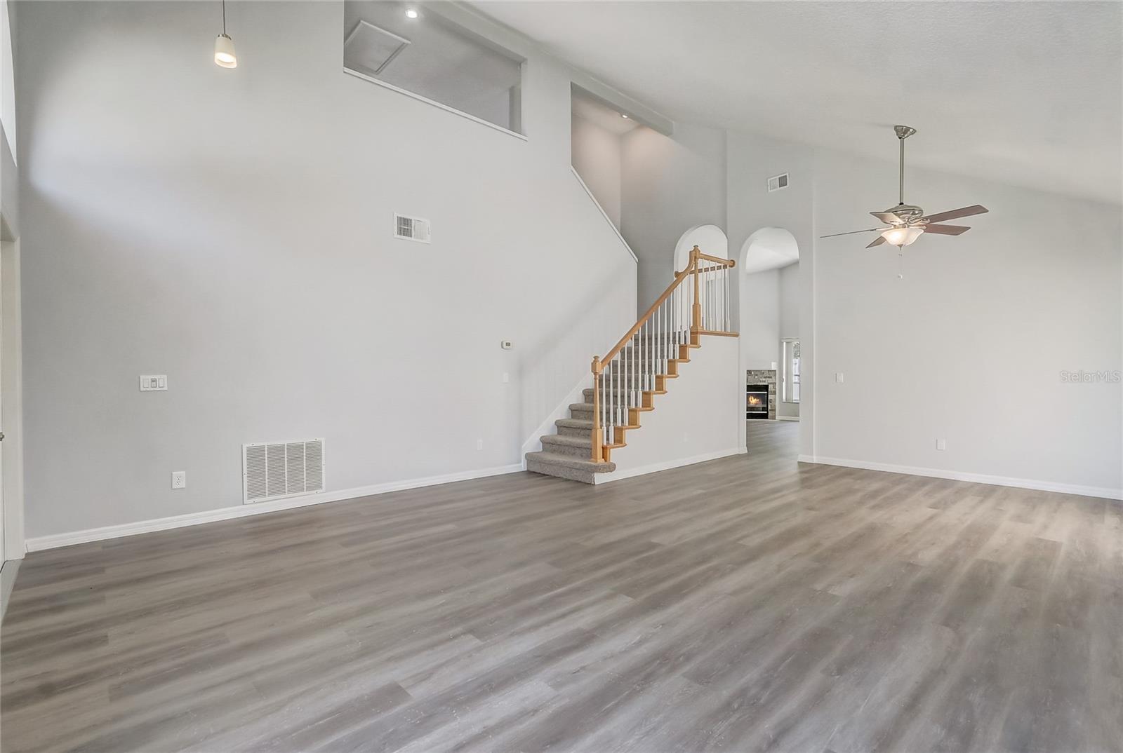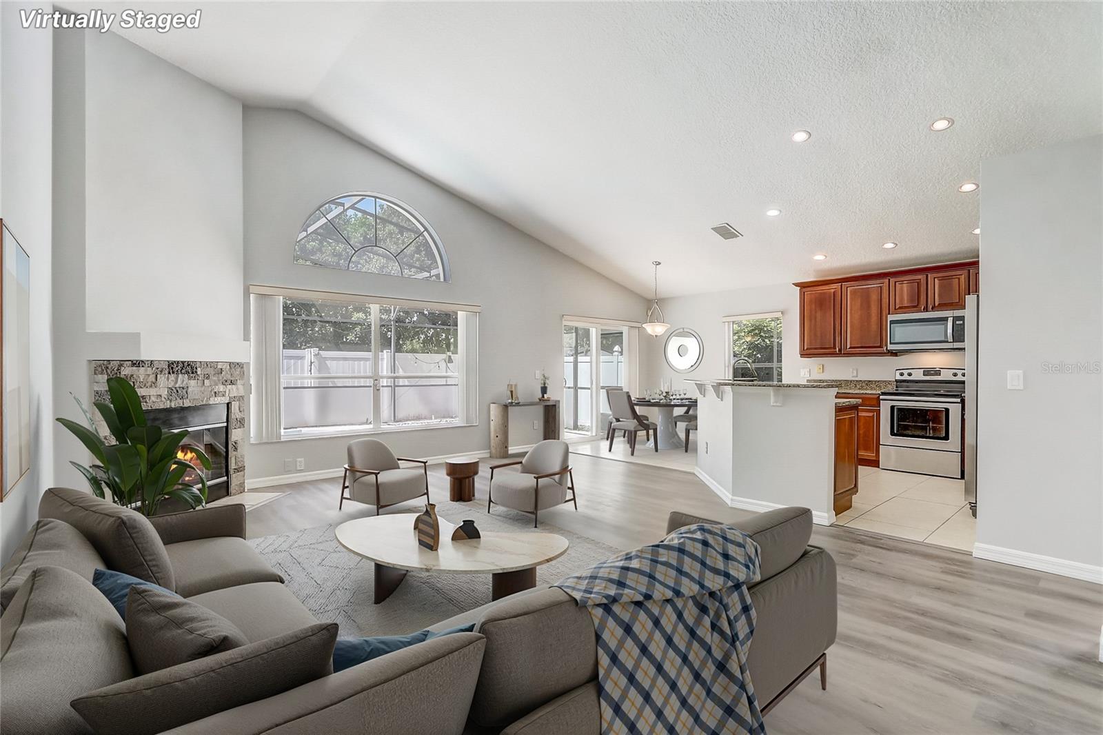 One or more photo(s) has been virtually staged. Oviedo Pool Home! No Rear Neighbors!! Immediately Available!!! This 3 bedroom, 2.5 bathroom floor plan offers the ultimate split plan arrangement by keeping the primary suite downstairs while the 2 secondary bedrooms are held upstairs. The home has excellent space for gathering as there is a great room at the front entry and a separate open-concept area which holds the kitchen, dinette and family room with fireplace. Upstairs has an open loft, too! There is a guest half bath, understairs storage, interior laundry, and a 2-car garage with workshop area. The primary suite and family room/dinette area all have windows facing the pool which is screen enclosed inside of a fenced backyard. Improvements include ROOF 2017, PLUMBING 2016, EXTERIOR PAINT including the pool deck 2024, LUXURY VINYL PLANK FLOORS downstairs and INTERIOR PAINT 2025, all for a move-in ready experience. This home is located in Oviedo’s Carillon community less than a mile to FBC Mortgage Stadium for UCF game days, and tucked away on a no-outlet street which means no passthru traffic. Find restaurants and retail all around as this community is bordered by the infrastructure of Oviedo, Orlando and all that the university area offers. Convenience meets Florida staycation vibes!