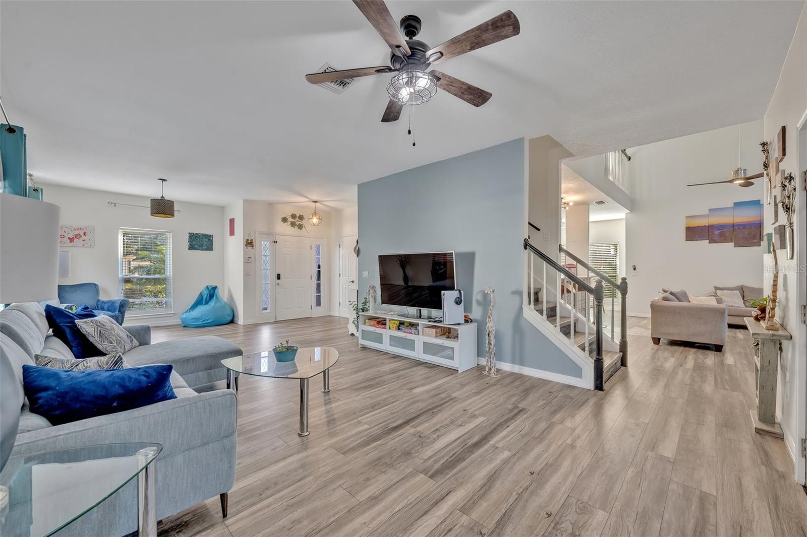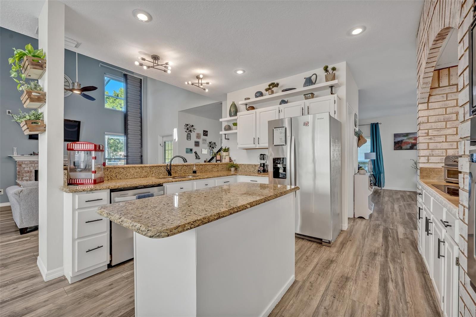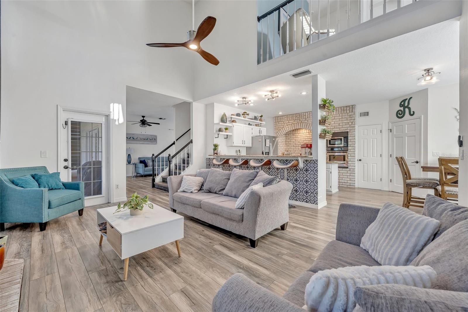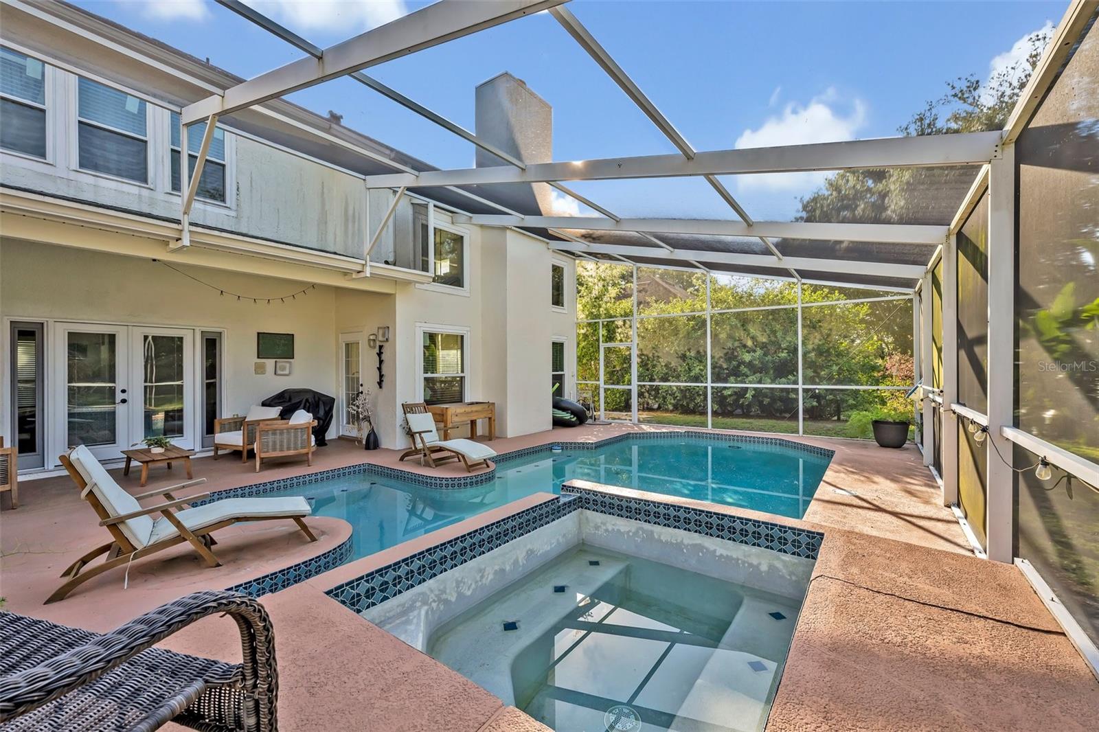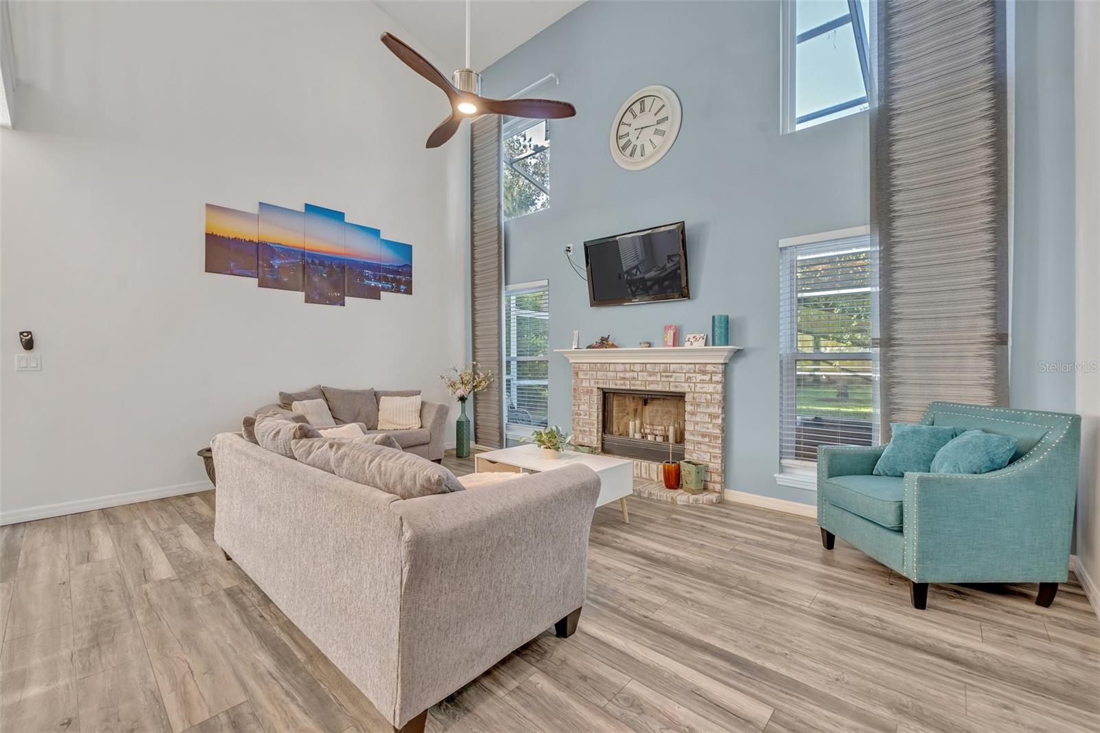 Welcome to this beautifully upgraded 3-bedroom, 2.5-bathroom home located in the highly desirable Lakes of Aloma community. Offering 2,111 square feet of thoughtfully designed living space, this move-in-ready residence features a bright and open layout with a combined living and dining area, French doors leading to a screened lanai, and a chef’s kitchen complete with a center island, stainless steel appliances, granite countertops, built-in ovens, and a cooktop set in a charming brick hearth. The adjacent family room boasts soaring ceilings, a wood-burning fireplace, and access to the resort-style screened pool and raised spa—perfect for relaxing or entertaining. The spacious upstairs master suite includes vaulted ceilings, walk-in closets, dual vanities, a soaking tub, and a separate shower. Upstairs, you’ll find two additional bedrooms and a large loft/office area with custom built-ins and extra storage. Additional highlights include an indoor laundry room, oversized garage, fresh interior and exterior paint, 2024 double-pane windows, new flooring, a 2015 roof, 2023 A/C system. Enjoy community amenities such as a lakeside dock and fishing pier, and kayak or paddle board on the beautiful spring-fed Deep Lake. The neighborhood also provides a gazebo, scenic boardwalk, and proximity to top-rated Seminole County schools, shopping, dining, and major roadways. This is Florida living at its finest!