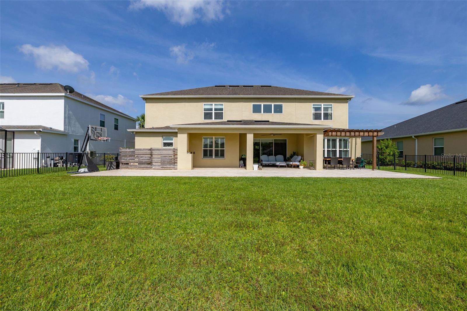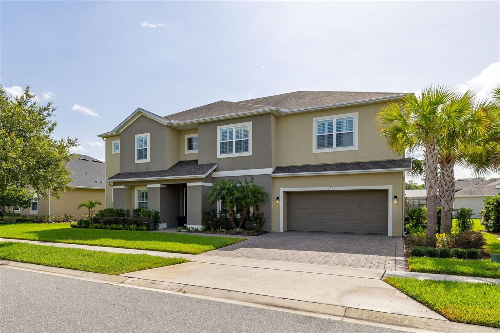 Welcome to 1113 Fieldstone Circle, a rare opportunity in the GATED COMMUNITY of Retreat at Lake Charm. Built in 2019, this 6-BEDROOM, 3.5-BATHROOM executive home offers over 4,200 SQUARE FEET of versatile living space that combines luxury finishes, functional design, and room to grow.Positioned on an OVERSIZED LOT with uninterrupted POND VIEWS, this WEST-FACING PROPERTY features a 3-CAR TANDEM GARAGE, EXTENDED PAVER PATIO, and a FULLY FENCED BACKYARD—already PRE-WIRED FOR AN OUTDOOR KITCHEN AND POOL. A CUSTOM PERGOLA and PROGRAMMABLE PERMANENT LIGHTING elevate the outdoor experience for year-round curb appeal and holiday-ready ambiance.Inside, the thoughtful layout includes a FIRST-FLOOR PRIMARY SUITE and a DEDICATED HOME OFFICE, perfect for flexibility in today’s lifestyle. The centerpiece of the home is the GOURMET DOUBLE-ISLAND KITCHEN, featuring QUARTZ COUNTERTOPS, STAINLESS STEEL APPLIANCES (including a NEW REFRIGERATOR AND DISHWASHER), WALK-IN PANTRY, and direct flow into the family and dining areas. The TWO-STORY FAMILY ROOM boasts dramatic CUSTOM MILLWORK, creating a stunning architectural focal point. Just off the kitchen is a SPACIOUS INDOOR LAUNDRY ROOM with room to organize and store. Upstairs, you'll find FIVE LARGE BEDROOMS, FOUR WALK-IN CLOSETS, a VERSATILE LOFT, and a PRE-WIRED MEDIA ROOM, ideal for a home theater, playroom, or second living space. A JACK-AND-JILL BATHROOM with separate vanities connects two of the upstairs bedrooms for added convenience.Other premium features include PLANTATION SHUTTERS, IMPACT-RATED TINTED WINDOWS, energy-efficient systems, smart thermostat, and elegant lighting upgrades throughout. The OVERSIZED TANDEM GARAGE allows for vehicles, storage, hobbies, or even a home gym setup. Located in one of the most desirable areas in Central Florida, OVIEDO offers a unique blend of small-town charm and modern convenience. Residents enjoy access to beautiful parks, nature trails, local farmers markets, and a vibrant dining and retail scene—including the popular Oviedo on the Parktown center. The property is conveniently situated near major commuting routes and just a short drive from the University of Central Florida (UCF), Seminole State College, Valencia College, and several highly regarded private school options.Retreat at Lake Charm includes LOW HOA DUES AND NO CDD, and is surrounded by newer, well-maintained homes in a gated setting that provides peace of mind and long-term value. POOL RENDERINGS AND COST ESTIMATES ARE AVAILABLE—making it easy to bring your dream backyard to life.This is a move-in-ready home that delivers on space, quality, and location. Don’t miss the chance to tour one of Oviedo’s premier properties—schedule your private showing today.