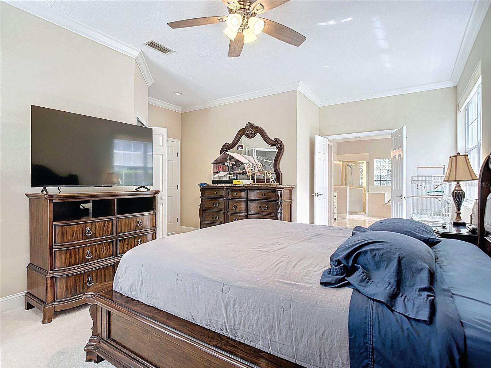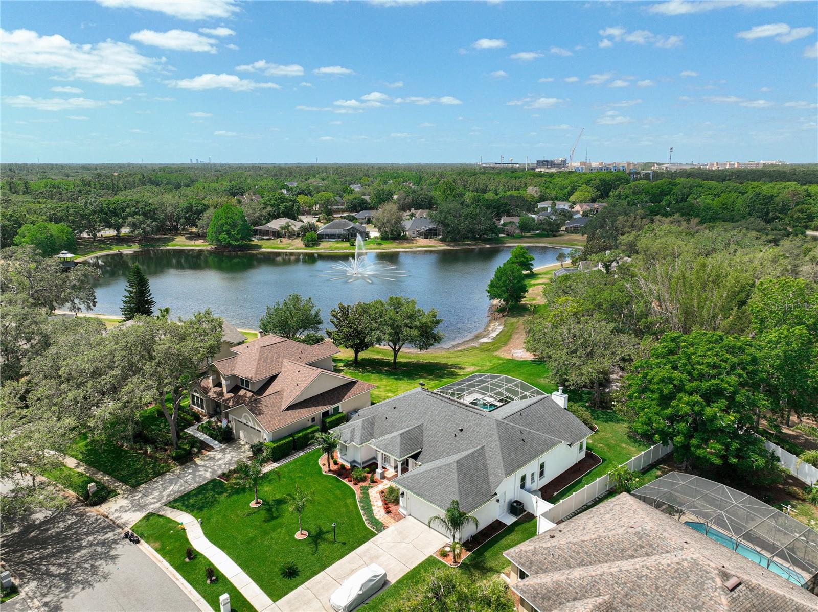 Welcome to this absolutely stunning, meticulously maintained, and thoughtfully updated 3-bedroom, 2.5-bath lakefront pool home in the highly sought-after Hunters Stand subdivision of Carillon in Oviedo, Florida. Perfectly situated on one of the neighborhood’s largest lots—just under half an acre—it boasts breathtaking lake views and privacy with a partially fenced backyard framed by eight-foot azaleas and mature oak trees. Landscaping upgrades include drought-tolerant shrubs, refreshed edging, low-voltage lighting, and a newly designed 8-station Rainbird irrigation system with a complete sub-metered setup. Top-quality Sherwin-Williams paint was applied inside and out, and new 7-inch gutters with underground drainage divert water away from the home. The home is a short walk to top-rated Seminole County schools like Carillon Elementary and Hagerty High, and minutes from the University of Central Florida. Publix and CVS are less than half a mile away. Inside, the open floor plan features marble tile in main areas and carpet in the bedrooms. Double crown molding and updated lighting add a refined touch. The living room includes double French doors with serene views of the screened patio, pool, and lake. Adjacent is the formal dining room with a tray ceiling and ambient lighting. The kitchen features 42" custom solid wood cabinets, black galaxy granite countertops and backsplash, a center island with wine fridge, and an oversized pantry with matching cabinetry. A Tiffany-style light in the breakfast nook highlights views of the pool and illuminated lake fountain. A spacious family room with a wood-burning fireplace and large sliding door offers seamless indoor-outdoor flow. The oversized front office is ideal for remote work or a quiet retreat. The primary suite has French doors to the pool, a walk-in closet, and a luxurious bath with dual vanities, soaking tub, walk-in shower, towel closet, and a privacy door for the commode. Two additional bedrooms, a full bath, and a laundry room with extra cabinetry, slop sink, and garage access are on the opposite side. Step outside to the screened-in patio and enjoy year-round Florida living with a wet bar, solar-heated pool, outdoor shower, and pool bath—plus no rear neighbors. This home includes a new Goodman HVAC system with chase lines (2024), hot water heater (2023), updated faucets, low-flow toilets, pee traps, shutoff valves, ceiling fans, lighting, hardware, door handles, and hinges. The roof and solar panels were replaced in 2018. Plumbing was re-piped with PEX in 2016. Appliances—including fridge, disposal, dishwasher, washer, dryer (2023), and stovetop (2024)—are all under three years old. The microwave and oven are GE Profile (2011). UV window film (2023) adds energy efficiency and sun protection to the back windows. An oversized garage includes a new LiftMaster opener, new door, and side entry. Carillon residents enjoy one of Florida’s lowest HOA fees, with access to tennis courts, soccer field, lakeside gazebo, sand volleyball court, and playground. This turnkey home is Florida living at its finest—don’t miss your chance. Schedule your private showing today! "Accepting highest and best offers up until July 22nd, 2025 at 6:00pm
