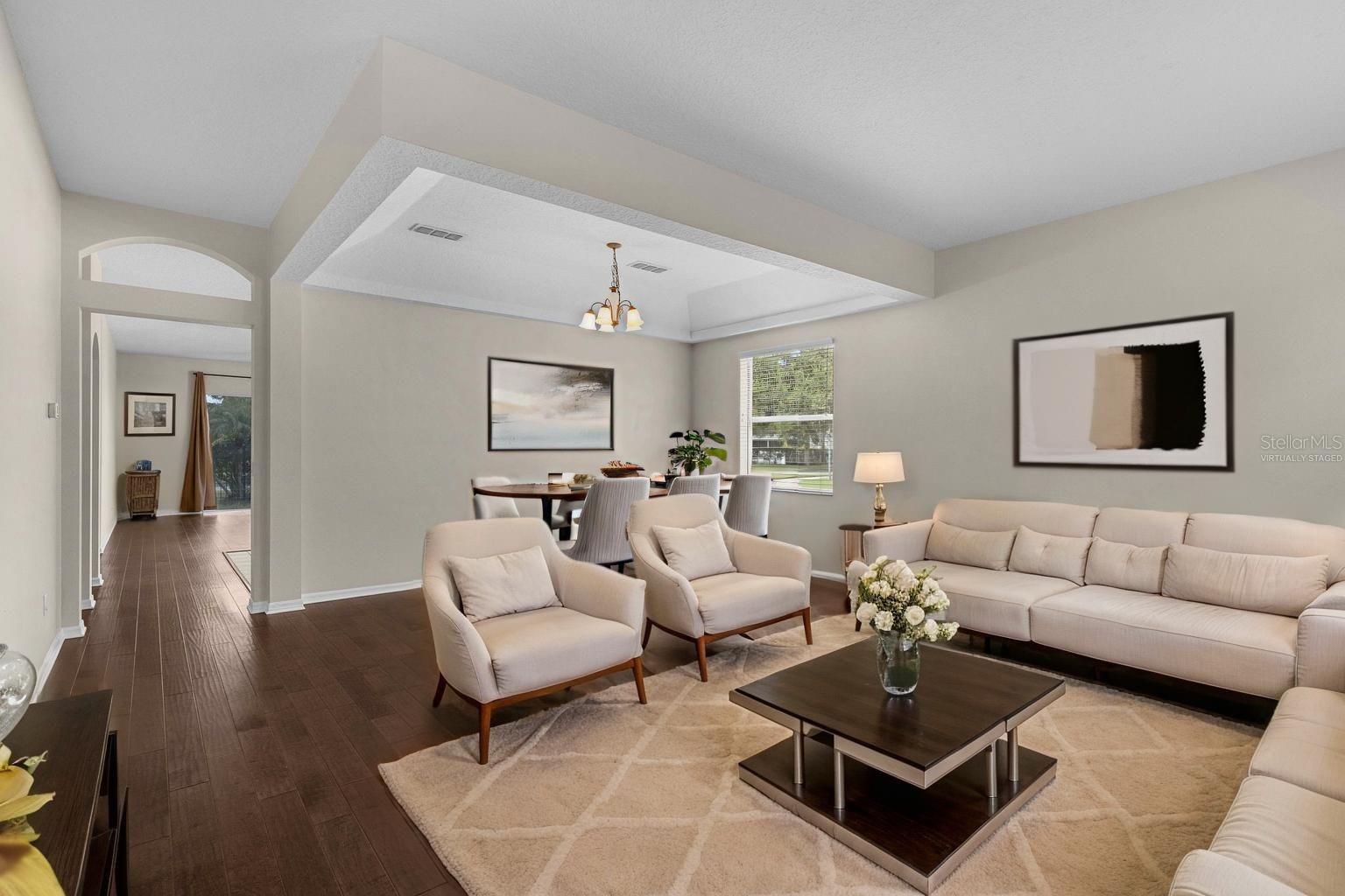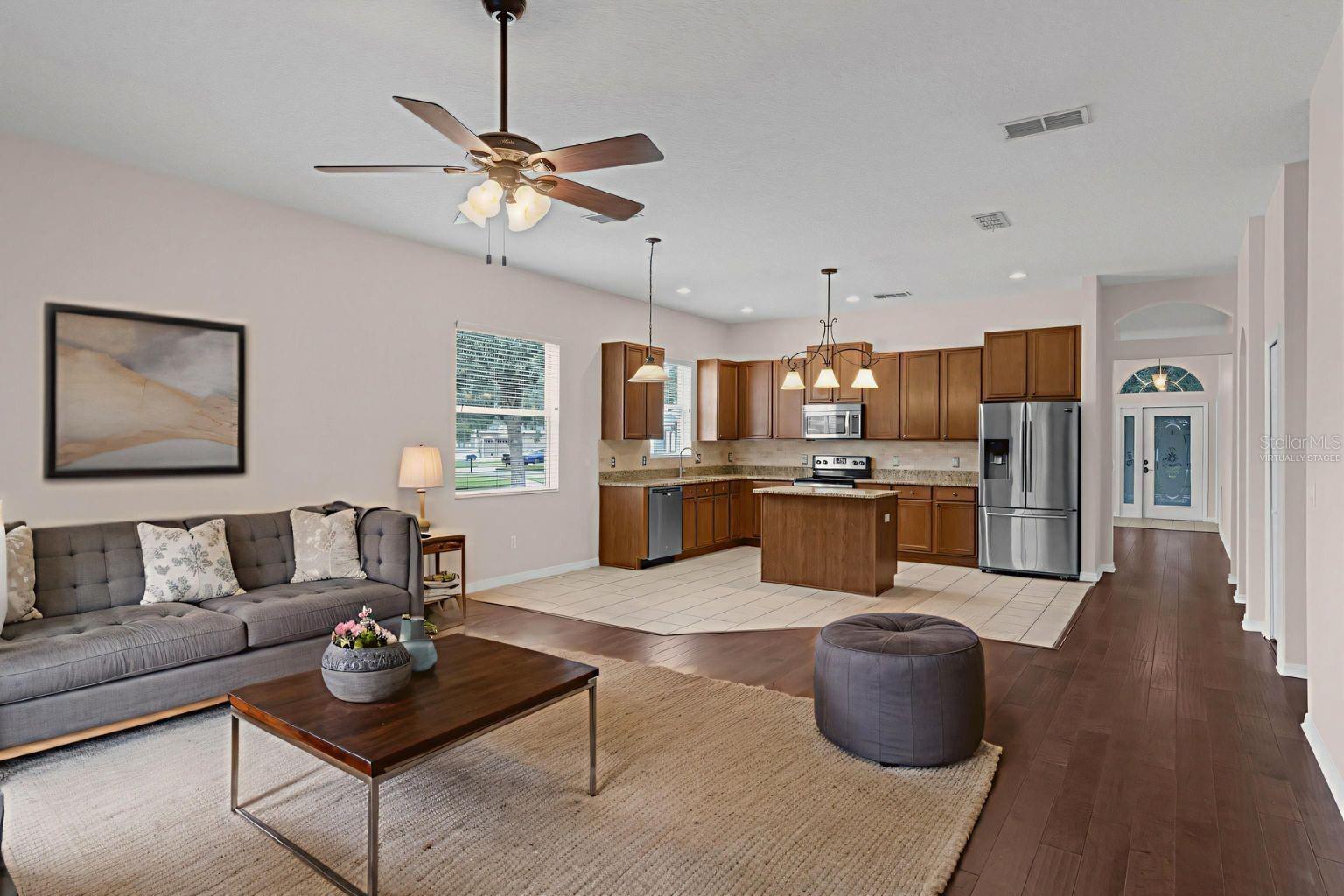 One or more photo(s) has been virtually staged. Welcome to this beautifully maintained 4-bedroom, 2-bathroom home in the sought-after Live Oak Reserve community in Oviedo! From the moment you step inside, you'll notice the elegant hardwood floors and a spacious bonus room with French doors—perfect for a home office, playroom, or guest space. The thoughtfully designed layout features a massive living/dining room combo and a large family room that flows into the open-concept kitchen, complete with granite countertops, a center island, stainless steel appliances, and plenty of storage. Sliding glass doors lead out to your private patio and lush backyard, surrounded by mature landscaping—ideal for relaxing or entertaining. The split-bedroom floor plan offers privacy and space, with a spacious primary suite featuring a huge walk-in closet, dual vanities, a garden tub, and a glass-enclosed shower. Down the hall, you’ll find three additional bedrooms, all with generous closets, and a second full bathroom with dual sinks and a tub/shower combo. A large laundry room adds extra convenience. Living in Live Oak Reserve means enjoying resort-style amenities including a community pool with waterslide, fitness center, basketball and tennis courts, soccer and softball fields, trails, splash pad, volleyball court, and two playgrounds. All of this is located near top-rated Seminole County schools, UCF, Seminole State College, Oviedo on the Park, and a wide variety of shopping and dining options. Don’t miss your chance to live in one of Oviedo’s premier neighborhoods!