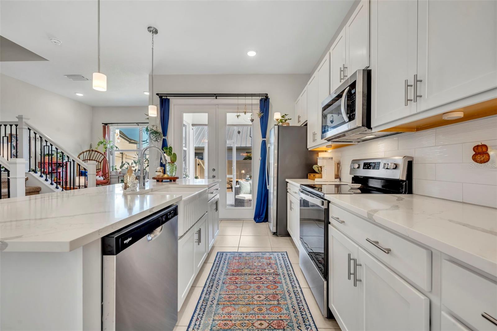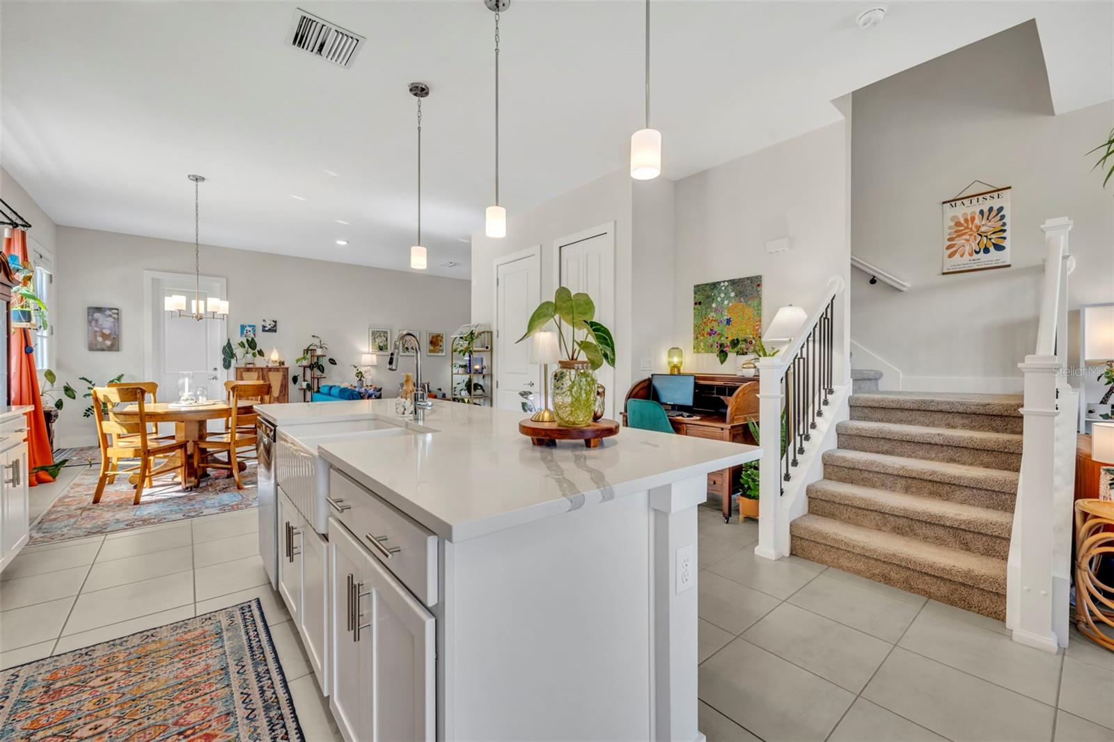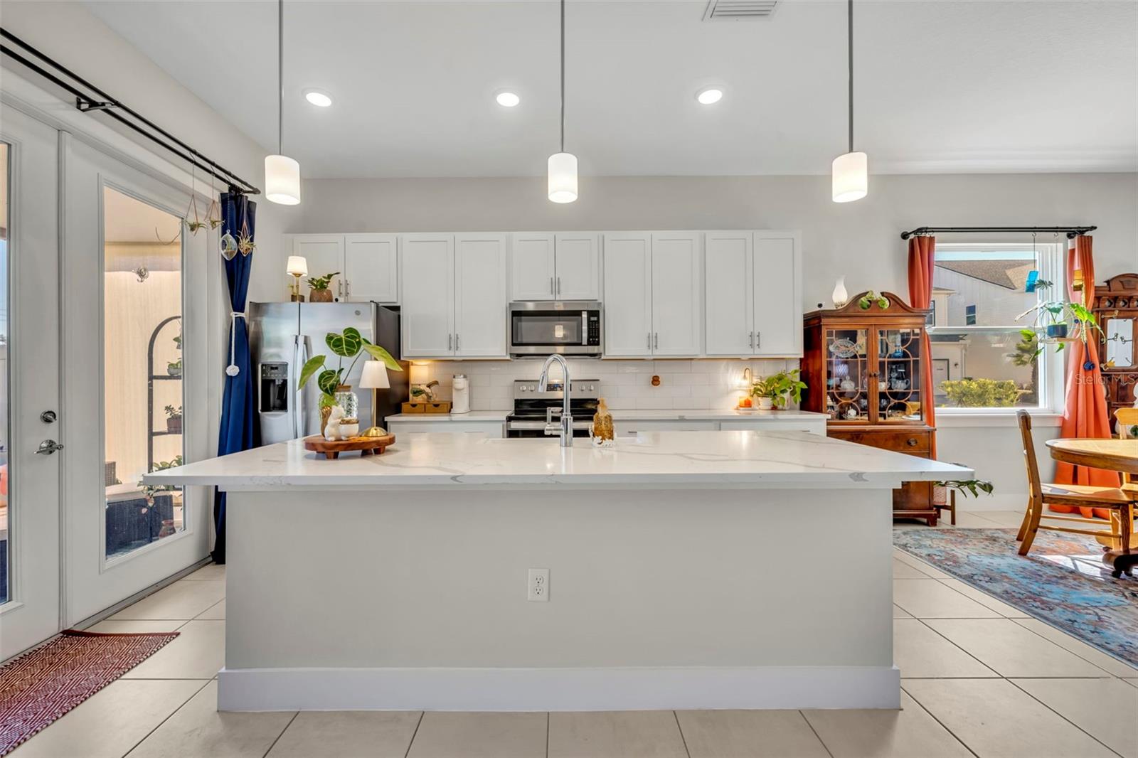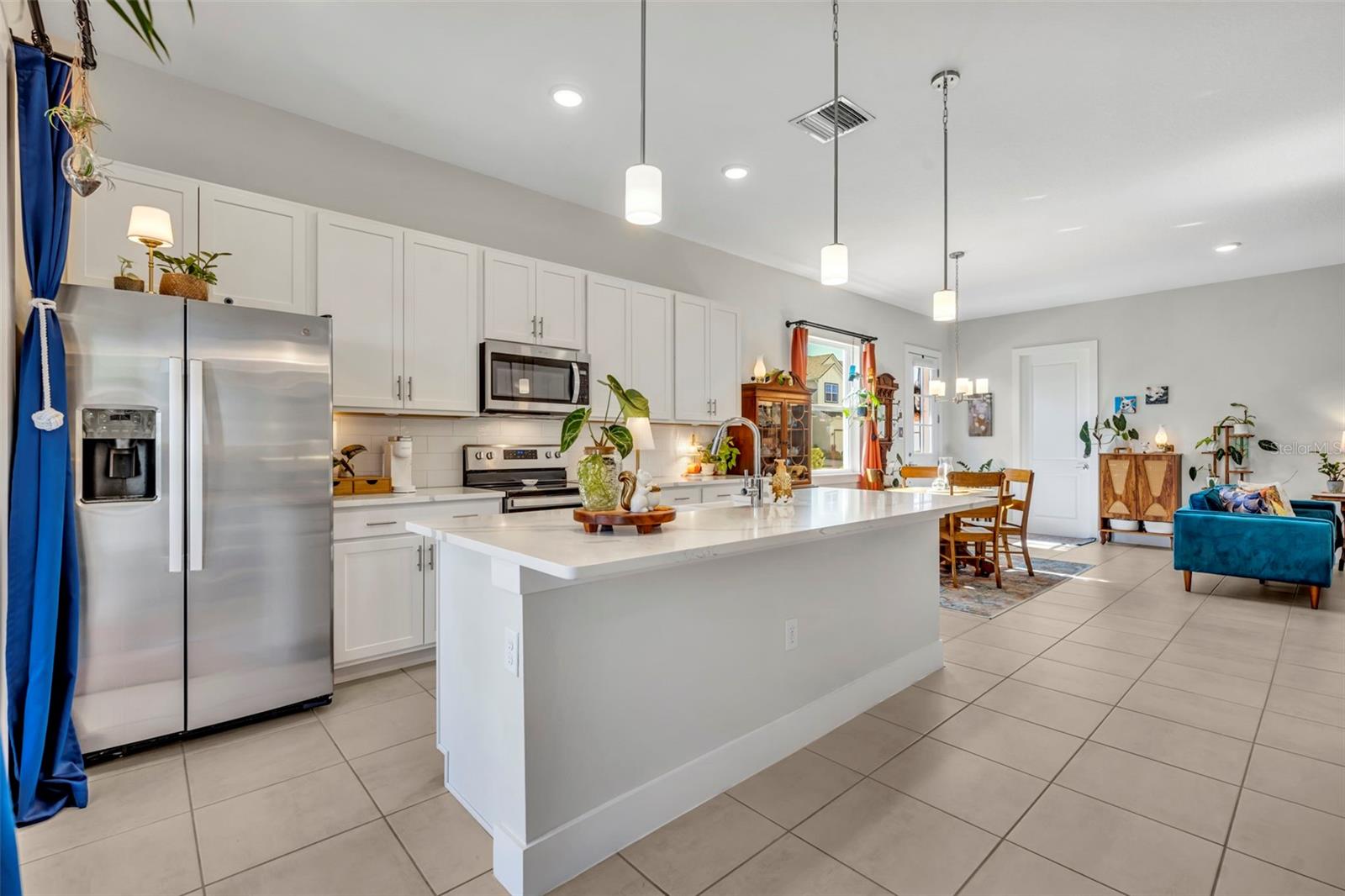 PRICE REDUCTION! This stunning end unit townhome offers nearly 2,000 square feet of bright, open living space with 3 spacious bedrooms, 2.5 baths, and a versatile upstairs loft that is perfect for a home office, playroom, or second living area. The kitchen is a standout with quartz countertops, 42 inch cabinetry, stainless steel appliances, a walk in pantry, and a large island that opens to the main living and dining areas, ideal for everyday living and entertaining. Step outside to your screened in lanai and enjoy a brand new fenced yard featuring turf and an extended paver patio. A private gate provides quick access to the community pool just steps away. Upstairs, you will find all three bedrooms plus a conveniently located laundry room. The owner’s suite features a walk in closet and an en suite bath, while the loft adds flexible space to fit your lifestyle. Enjoy low maintenance living with lawn care handled by the community, so you can spend more time relaxing and less time on upkeep. To top it off, this home includes a 1 to 0 buydown through the seller’s preferred lender and a 1 year home warranty, giving you lower payments in your first year of ownership and extra peace of mind.