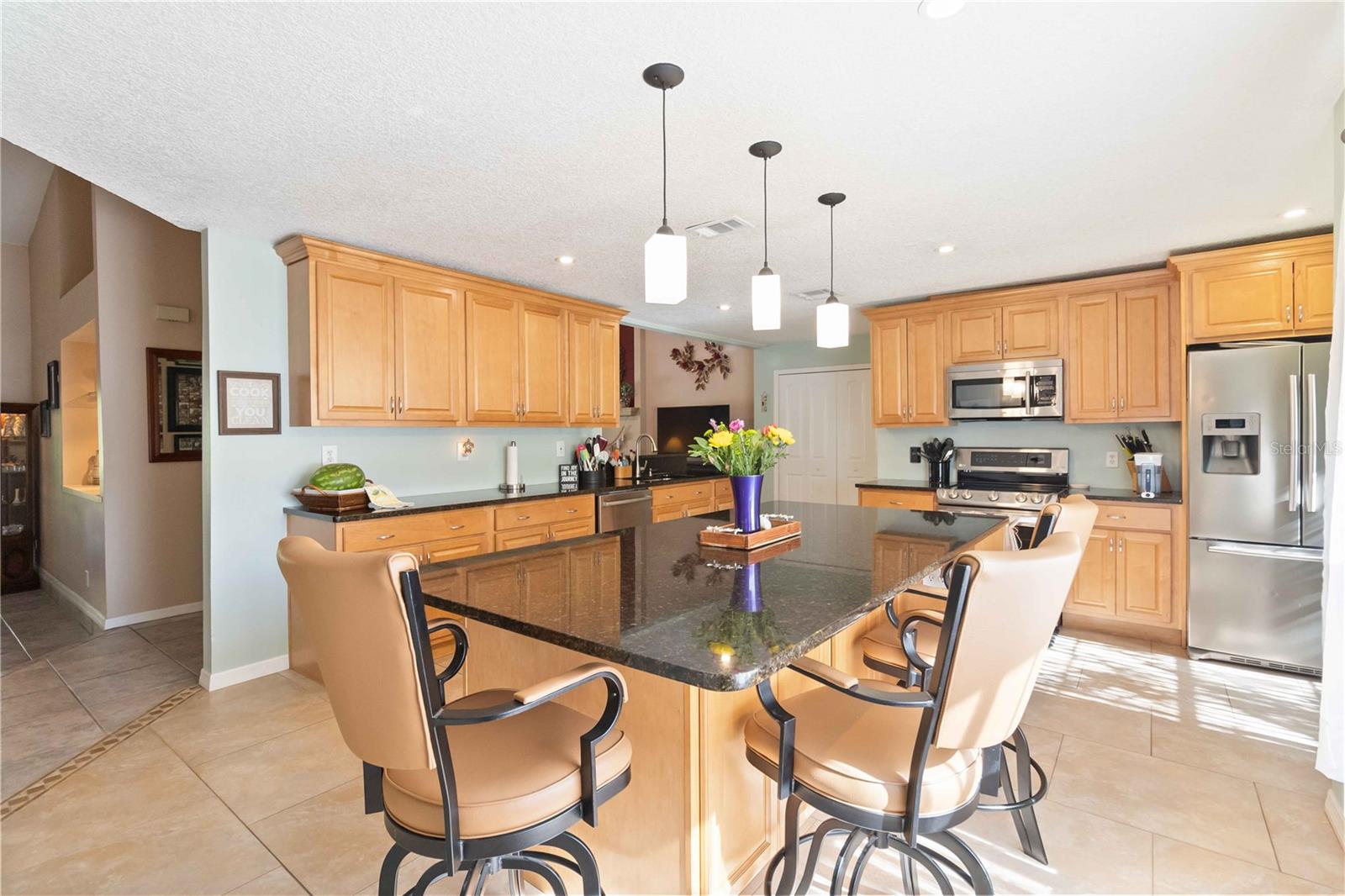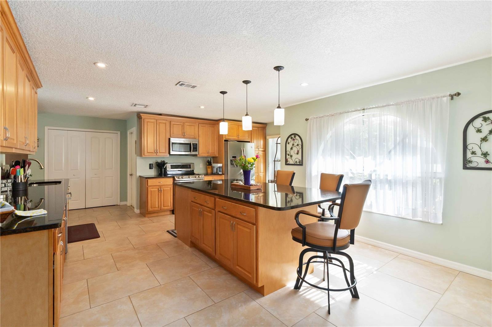 Welcome to your dream home in sought-after Oviedo! This spacious 4-bedroom, 2.5-bath residence offers 2,101 square feet of thoughtfully updated living space, perfectly blending modern finishes with timeless comfort nestled on just over a quarter acre lot. The heart of the home is the stunning expanded $45,000 kitchen remodel with upgrades including custom solid wood cabinets with stainless steel hardware, gleaming granite countertops, and an impressive cooking island over 8 feet long. The space is enhanced by new tile flooring, stainless steel appliances, and elegant undermount cabinet lighting and faucet, making it a chef’s paradise and entertainer’s delight. From cozy corners to open gathering areas, every room in this home delivers comfort and creates the perfect backdrop for entertaining family and friends. With its generous proportions and serene pool views, an oversized porch creates a seamless connection between shaded comfort and the outdoors as you step outside. A sizeable, sparkling, resurfaced pool, refreshed in 2018 with new tile, pool pump, timer, complemented by a brand-new cool deck installed in 2023 and solar panels for energy efficiency. The pool area is beautifully adorned by lush bamboo providing privacy, ideal for relaxing or hosting gatherings.This home has been meticulously maintained with many improvements: a new roof (2018), dual AC replacements (2014), a new hot water heater, and a skylight adding natural light, all-new interior doors (2013), removal of popcorn ceilings throughout, insulation in the attic 2023, the guest bathroom updated in 2015, new electrical panel 2019, full home re-pipe in 2012, seamless gutters and downspouts (2018), fresh carpeting on the lanai and even more that can be found on the feature sheet. Plus, enjoy the convenience of a separate irrigation meter and a very low HOA community. Every detail has been cared for, making this Oviedo gem a move-in ready sanctuary that balances style, comfort, and smart upgrades. This beautifully maintained single-family home checks all the boxes—offering comfort, style, and unbeatable convenience. Ideally located near all of today’s modern amenities, you’re just minutes from top-rated schools, shopping, dining, parks, and entertainment. With quick access to major expressways, commuting is a breeze. Plus the walking trail off Tuskawilla Road just outside the neighborhood is part of the Cross Seminole Trail and is a paved, multi-use path that stretches for 29.4 miles, connecting Oviedo to other areas like Winter Springs and Lake Mary, just perfect for those who like to soak up the outdoors. Whether you're looking for a quiet place to unwind or a home base for an active lifestyle, this property offers the ideal balance of convenience, comfort, and space to live, work, and play. Don’t miss your chance to own this exceptional home—schedule your private tour today!