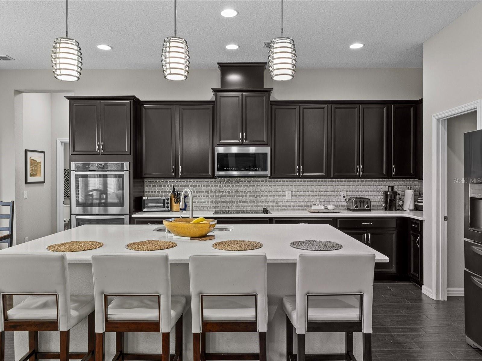 Welcome to 2357 Bellefield Cove, a true showcase of elegance and sophistication nestled in the heart of Oviedo, Florida. Built in 2016 by Meritage Homes, this Del Rio II Elevation D model spans over 5,131 square feet and offers 7 bedrooms plus a studio/entertainment room, 5 bathrooms, and a stunning custom saltwater pool added in 2022. Perfectly situated on a premium corner lot with peaceful conservation views along the front and side, this home combines modern design, superior craftsmanship, and luxurious comfort. The curb appeal immediately captivates — with a freshly repainted exterior (October 2025), stately stone accents, and professionally designed landscaping, this residence exudes timeless sophistication. Step inside through the grand double doors and you’re greeted by a two-story foyer that opens into formal living and dining rooms, both adorned with crown molding, elegant finishes, and an abundance of natural light. Every detail of this home was designed to impress and invite. At the heart of the home lies the gourmet kitchen, complete with a large center island, quartz countertops, stainless-steel appliances, a butler’s pantry with a spacious storage closet, and an adjoining café area overlooking the backyard. The kitchen flows seamlessly into the open-concept family room, creating the perfect space for entertaining, everyday living, or simply enjoying quality time with family. This home features two luxurious primary suites, offering exceptional flexibility for multi-generational living. The downstairs primary suite includes private access to its own one-car garage and a spa-style bath with dual vanities, a soaking tub, and a glass-enclosed shower. Upstairs, the second primary suite provides a private retreat with a generous walk-in closet and a luxurious bath featuring dual sinks, a soaking tub, and a frameless glass shower. The second level also offers five additional bedrooms, multiple full baths, a large game room, and a dedicated media room currently configured as an in-home studio—yet easily repurposed into a media room or home theater to suit your lifestyle. Every space is designed to offer flexibility, comfort, and purpose. Step outside to your custom-designed saltwater pool with Miami Blue quartz finish, the centerpiece of a spacious open-air lanai and patio area, ideal for outdoor entertaining or relaxing beneath the Florida sky. Surrounded by lush greenery and conservation views, this private oasis delivers the perfect blend of tranquility and luxury. Pride of ownership shines through with key updates and enhancements: both air-conditioning pumps were replaced in 2021, a new cooktop was installed in 2022, and both heat-pump evaporator coils were replaced in 2023. The home also comes with a transferable top-tier American Home Shield Home Warranty policy, providing additional peace of mind for its next owner. Combined with Meritage’s renowned energy-efficient construction and smart-home features, this home is the complete package — both beautiful and built to last. Ideally located within minutes of top-rated Seminole County schools, Oviedo on the Park, UCF, and major highways including 417 and 434, this home offers luxury living in one of Central Florida’s most sought-after communities. Elegant, expansive, and designed for those who appreciate both style and substance — 2357 Bellefield Cove is more than a home; it’s a lifestyle.