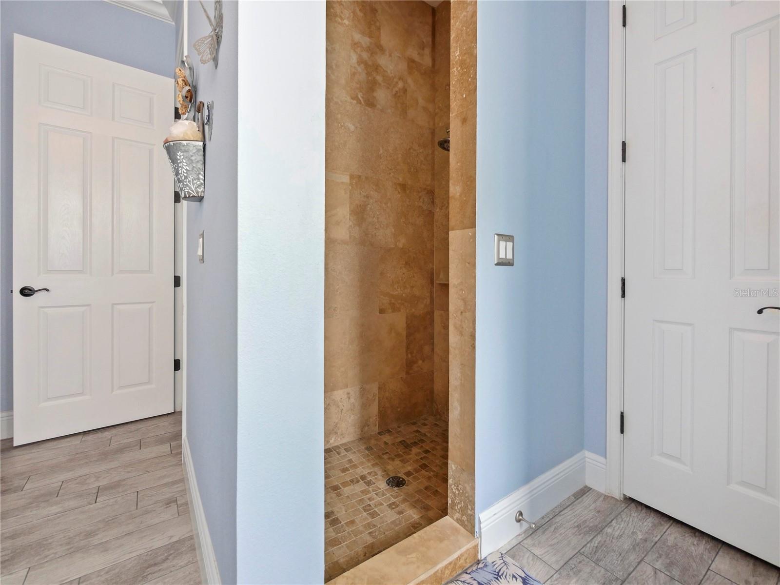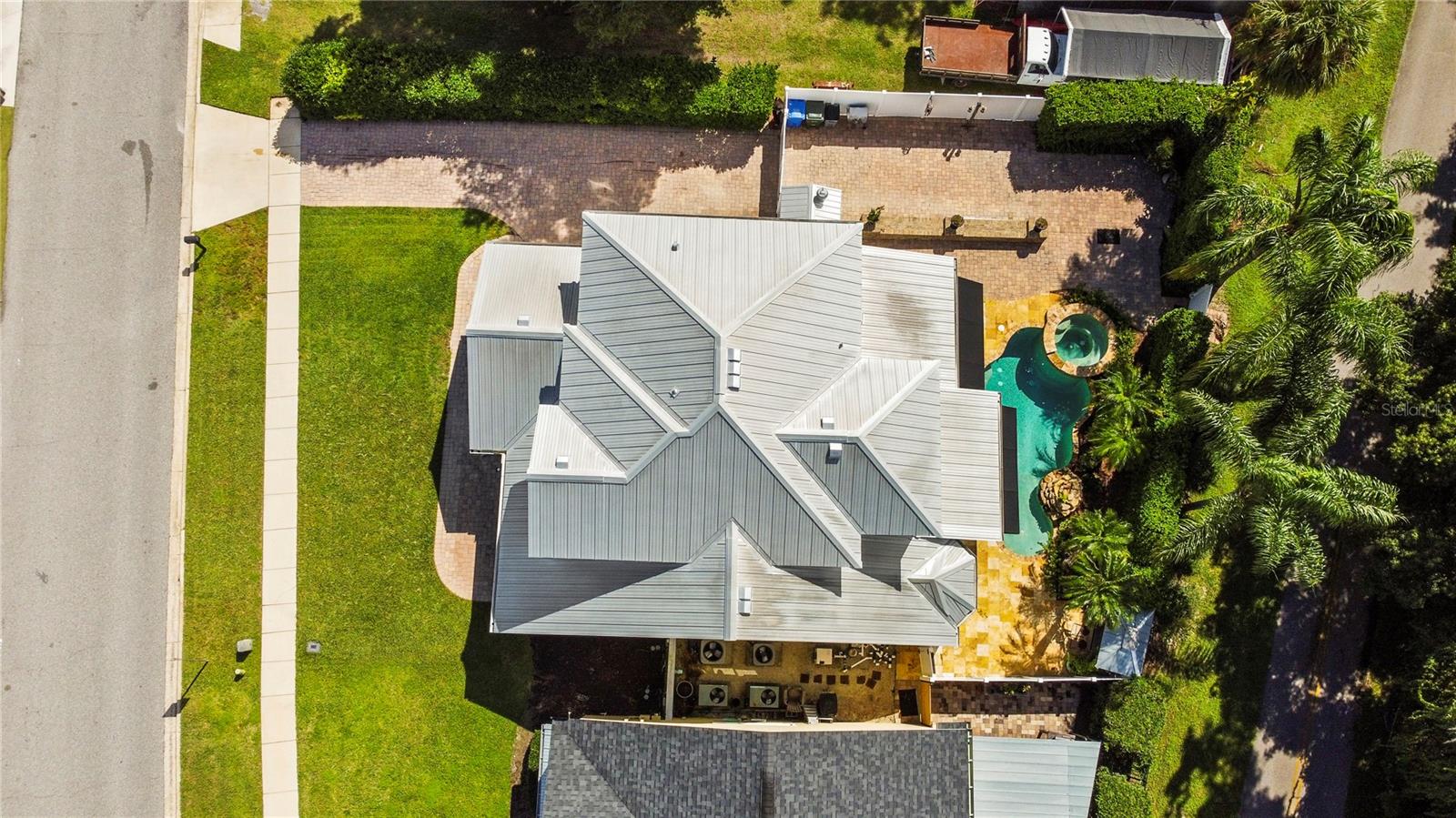 Tucked along the scenic Oviedo bike path, this custom-built home blends craftsmanship, character, and outdoor serenity into one unforgettable property. From the moment you arrive, the home’s coastal-inspired exterior, metal roof, and manicured landscaping set the tone for what’s inside: a thoughtful balance of luxury and comfort. Step through the front door and into a light-filled living space (or formal dining if you wish) that creates a sense of openness and warmth. Every finish has been carefully chosen, from the crown molding to the porcelain plank tile floors that flow seamlessly throughout the main level. The heart of the home is the kitchen; a designer showcase with a 12-foot granite island, custom cabinetry, under-cabinet and glass display lighting, and a charming breakfast nook framed by bay windows overlooking the pool. The open concept connects the kitchen to the living room, where an oversized sliding glass door invites the outdoors in and leads to your private backyard retreat. Outside, the resort-style lagoon pool steals the show. Surrounded by gold-stone travertine, the saltwater pool features a soothing river rock fountain, attached hot tub, a remote to control the pool and spa, and lush tropical greenery for complete privacy. The covered BBQ area with a matching metal roof, outdoor shower, and multiple sitting areas make this space perfect for entertaining or unwinding after a long day. Enjoy direct access to the Oviedo bike trail just on the opposite side of the back vinyl fence. This outdoor space also features a paved section to store a boat or RV (NO HOA so bring your toys!), a T1-11 shed with electricity, a metal roof, and wood flooring, recessed soffit lighting, tongue & groove wood patio ceilings, and an outside shower. The primary suite feels like a true getaway, offering direct access to outside area. The en-suite bathroom features an updated vanity with plenty of storage, and a travertine-lined walk in shower. Upstairs, a wrought-iron balcony overlooks the living area below, leading to the 3 spacious bedrooms and updated bathrooms finished with granite and travertine. Upstairs is also home to a converted attic bonus room (with air conditioning) so you no longer have to climb in a hot attic to retrieve your items in storage! With a commercial-grade metal roof, double-pane windows, an extra-tall hurricane-rated garage door, new 2025 hot water heater, all-new 2025 pool equipment (pool pump and salt cell system), and a transferrable termite bond, this home has been maintained with pride and built to last. Every inch of this home reflects thoughtful design and quality craftsmanship. Located minutes from Oviedo’s vibrant dining and zoned top-rated schools, it’s the perfect combination of refined living and everyday comfort.
