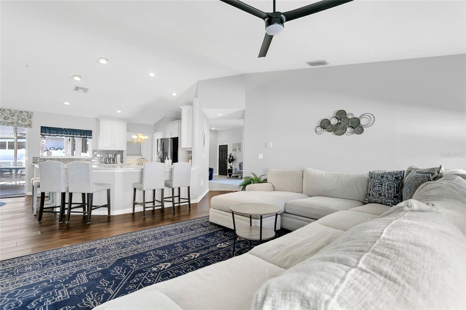 Location. Lifestyle. Luxury. Welcome to an extraordinary, beautifully appointed 4-bedroom, 2-bath pool residence nestled in the highly coveted and established Twin Rivers community of Oviedo. Gracefully positioned on a rare and expansive .44-acre conservation homesite with no rear neighbors, this property offers exceptional privacy, tranquil natural views, and an enviable sense of space — all in an unbeatable, highly desirable location. From the moment you enter, soaring vaulted ceilings and abundant, natural light create an airy, welcoming, and sophisticated ambiance. The elegant formal living and dining spaces blend seamlessly, enhanced by gorgeous luxury vinyl plank flooring that flows throughout the main living areas, striking the perfect balance between warmth, durability, and modern refinement. At the heart of the home lies a stunning, thoughtfully renovated chef-inspired kitchen designed for both comfortable everyday living and effortless entertaining. Expansive tiled countertops and backsplash, sleek newer appliances, generous bar seating, and a charming sunlit eat-in area make this space as functional as it is stylish — ideal for peaceful morning coffee, festive holiday gatherings, or intimate evenings with friends. The desirable split floor plan offers privacy and comfort, with a spacious and serene primary suite tucked away as a true retreat. Dual walk-in closets, a beautifully updated tiled shower, relaxing garden tub, new frameless glass enclosure, and contemporary lighting elevate the space into a spa-like sanctuary. The secondary bath has also been tastefully remodeled with clean, modern finishes, ensuring comfort and style for family or guests. Additional thoughtful upgrades include a newer AC system, refreshed pool features, and an enhanced sprinkler system for easy, efficient maintenance. Step outside and discover your own private, resort-style Florida oasis. A generous 20x12 covered and screened patio creates the perfect setting for relaxed outdoor living, whether hosting lively celebrations or enjoying quiet sunset evenings. The impressive 7-foot-deep saltwater pool features a unique underwater table with built-in seating and umbrella sleeve — an inviting and distinctive touch perfect for long, sun-drenched afternoons. A raised, heated spa and sleek aluminum accent fencing add architectural elegance, while the expansive fenced yard still provides abundant green space, including a charming, colorful corner flower garden. Fresh, lush St. Augustine sod in both the front and back yards enhances the home’s manicured curb appeal, and the property line extends well beyond the rear fence (see survey), offering even greater privacy, flexibility, and possibility. And then there’s the location — truly exceptional. Walking distance to Carillon Elementary and Hagerty High School, and just minutes from Twin Rivers Golf Club, the Oviedo Skate Park, UCF, Siemens, Lockheed Martin, Waterford Town Center, SR 417, and Downtown Orlando — convenience, community, and connectivity come together effortlessly. This is more than a home — it is a refined lifestyle opportunity in one of Oviedo’s most desirable and well-loved neighborhoods. Opportunities of this caliber are rare. Come experience the comfort, privacy, and understated luxury for yourself — and let’s get you to closing.