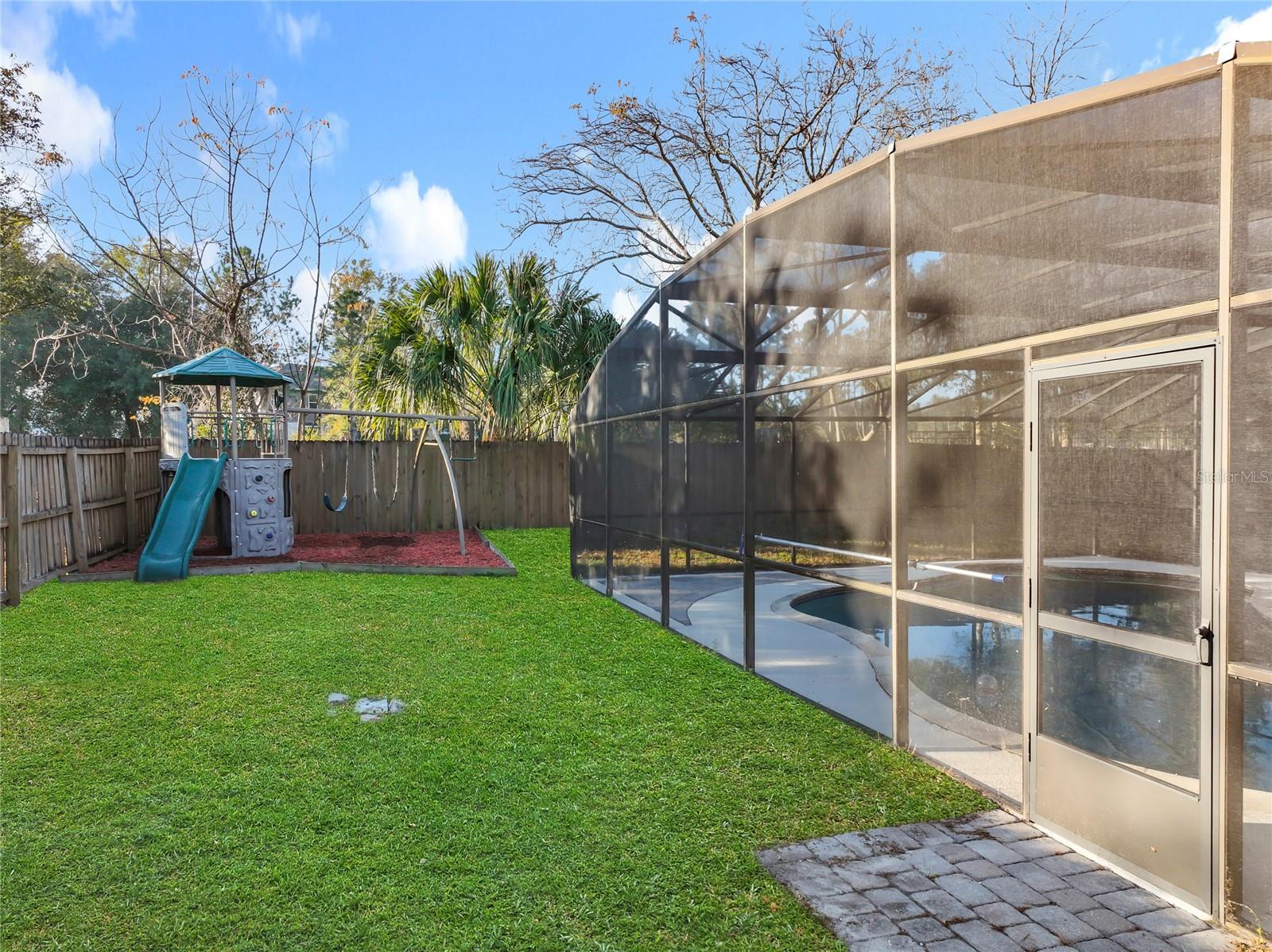 Welcome to this beautifully updated 4-bedroom, 2-bath Oviedo home in a highly sought-after community with top-rated schools and quick access to Highway 417. Just minutes from Publix, Walmart Supercenter, Kohl’s, and a wide selection of restaurants, this location offers unbeatable convenience while still providing a peaceful neighborhood setting. Florida living truly shines in the backyard oasis. Step out to the expansive screened lanai and sparkling pool, surrounded by plenty of deck space for lounging, dining, and entertaining. The fully fenced yard features a double side gate—perfect for storing a boat, trailer, or recreational toys—and a dedicated playground area, creating a private retreat for both relaxation and fun. Inside, the home feels bright, modern, and inviting. Luxury vinyl plank flooring flows throughout the open living spaces, complemented by high ceilings and an abundance of natural light. The remodeled kitchen is a showstopper with sleek cabinetry, stainless steel appliances, generous counter space, and a large center island with bar seating—ideal for casual meals and gathering with friends and family. The open-concept design connects effortlessly to both living and dining areas, offering flexibility for everyday living and entertaining. The primary suite is spacious and well-appointed, featuring dual closets with custom built-in shelving for exceptional organization. Secondary bedrooms are generously sized, including one with convenient pull-down Murphy twin beds—perfect for guests, a home office, or multi-purpose use. An oversized two-car garage provides additional storage, and the extra refrigerator conveys with the home. The home is also wired for generator which conveys with the home. From the charming front curb appeal to the thoughtfully designed interior and incredible outdoor space, this home delivers style, function, and lifestyle all in one. Don’t miss the opportunity to make this Oviedo gem your own!