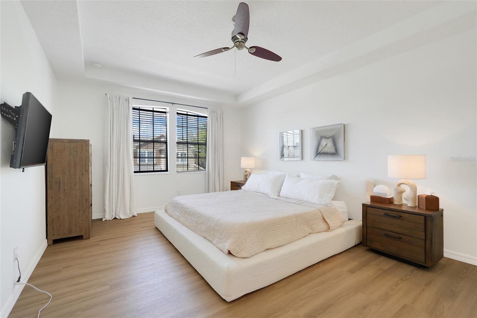 Welcome to this beautifully maintained 3-bedroom, 2.5-bath townhouse located in the desirable Stratford Green community. Offering 1,675 square feet of heated living space and a spacious 2-car attached garage, this home combines comfort, style, and functionality. Step inside to an open-concept layout featuring a bright and airy living and dining area with abundant natural light, modern flooring, and clean, contemporary finishes. The kitchen is well-appointed with rich wood cabinetry, sleek countertops, stainless steel appliances, and ample storage—perfect for both everyday living and entertaining. Upstairs, the spacious primary suite provides a relaxing retreat with a large walk-in closet and a private en-suite bathroom featuring a beautifully tiled walk-in shower. Two additional bedrooms offer flexibility for guests, a home office, or growing households. Enjoy indoor-outdoor living with a covered and screened patio area, ideal for relaxing or entertaining year-round. The space is complemented by tasteful landscaping and a cozy setup perfect for gatherings. Additional highlights include a dedicated laundry area, generous storage throughout, and a thoughtfully designed floor plan that maximizes both space and comfort. Residents of Stratford Green enjoy access to a community pool, adding to the appeal of this well-located neighborhood. Conveniently situated near shopping, dining, and major roadways, this home offers both tranquility and accessibility. A great opportunity to own a move-in-ready townhouse in a sought-after community.