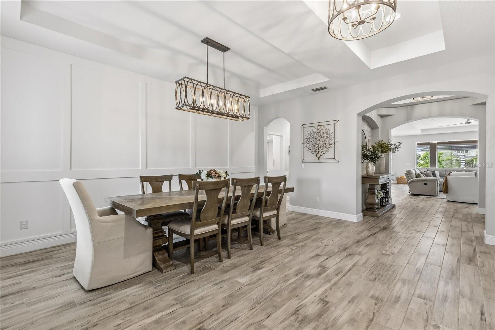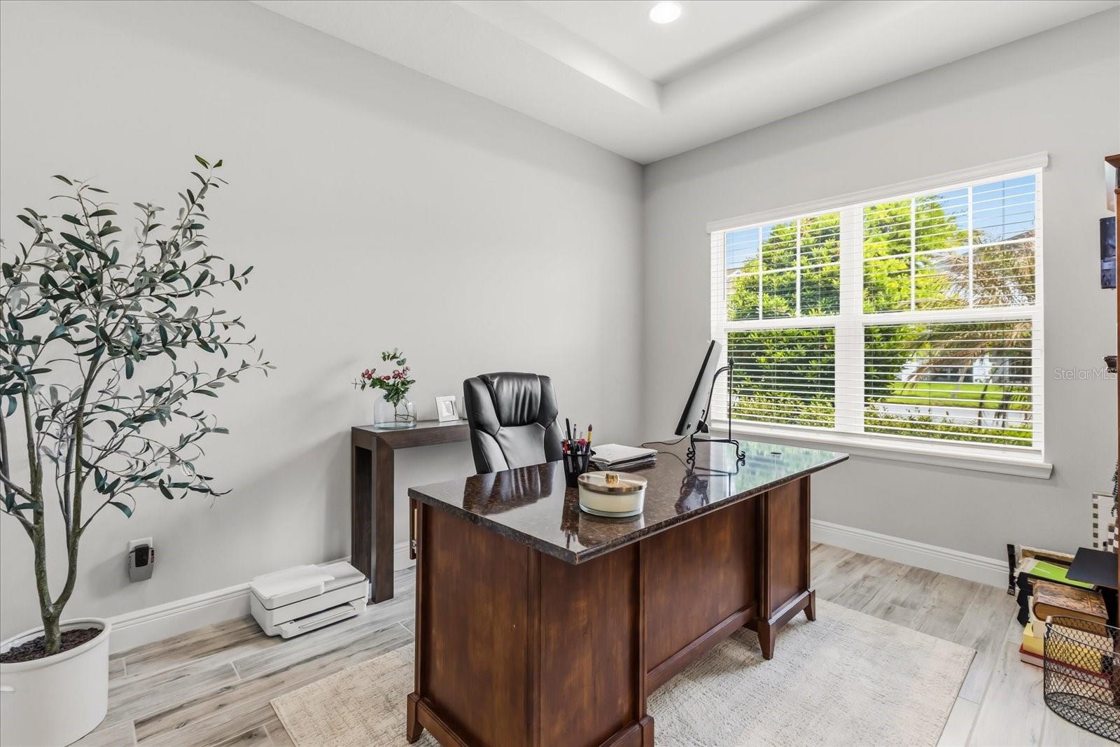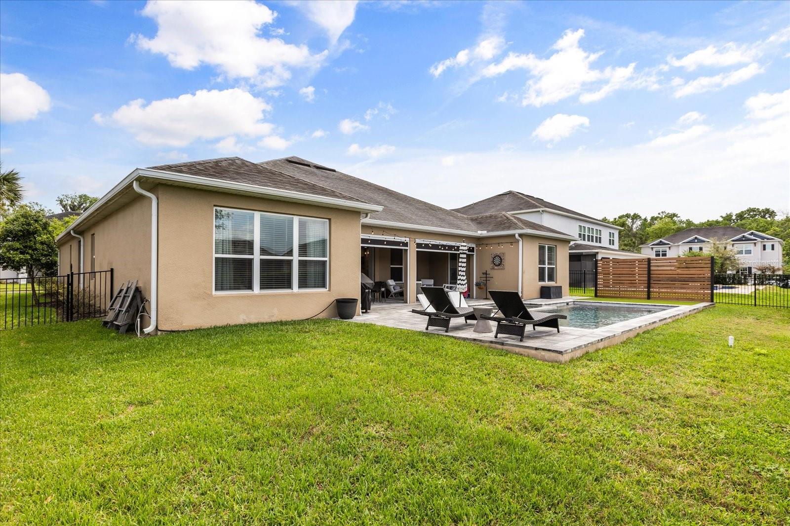 Welcome to this stunning 2019-built home located in the gated community of Retreat at Lake Charm, where modern luxury meets everyday comfort. Featuring 4 spacious bedrooms, 3 full bathrooms, and 1 half bath, this thoughtfully designed residence also includes a private office and a versatile flex room—ideal for a media room, home gym, playroom, or whatever suits your lifestyle. From the moment you step inside, you’re greeted by a grand foyer, with a private office to the right and a spacious dining room to the left—perfectly positioned for both function and style. The dining room showcases a beautiful custom built-in accent wall, setting the tone for the designer touches found throughout the home. You’ll also find additional accent walls in the half bath, the bathroom near the flex room, and along the kitchen area, adding warmth and character. As you continue in, you’ll be captivated by the open-concept layout, soaring tray ceilings, and elegant upgraded tile flooring that flows seamlessly throughout the main living areas and into the primary suite. The heart of the home is a beautifully appointed kitchen complete with stainless steel appliances, ample cabinetry, a custom built-in pantry, and a large island overlooking the expansive living and dining spaces—perfect for entertaining. The split-bedroom floor plan offers both privacy and functionality. Two bedrooms are tucked away to the right, connected by a convenient Jack-and-Jill bathroom, while a third bedroom and full bath sit on the opposite side near the flex space—ideal for guests or multi-generational living. Retreat to the luxurious primary suite featuring dual vanities, a soaking tub, a walk-in shower, and a custom built-in closet system designed for optimal organization. Step outside to your own private oasis. The covered patio is an entertainer’s dream with a built-in wet bar, sink, and beverage fridge, plus dual motorized roll-down screens for comfort and privacy. Enjoy Florida living at its finest with a sparkling pool and spa built in 2024, complemented by a low-maintenance turf area and serene water views. Additional highlights include custom built-in cabinetry in the living room, built-in cabinetry in the laundry room, and a two-car garage with an extended left bay—perfect for extra storage, a workshop area, or accommodating larger vehicles. This home truly has it all—style, space, and luxury in every detail. Don’t miss the opportunity to make it yours.