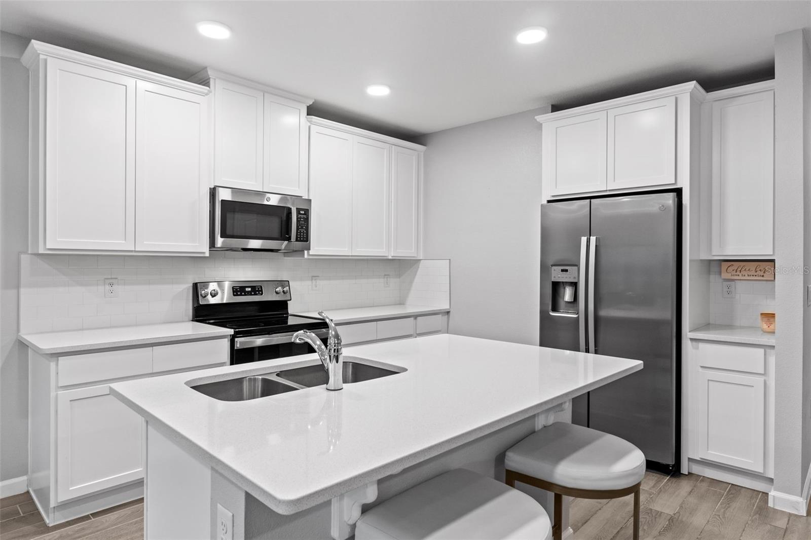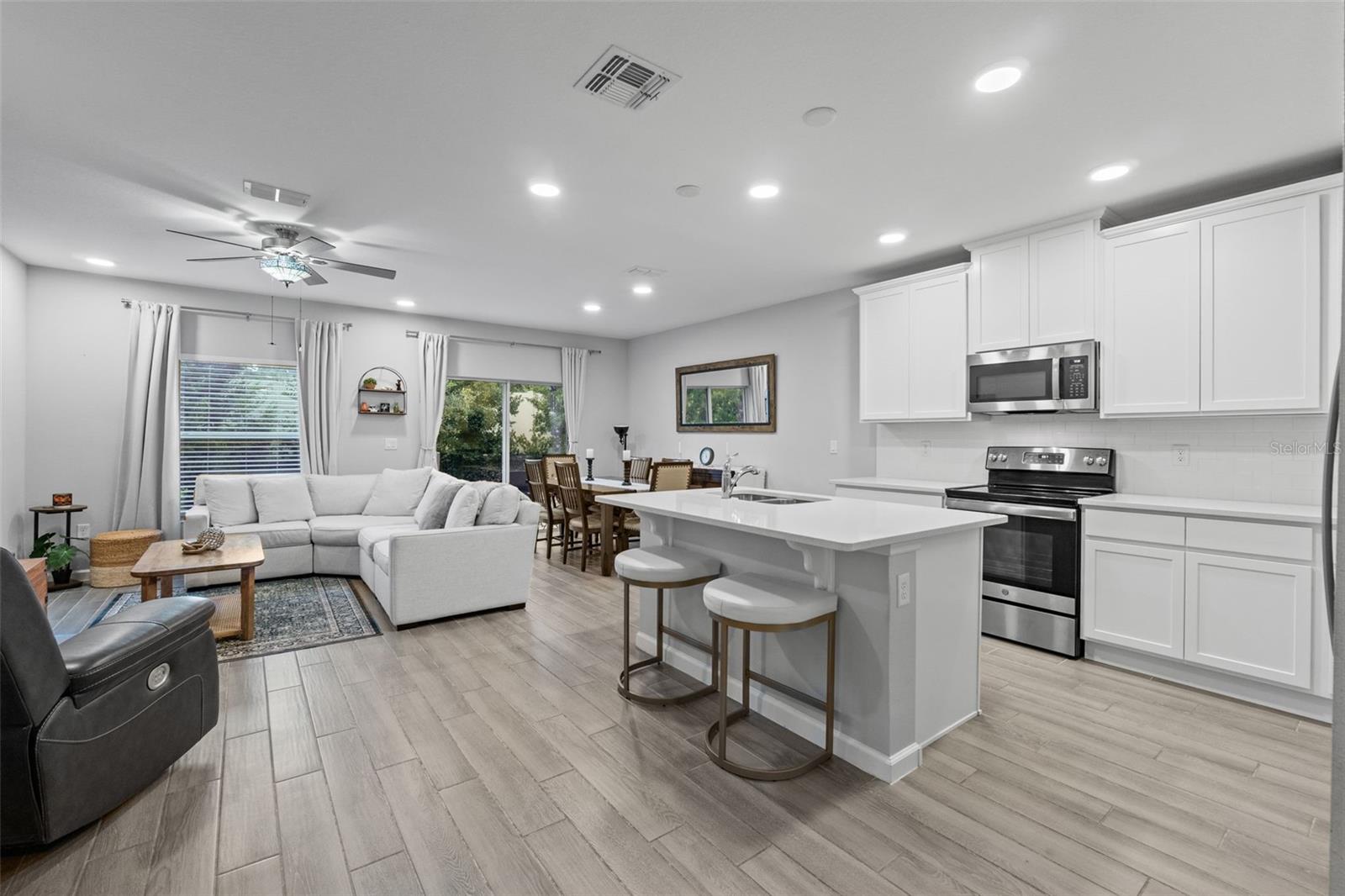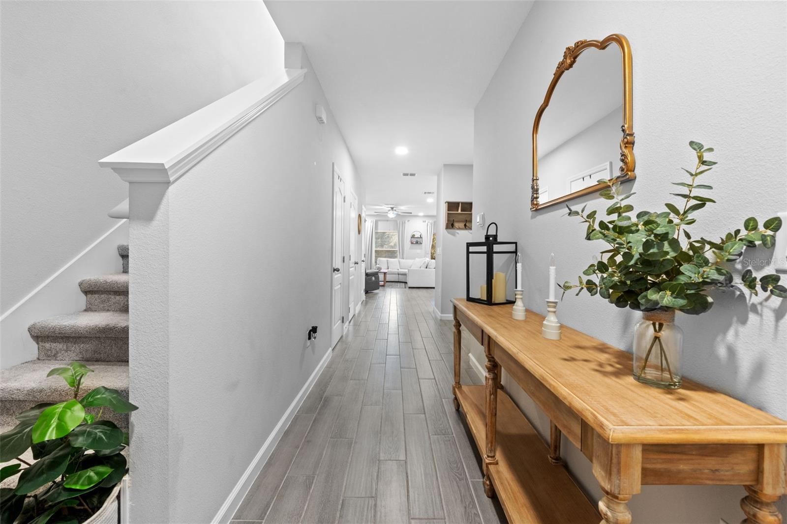 Welcome to this stunning 3-bedroom, 2.5-bathroom townhome built in 2023, offering 1,569 sqft of modern design and comfort in a prime location. Step inside to find beautiful wood-look tile throughout the first floor and cozy carpet in the upstairs bedrooms and loft. The open-concept kitchen and living area is perfect for entertaining, featuring sleek quartz countertops and stainless-steel appliances. Enjoy your own private back patio with no rear neighbors. The one-car garage includes upgraded epoxy flooring, and the paver driveway adds a touch of elegance. Located in a gated community with a dog park, this home offers both security and amenities. You're just 5 minutes from SR-417, 10 minutes to UCF, and 20 minutes to Orlando Executive Airport—making this an unbeatable location for commuters or professionals. Don’t miss your chance to own this beautiful, move-in-ready home!