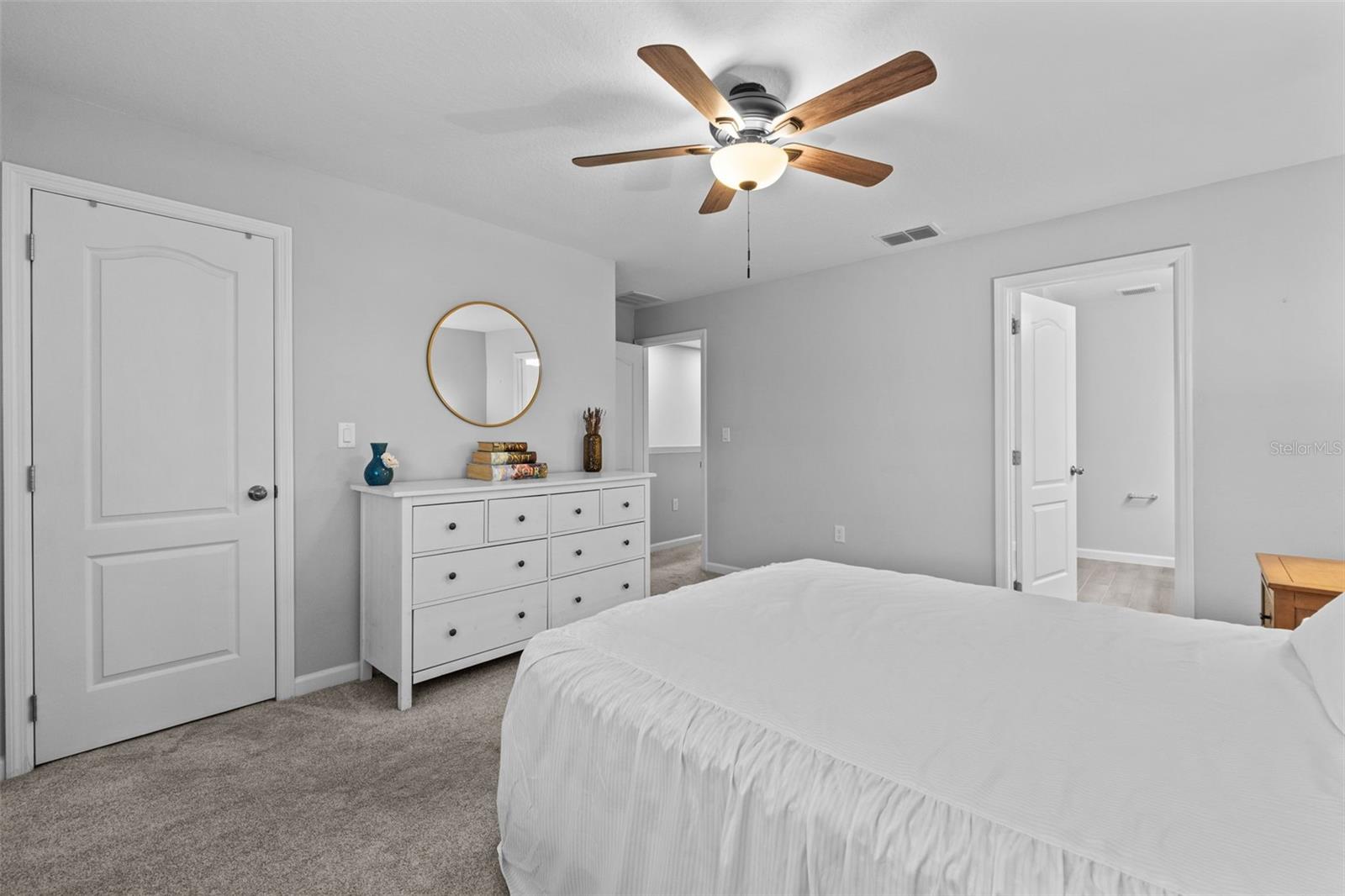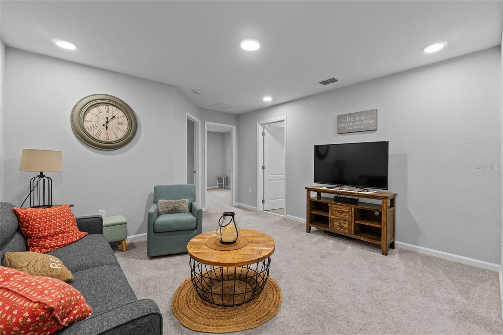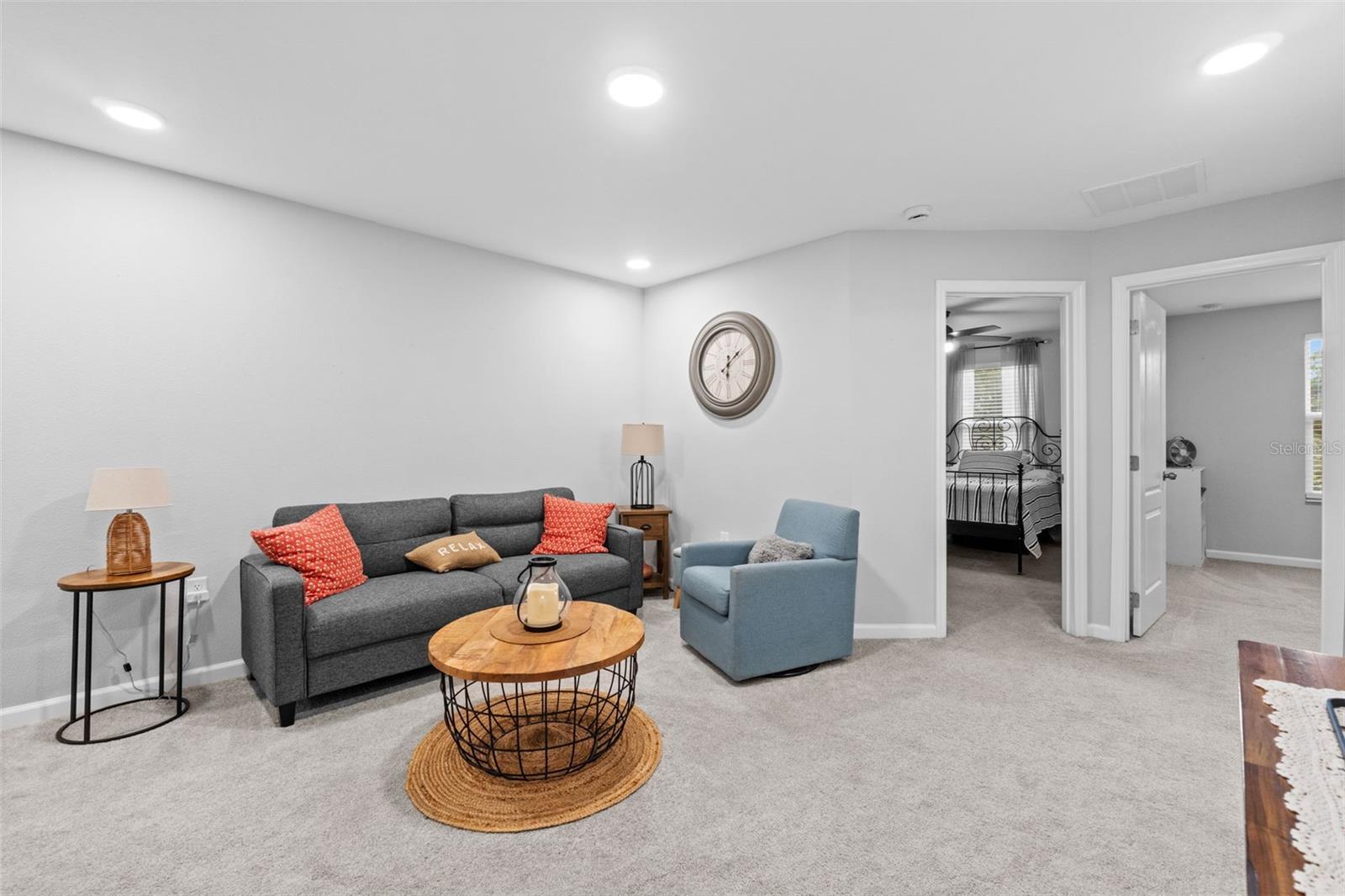 Welcome to this stunning 3-bedroom, 2.5-bathroom townhome built in 2023, offering 1,569 sqft of modern design and comfort in a prime location. Step inside to find beautiful wood-look tile throughout the first floor and cozy carpet in the upstairs bedrooms and loft. The open-concept kitchen and living area is perfect for entertaining, featuring sleek quartz countertops and stainless-steel appliances. Enjoy your own private back patio with no rear neighbors. The one-car garage includes upgraded epoxy flooring, and the paver driveway adds a touch of elegance. Located in a gated community with a dog park, this home offers both security and amenities. You're just 5 minutes from SR-417, 10 minutes to UCF, and 20 minutes to Orlando Executive Airport—making this an unbeatable location for commuters or professionals. Don’t miss your chance to own this beautiful, move-in-ready home!