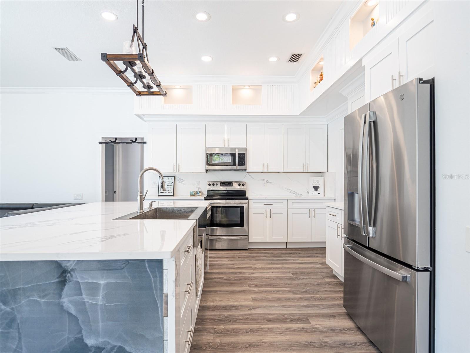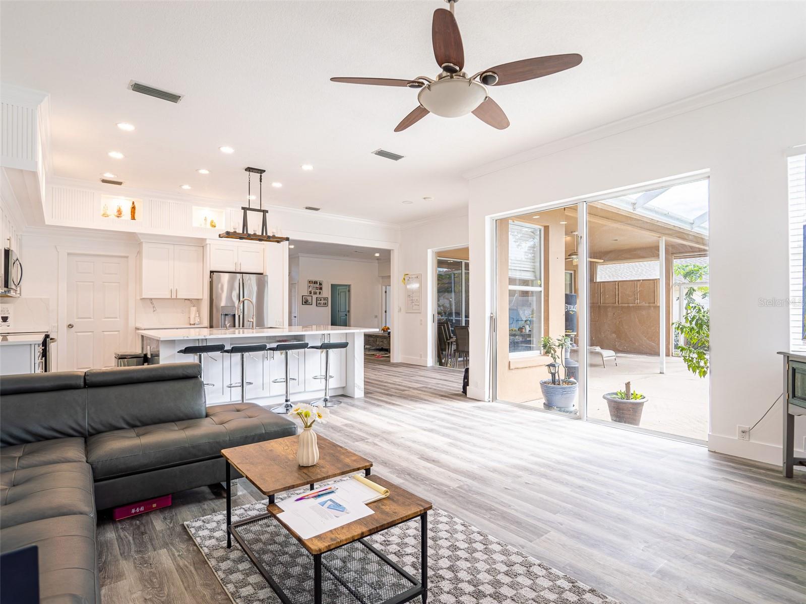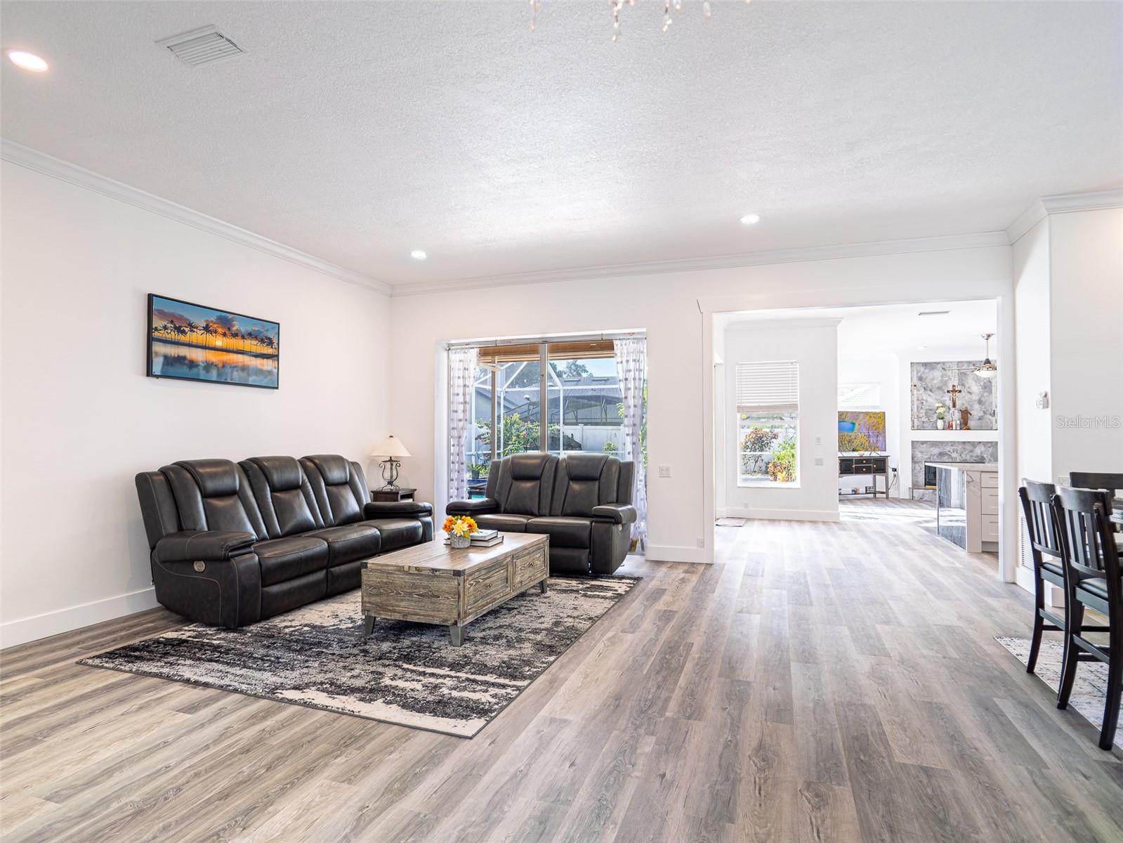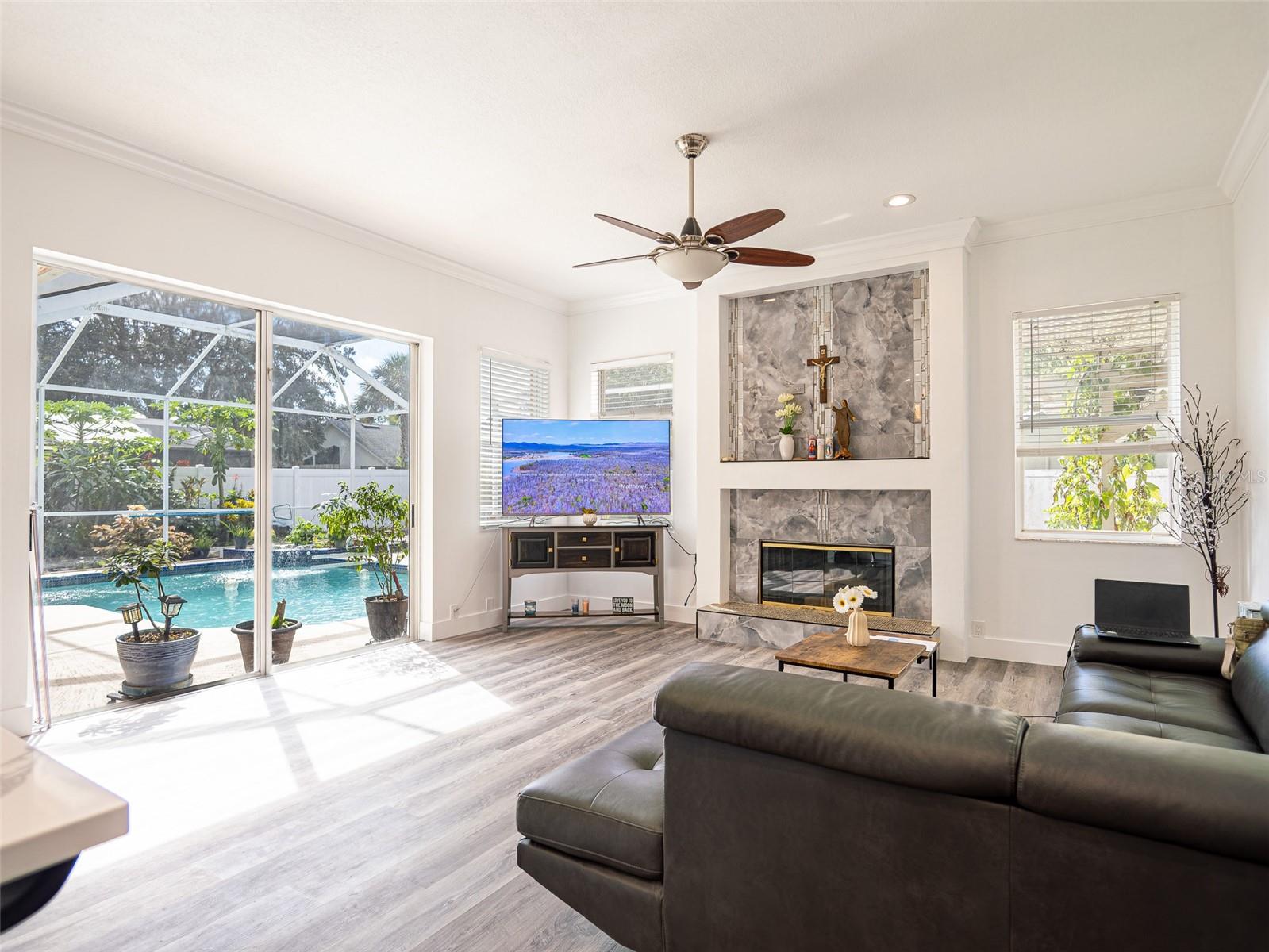 Location, location, location! Welcome to this fully updated modern 4-bedroom, 3-bath one-story home tucked away on a quiet cul-de-sac in the highly sought-after Remington Park subdivision of Oviedo. Built by renowned Arthur Rutenberg, this elegant brick-front concrete residence offers timeless design, soaring 10-foot ceilings (in all rooms except two bedrooms), Palladian windows, and an open, airy feel throughout. The entire home has been tastefully updated from top to bottom, including the kitchen, bathrooms, flooring, and finishes, creating a truly move-in-ready modern living experience. Spacious living areas feature glass doors that lead to a covered terrace and a sparkling in-ground gunite pool—perfect for entertaining or relaxing Florida-style. The family room with fireplace adjoins a bright breakfast area and a command-style granite kitchen. The kitchen and all bathrooms feature granite countertops, upgraded approximately five years ago. Major improvements include a new 3-D hip roof (2019), central A/C (approx. 8 years), full PEX plumbing throughout (approx. 8 years), and a pool filter (approx. 6 years), offering peace of mind for years to come. The expansive backyard is a private tropical retreat with pavered stone surfaces (no grass to cut), shaded pergolas, and an impressive collection of mature fruit trees and plants including citrus, avocado, jackfruit, papaya, tamarind, moringa, and more. Ideally located close to top-rated Oviedo schools, shopping, restaurants, and everyday conveniences. Oviedo is widely known for its outstanding school system and family-friendly community. Seller is the listing agent’s brother.