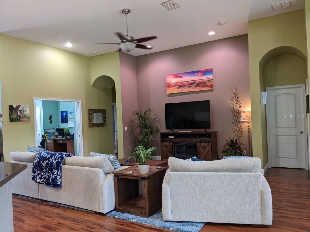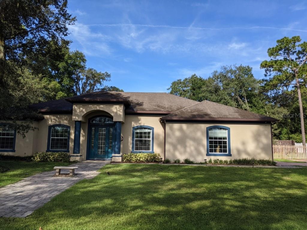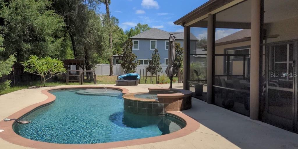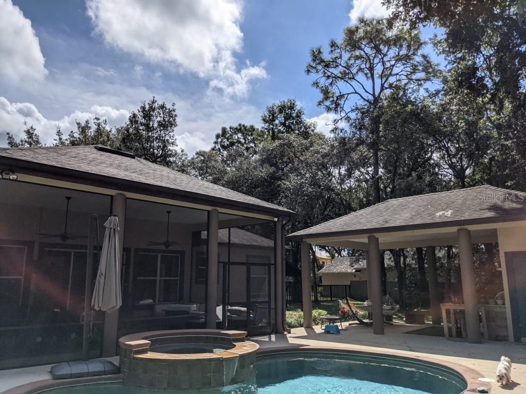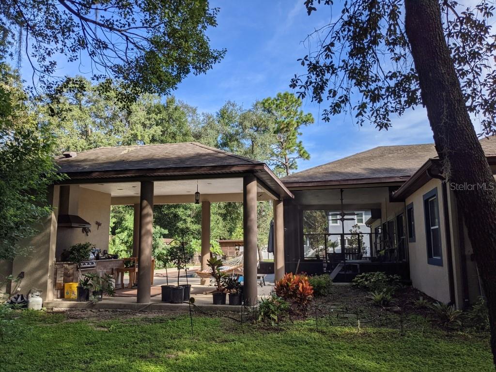 Your Private Resort Awaits. Tucked beneath the graceful canopy of mature oak trees on nearly .6 acres, this 5 bedroom, 4 bathroom home blends timeless elegance with resort-style living. Enter through the front door and into soaring 12-foot ceilings, sunlit open spaces and a thoughtful split floor plan that offers both connection and privacy. The master suite is a retreat of its own" two walk-in closets, a spa-like jetted tub, massive bathroom and bedroom. 10' Ceilings " All bedrooms, Beyond the sliding triple glass doors lies your entertainment paradise: an expansive 400+ sq. Ft. Screened patio with 12-foot ceilings, a shimmering pool and hot tub and a covered outdoor kitchen complete with its own bathroom and shower" perfect for effortless hosting. With no HOA, every inch of this property is yours to enjoy on your terms. Whether you're savoring a quiet morning coffee under the oaks or hosting friends for an unforgettable evening by the pool, this home offers the freedom, beauty and comfort you deserve. Prime Location " Close to shopping, dining, & top schools..