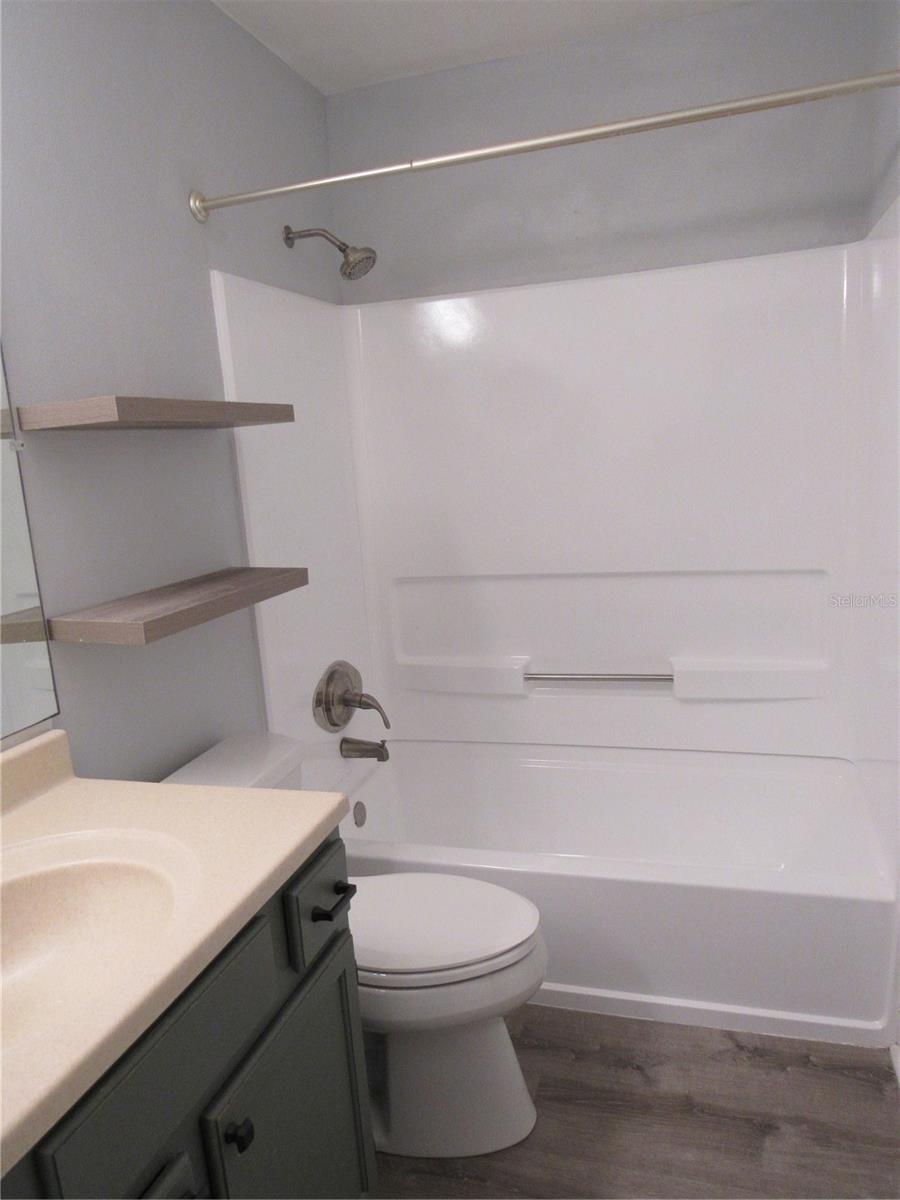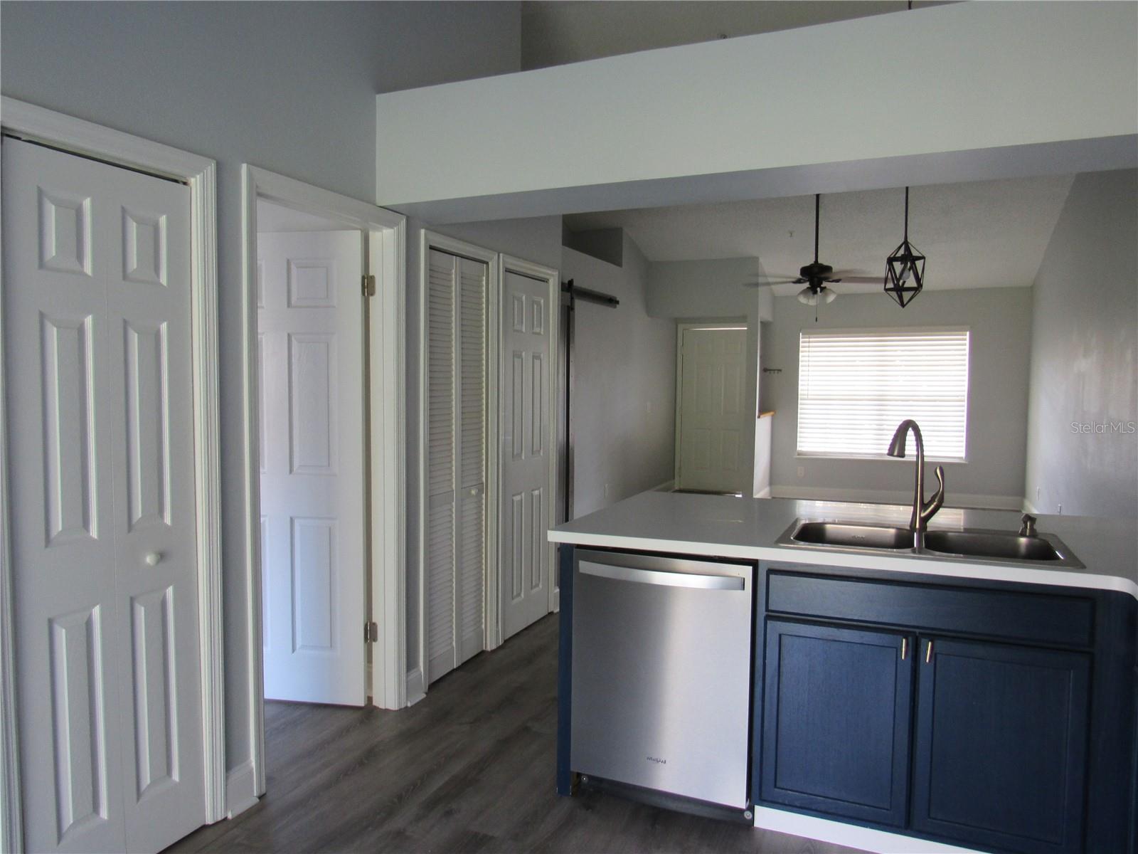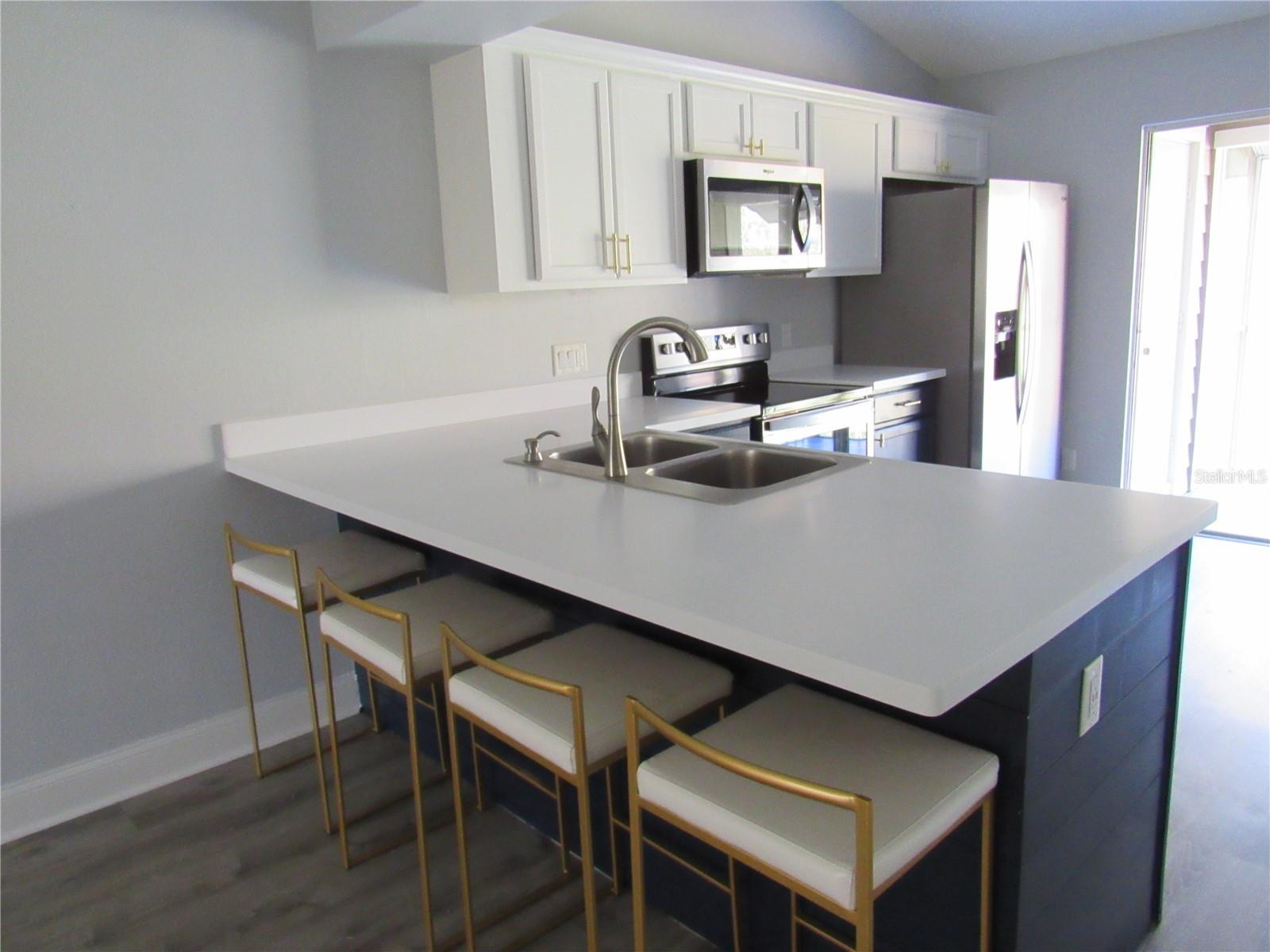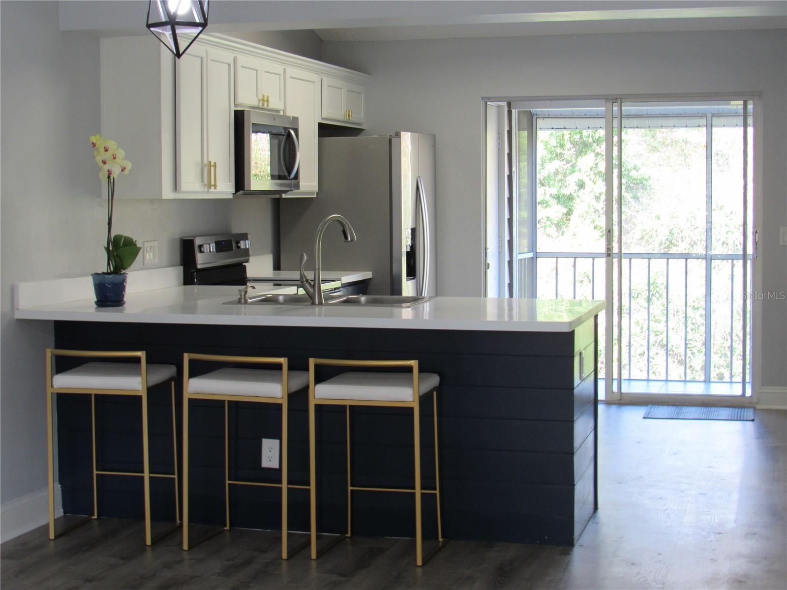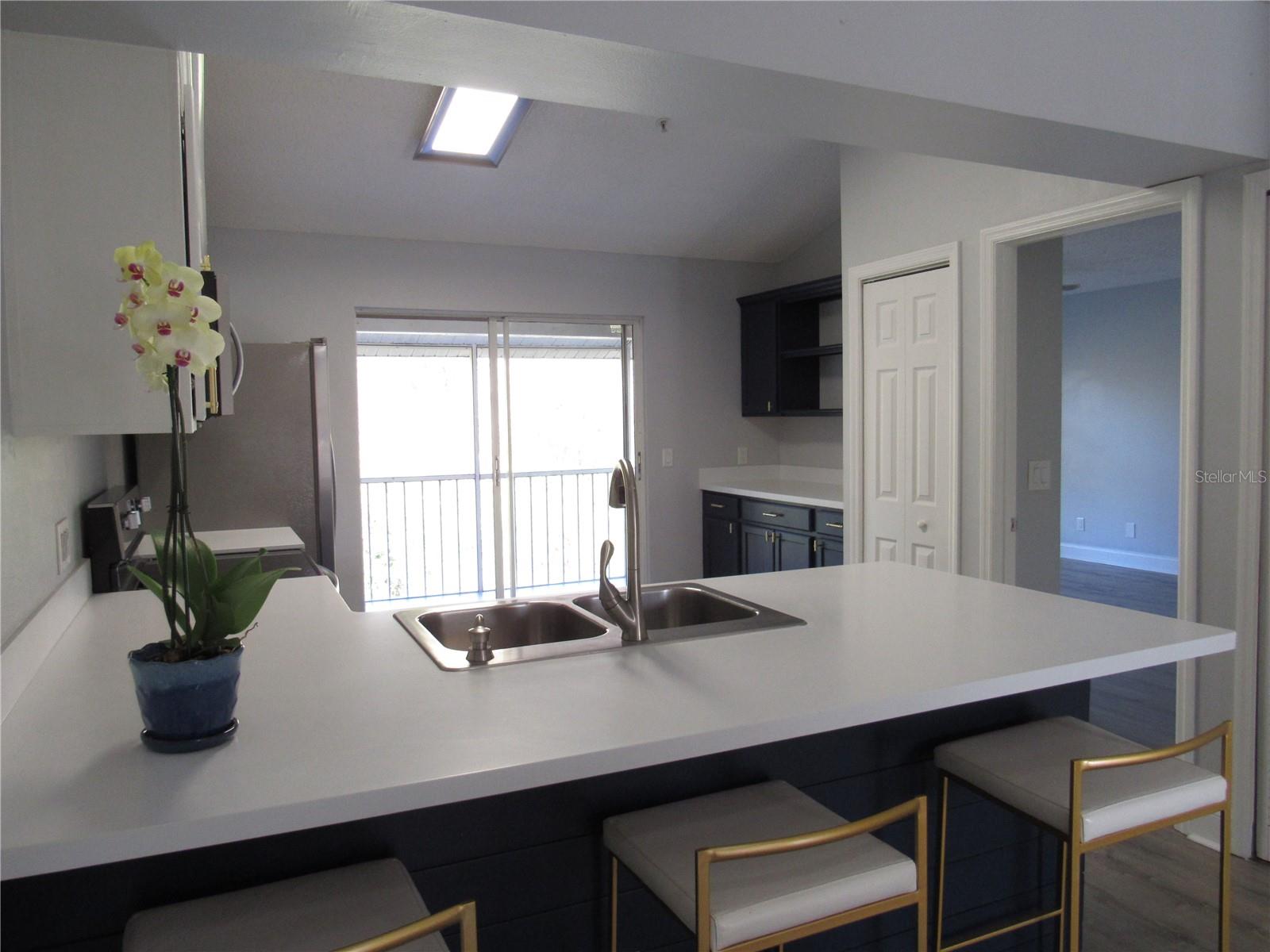 Welcome to Hunters Ridge condo complex! You will appreciate this 2 bedroom / 2 bath move-in ready 2nd floor condo, located just minutes away from UCF, downtown Oviedo, restaurants, shopping and medical centers. This condo offers an open floor plan. Featuring vaulted ceilings, laminate flooring, ceiling fans, new HVAC system in 2019, modern lighting, a spacious kitchen equipped with custom-decor cabinetry, stainless steel appliances, ample counter space with solid surface countertops and breakfast bar. Additionally, the kitchen includes a beautiful coffee bar area with cabinet storage and a closet pantry. Adjacent to the kitchen area and always ready for you to enjoy, is the covered & screened balcony offering relaxing space with tranquil nature views and additional closet storage. The generous primary bedroom is seated in the rear of the unit, features a bright & spacious en-suite bathroom with a tub and shower combo and a walk-in closet. The second bedroom is located off the great room has dual closets and ceiling fan. The laundry closet is centrally located and includes a like new stacked washer and dryer, The Hunters Reserve complex offers enjoyable amenities, including a pool, clubhouse, fitness room, basketball courts and tennis courts. There is a designated parking spot for your vehicle and ample visitor parking for friends and family. The condo fee also includes water, sewer, and garbage. Schedule your showing today!