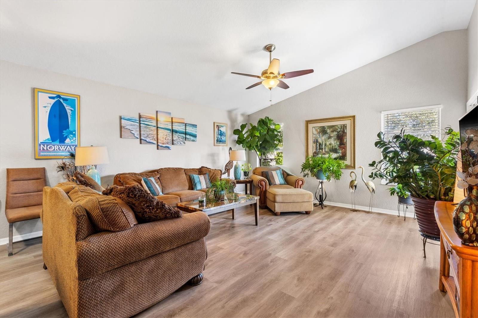 Welcome to this charming and well-maintained 2-bedroom, 2-bath home located in The Villages of Parkwood, where comfort, convenience, and peace of mind come together. Inside, you’ll immediately appreciate the hard-surface flooring throughout the entire home, creating a clean, modern look that’s both stylish and easy to maintain — no carpet anywhere. The functional and inviting layout offers comfortable everyday living with plenty of natural light. Major system updates have already been completed, providing added value and confidence for the next owner. Improvements include a brand-new roof (2025), new water heater (2025), A/C replaced in 2023, and a washer and dryer installed in 2022 — allowing you to move right in without worrying about costly replacements. Step outside to enjoy a fully fenced yard, a standout feature that’s perfect for dog lovers, outdoor relaxation, or creating your own private retreat. Residents of Parkwood enjoy access to a community pool and clubhouse, all included with a low HOA fee of just $80 per month, offering excellent amenities without high monthly costs. Conveniently located near shopping, dining, medical facilities, and recreation, this home delivers an ideal blend of updates, functionality, and lifestyle within The Villages®. Schedule your private showing today and see why this home is such a great fit for enjoying everything The Villages® has to offer.