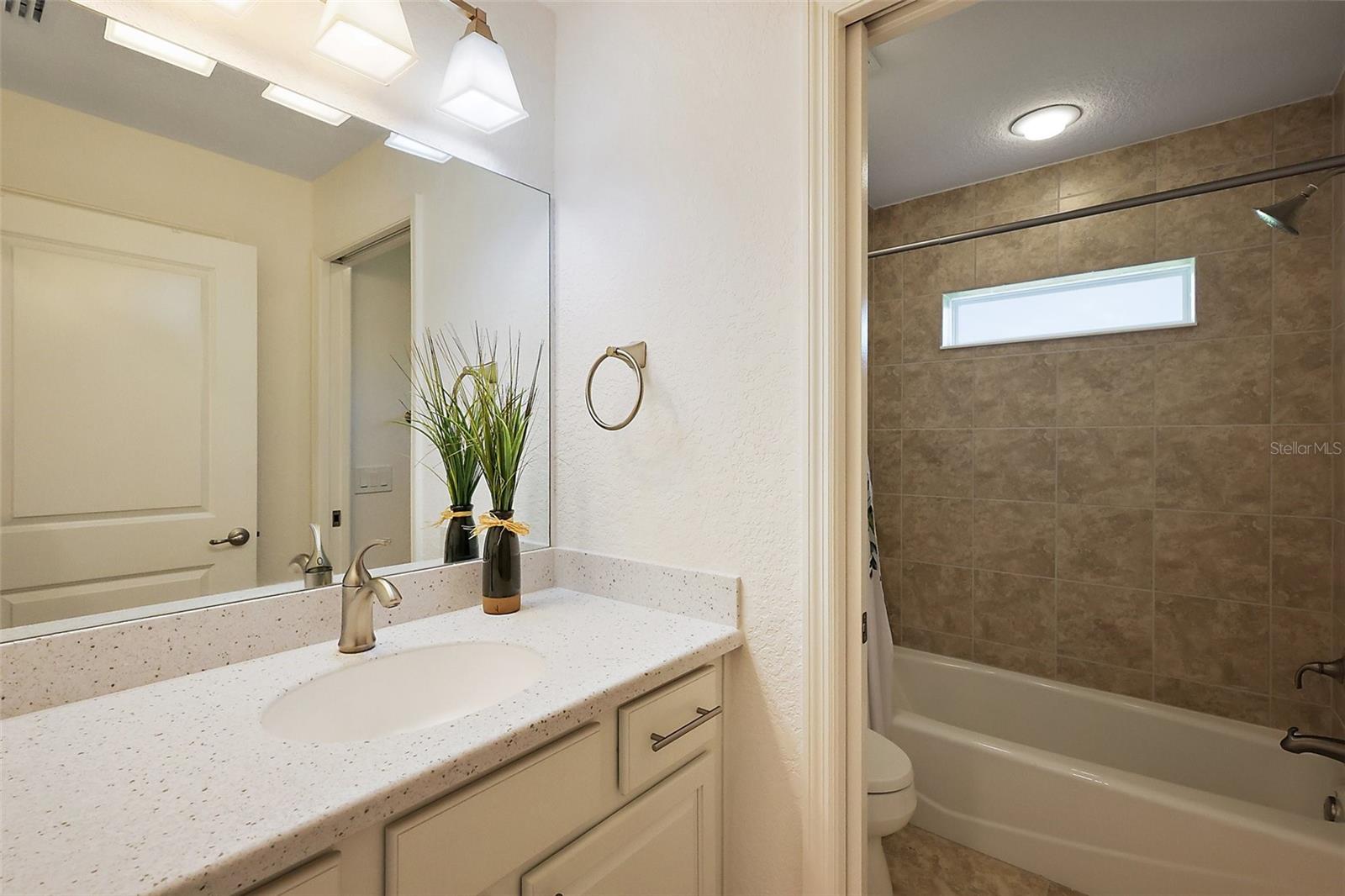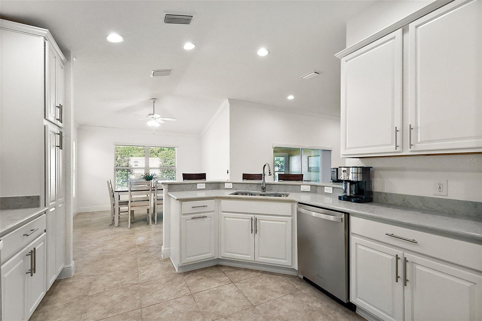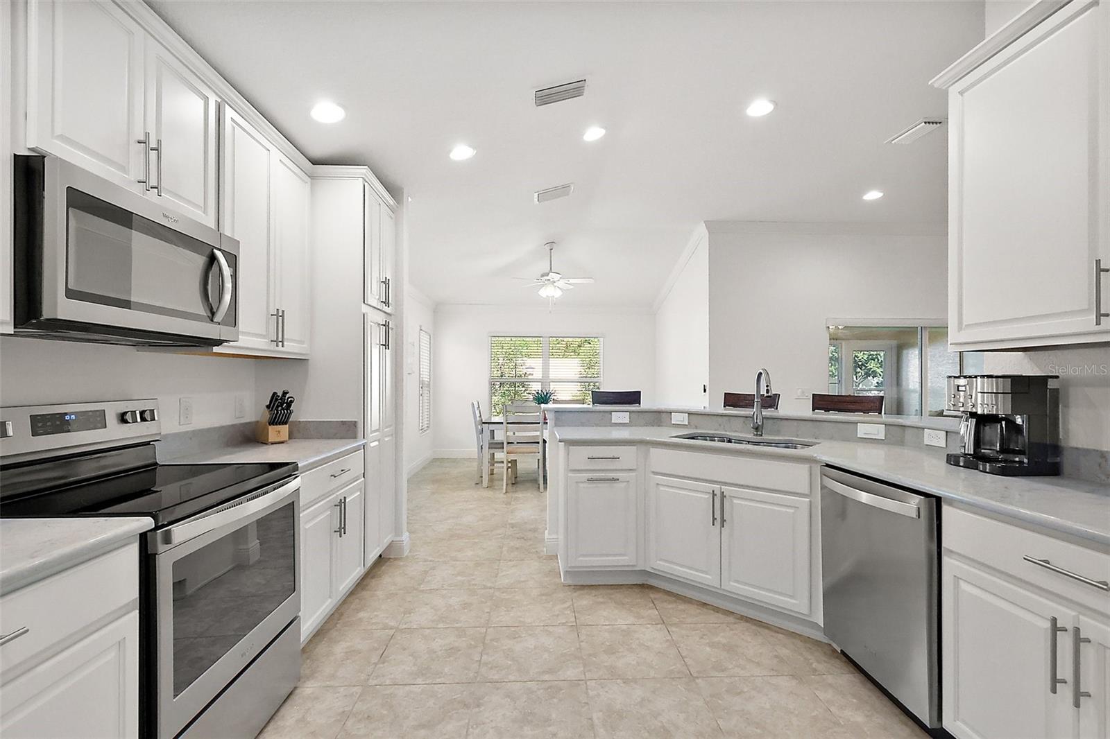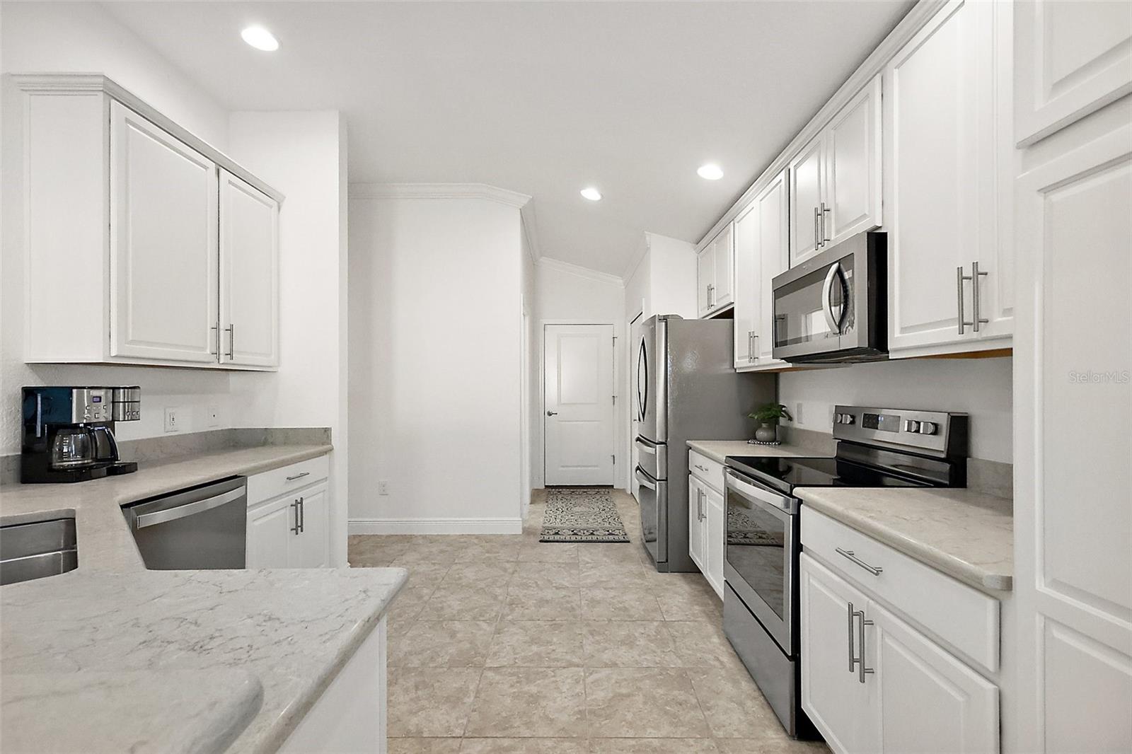 Welcome home! This beautifully updated 3/2 Flamingo, nestled on a quiet cul de sac in the charming Lakeside Landings neighborhood, is the epitome of Florida living. Enjoy COMPLETE REAR PRIVACY, modern upgrades throughout, an interior laundry room, and a spacious Florida room with everything you need for comfort and relaxation in one perfect home. Located in Lakeside Landings with NO CDD OR BOND, this community offers resort-style amenities including a pool, spa, clubhouse, fitness center, pickleball, tennis, playground, and a beach area with access to Lake Miona. As you enter the driveway you are met with an extended PAVER DRIVEWAY, lush Florida landscaping, and a CUSTOM front door with glass insert and sidelight. Upon entering the home you are greeted with an OPEN FLOOR PLAN, tile flooring, high baseboards, and CROWN MOLDING THROUGHOUT. The kitchen boasts barely used STAINLESS STEEL appliances, WHITE CABINETRY, and QUARTZ countertops. Adjacent is a large dining room with plenty of windows and backyard view. The living room has a stunning feature wall with CROWN MOLDING and built-in shelf. The sliding door gives direct access to the high R factor GLASS ENCLOSED Florida room which is the perfect entertaining space complete with an unobstructed view of the PRIVATE BACKYARD and plenty of windows to let the fresh air in. The primary suite is the true oasis with a tray ceiling, crown molding, FIVE windows, his and hers closet, and luxurious en suite bath. The bath houses a ROMAN shower with window and built-in shelving and bench and joint dual vanity. Bedrooms Two and Three both feature crown molding, peaked ceilings, and built-in closets, making them ideal for guests. The guest bathroom offers generous storage and includes a door that separates the sink area from the shower and toilet. The backyard is complete with paver landscaping and mature landscaping, making it YOUR private sanctuary. The INTERIOR laundry room has WHITE CABINETRY, utility sink, and plentiful storage. The garage has attic access, electronic garage door opener, and sliding screen door. Other upgrades include full house gutters and exterior automatic lighting. The HOA fee covers lawn mowing, trimming, mulch replacement, irrigation system maintenance, and garbage collection. Lakeside Landings is conveniently located off of CR 472 (Rainey Trail) between 301 and Buena Vista Blvd in The Villages. Community amenities include a resort-style pool (one of the largest in the area) and spa, clubhouse, exercise facilities, pickleball, tennis, playground, beach area with access to Lake Miona and more! Lakeside Landings residents will also enjoy close proximity to THE VILLAGES CHARTER SCHOOLS, shopping, restaurants, banks, and The Villages community, as well as Lake Sumter Landing Market Square in The Villages, which offers a variety of dining options, movie theaters, and nightly entertainment 365 days a year. Walmart, Fresh Market, and Publix are only minutes away on CR 466. WATCH OUR WALKTHROUGH VIDEO OF THIS BEAUTIFUL HOME and CALL TODAY to schedule your Private Showing or Virtual Tour!