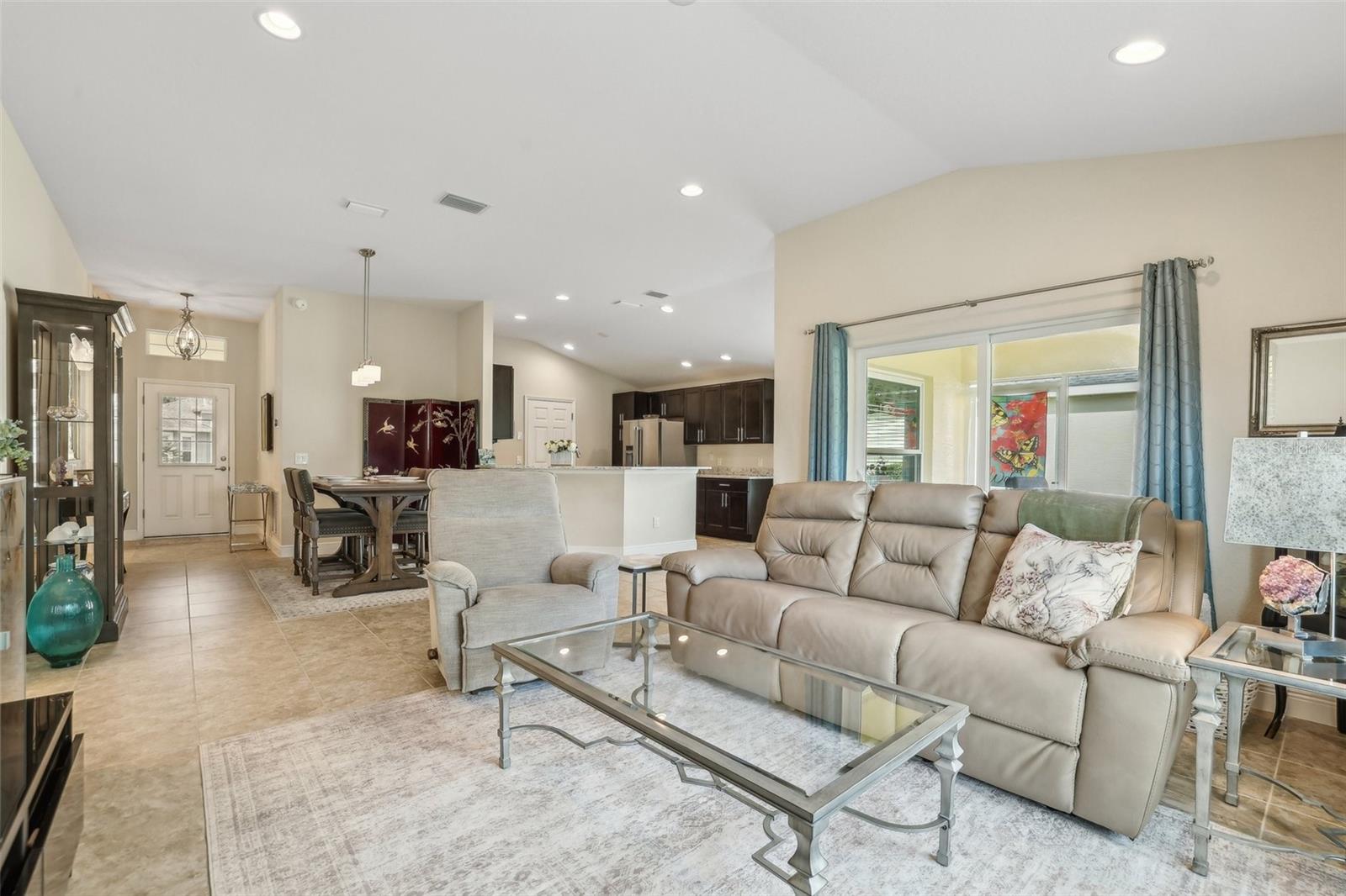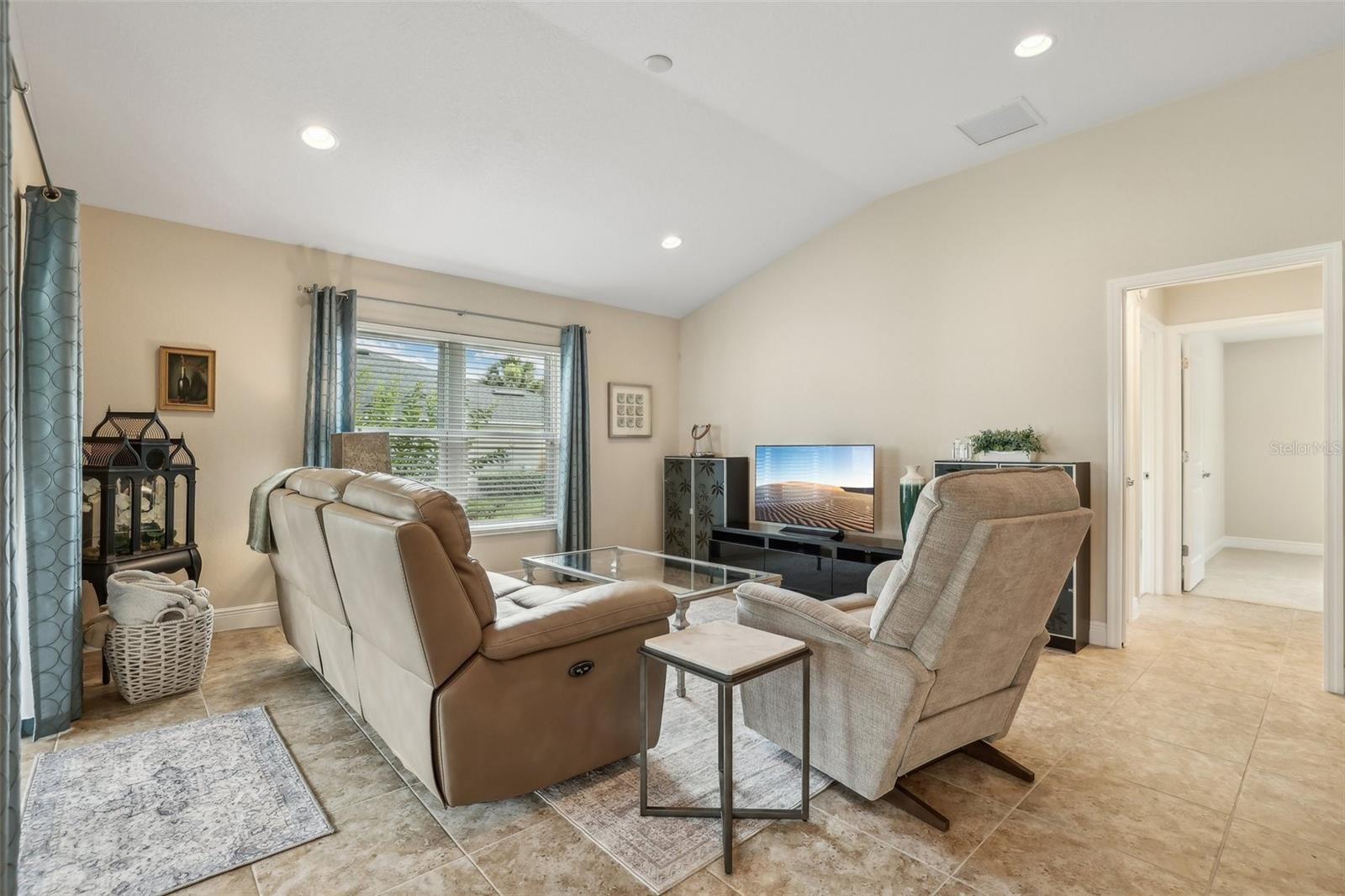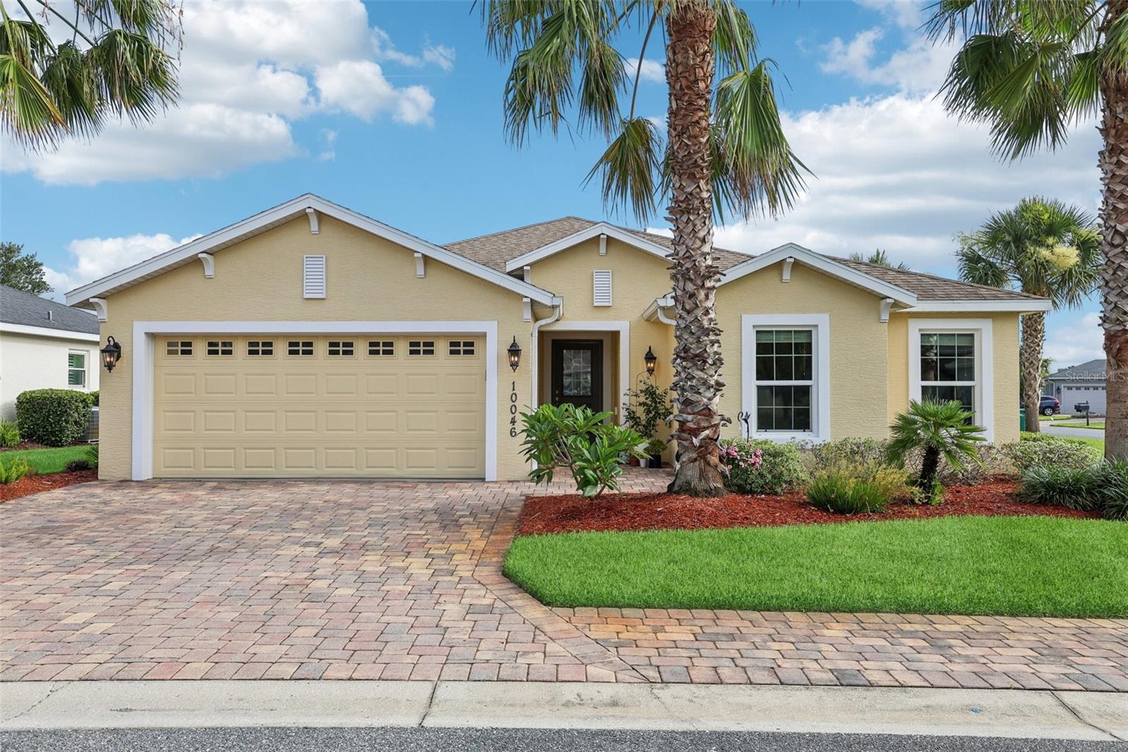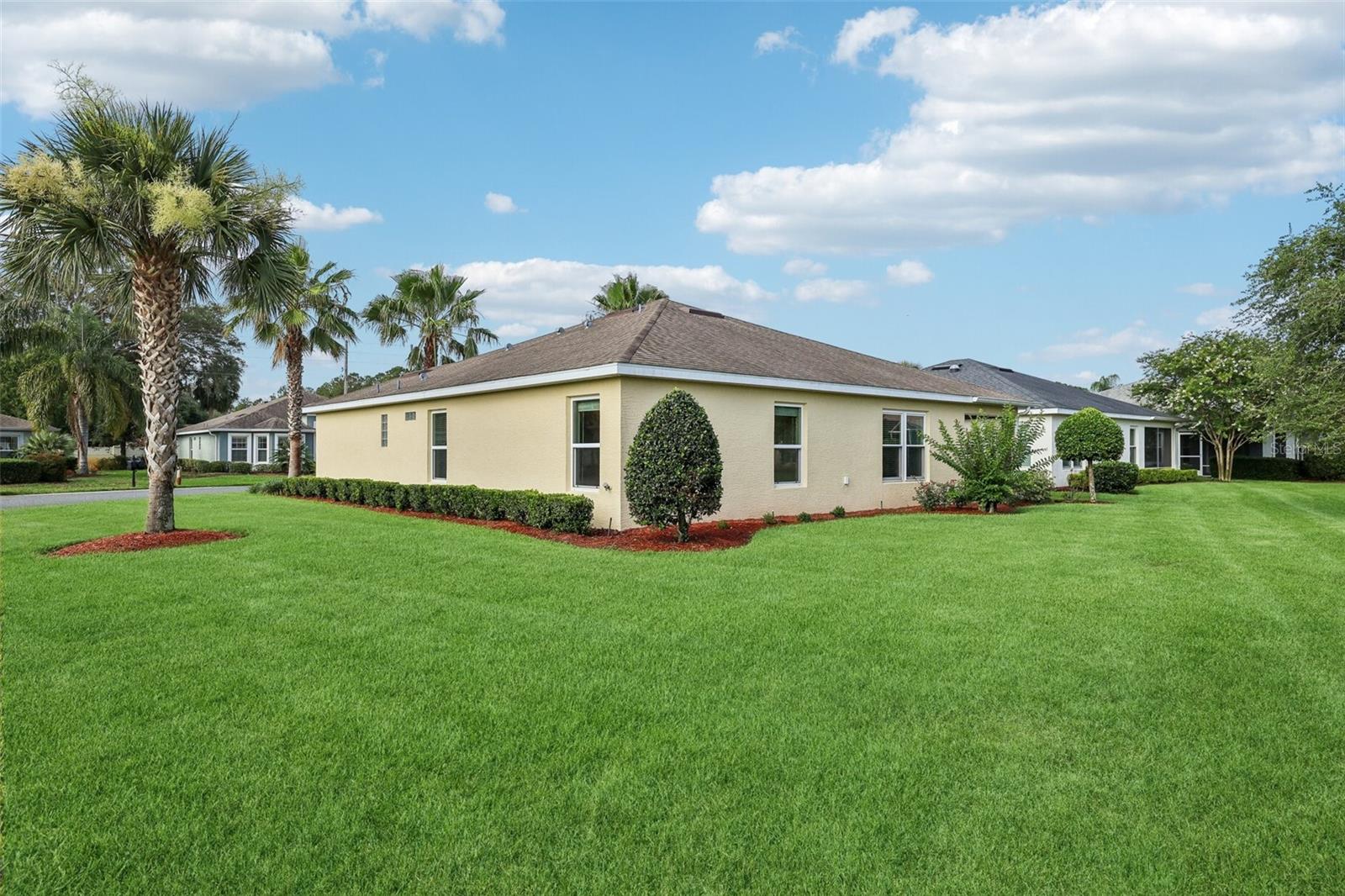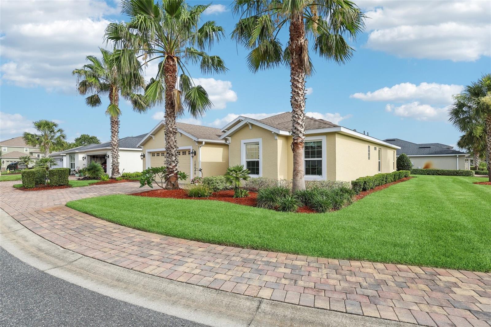 Immaculate 3BR Home in Lakeside Landings with a Home-Warranty Included! WELCOME HOME! This beautifully LANDSCAPED 3-bedroom, 2-bath Osprey model sits on a LARGE, CORNER LOT (room for a pool!) in one of the area's most sought-after GATED communities. Built in 2016, this home offers 1,660 sq ft of thoughtfully designed space with an OPEN-CONCEPT LAYOUT and SPLIT BEDROOM FLOOR-PLAN. The primary suite features dual closets (including a walk-in), a spacious en-suite bath with dual sinks, private water closet, and a step-in shower with bench seating. The kitchen is beautiful and functional featuring QUARTZ COUNTERTOPS,STAINLESS STEEL MAYTAG APPLIANCES, recessed lighting, and a BREAKFAST BAR that opens to the main living area. A cozy breakfast nook overlooks the yard and fills the home with NATURAL LIGHT. You'll love the CERAMIC TILE floors in the main living areas, NEW CARPET (2025) in the bedrooms, and a POCKET DOOR that separates guest rooms for added privacy. Other notable features are the 5 1/4" baseboards and VAULTED CEILINGS. Outside, enjoy the screened-in lanai, perfect for relaxing Florida evenings. Additional highlights include: ~ Brick-paver driveway ~ 2023 washer and dryer ~ HVAC maintenance contract (transferable) ~ 1-year home warranty included This is the lifestyle you've been waiting for—low-maintenance, secure, and just minutes from The Villages and area attractions. Schedule your private showing today!