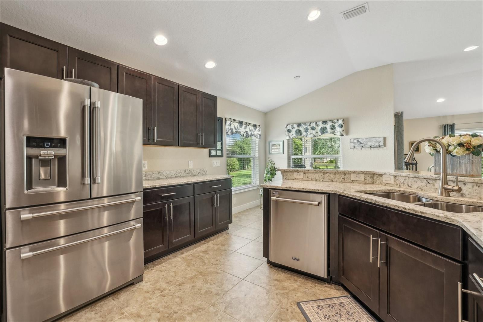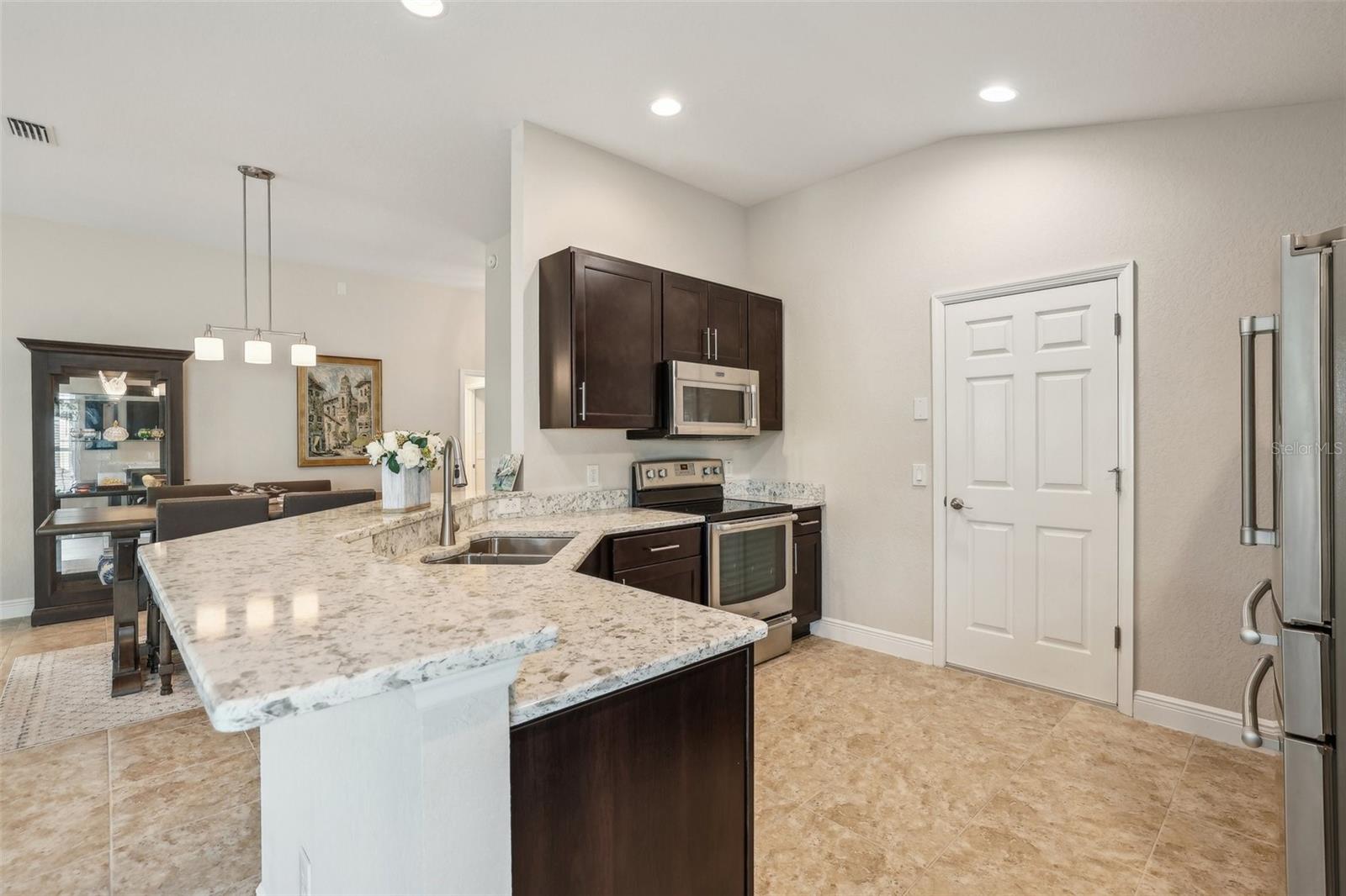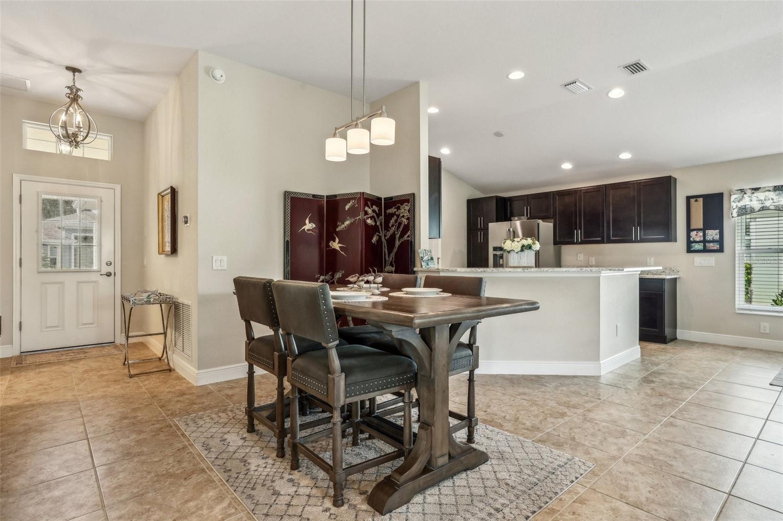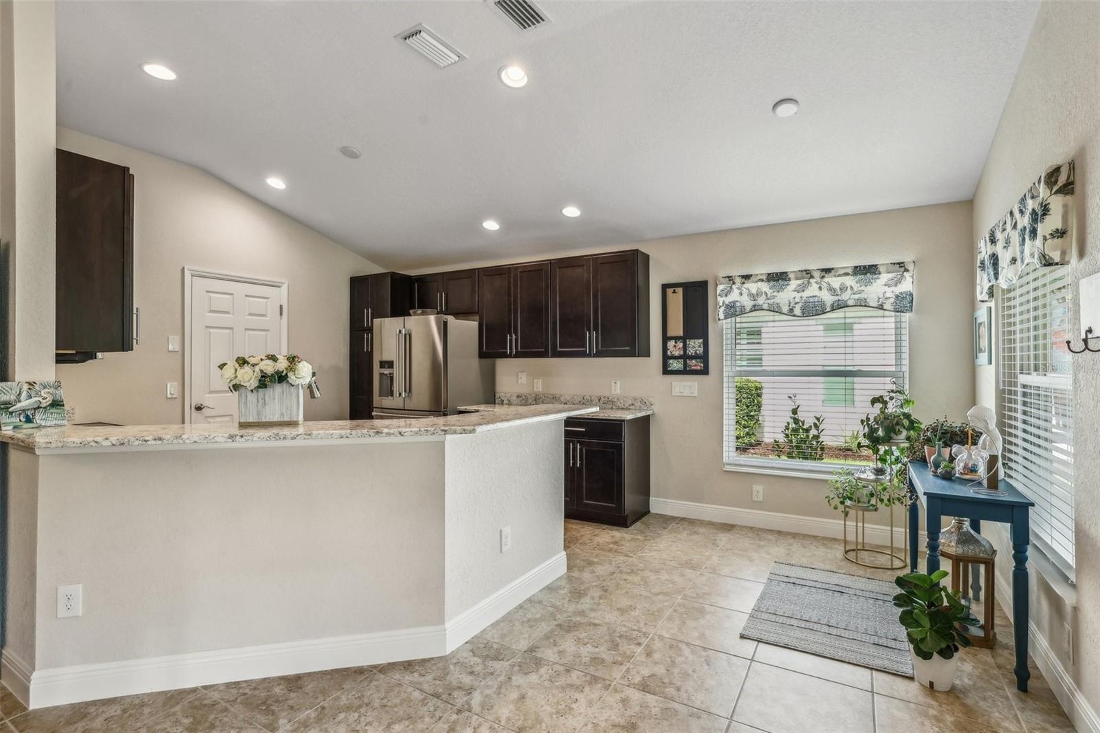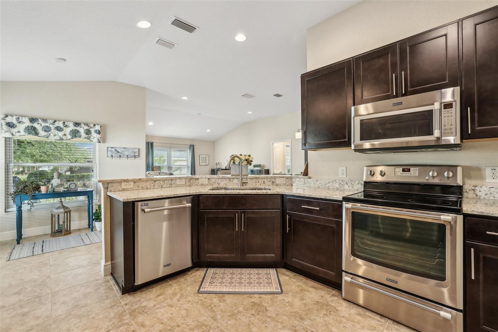 Immaculate 3BR Home in Lakeside Landings with a Home-Warranty Included! WELCOME HOME! This beautifully LANDSCAPED 3-bedroom, 2-bath Osprey model sits on a LARGE, CORNER LOT (room for a pool!) in one of the area's most sought-after GATED communities. Built in 2016, this home offers 1,660 sq ft of thoughtfully designed space with an OPEN-CONCEPT LAYOUT and SPLIT BEDROOM FLOOR-PLAN. The primary suite features dual closets (including a walk-in), a spacious en-suite bath with dual sinks, private water closet, and a step-in shower with bench seating. The kitchen is beautiful and functional featuring QUARTZ COUNTERTOPS,STAINLESS STEEL MAYTAG APPLIANCES, recessed lighting, and a BREAKFAST BAR that opens to the main living area. A cozy breakfast nook overlooks the yard and fills the home with NATURAL LIGHT. You'll love the CERAMIC TILE floors in the main living areas, NEW CARPET (2025) in the bedrooms, and a POCKET DOOR that separates guest rooms for added privacy. Other notable features are the 5 1/4" baseboards and VAULTED CEILINGS. Outside, enjoy the screened-in lanai, perfect for relaxing Florida evenings. Additional highlights include: ~ Brick-paver driveway ~ 2023 washer and dryer ~ HVAC maintenance contract (transferable) ~ 1-year home warranty included This is the lifestyle you've been waiting for—low-maintenance, secure, and just minutes from The Villages and area attractions. Schedule your private showing today!