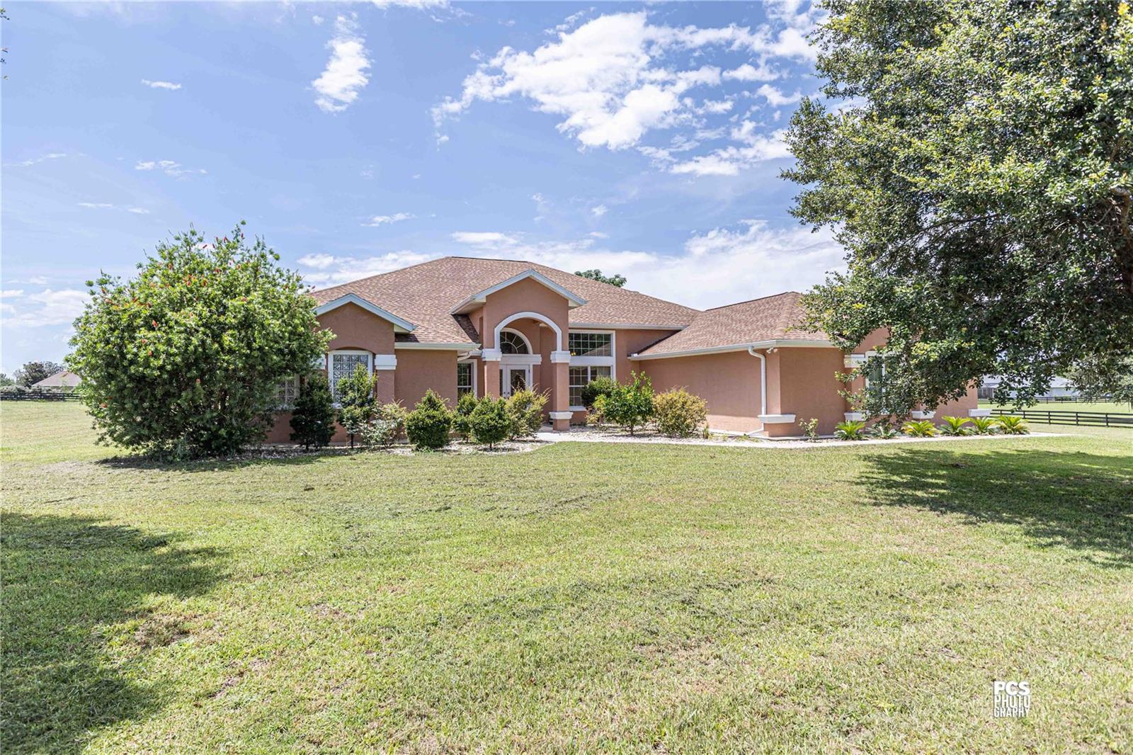 Nestled on a serene 2.55-acre lot within the gated enclave of Sumter Crossing, this 4-bedroom, 2½-bath home seamlessly combines elegance with the tranquility of spacious country living. As you pass through the private gated entrance, you’ll immediately feel the upscale ambiance and peaceful charm of the neighborhood. Inside, the home features an open-concept layout with soaring ceilings, expansive windows, and durable tile flooring, creating a bright and inviting flow between the living, dining, and kitchen areas—ideal for both relaxing and entertaining.The chef’s kitchen is a highlight, offering abundant storage with custom cabinetry, sleek granite countertops, and high-end stainless steel appliances, including a double oven—perfect for preparing meals, whether for intimate gatherings or large family celebrations.The primary ensuite is a true retreat, featuring a sliding glass door that opens directly to the back patio, offering seamless access to outdoor living. The luxurious bathroom is designed with dual vanities, a beautifully tiled shower, and a soothing soaker tub, transforming the space into a spa-like sanctuary. A spacious walk-in closet ensures ample storage for all your wardrobe essentials.Each of the four generously sized bedrooms provides comfort and privacy, while the 2½ baths combine style and practicality. Outside, the fully fenced yard offers both privacy and security, creating a perfect setting for pets, children, or peaceful relaxation. The two-car garage provides plenty of parking, while the additional golf cart garage offers extra space for storage or recreational vehicles.
