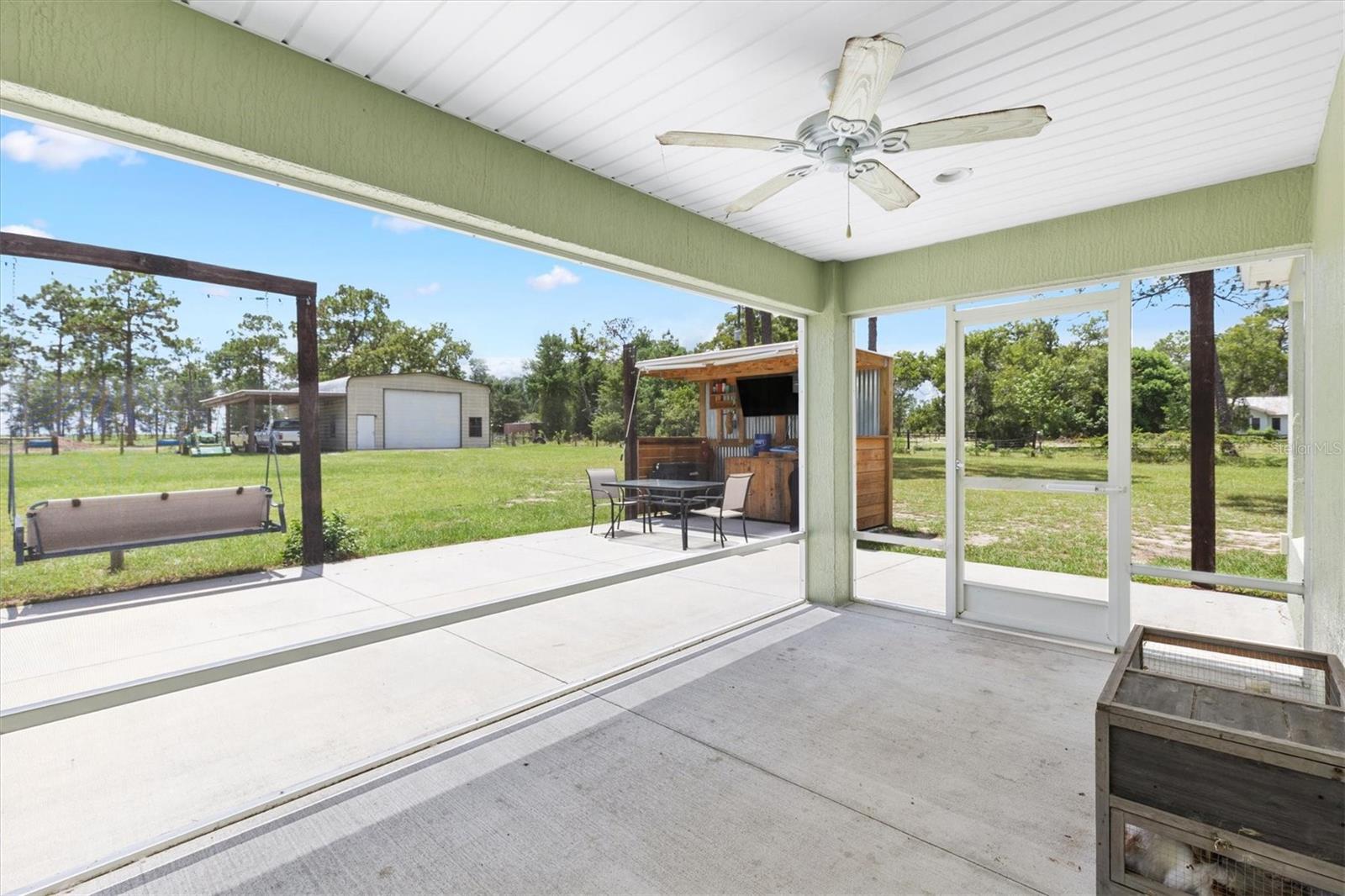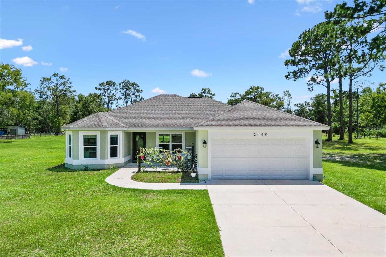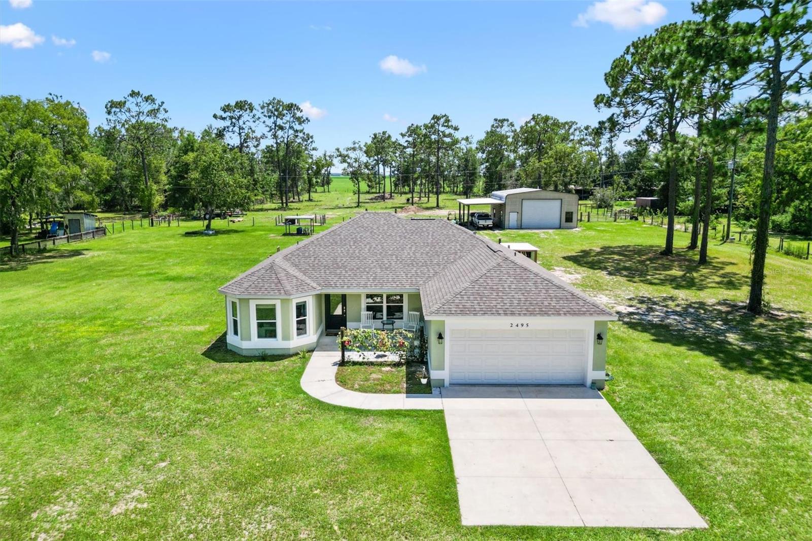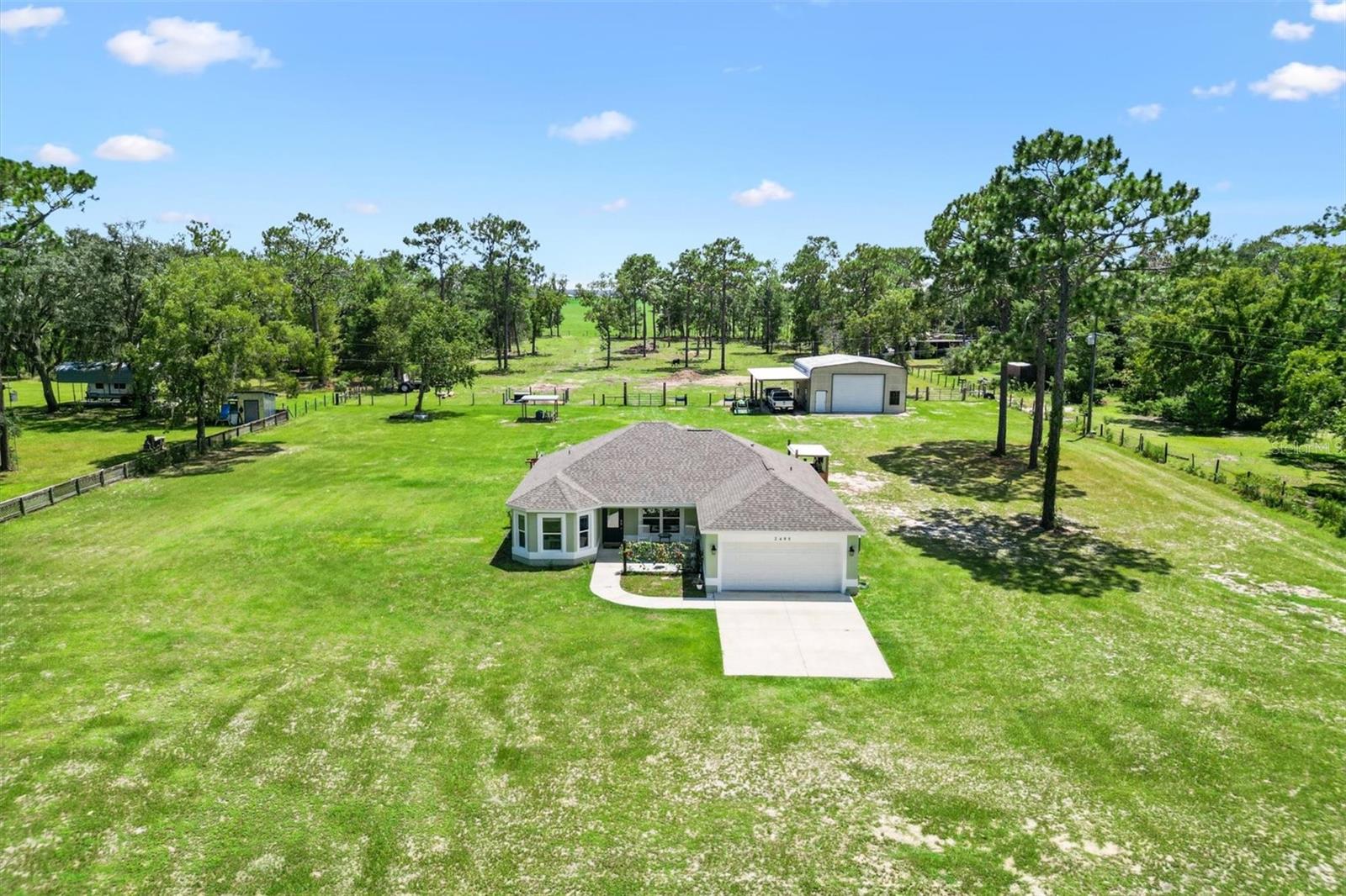 Escape to peace and privacy with this modern farmhouse retreat in Oxford, FL, built in 2022 and nestled on just over 5 acres of land. Tucked away in a quiet setting, this property offers the perfect blend of style, comfort, and functionality with endless possibilities for how you choose to enjoy it. Step inside to find a thoughtfully designed home featuring luxury vinyl plank flooring throughout the main living areas with cozy carpet in the bedrooms. The open-concept kitchen is ideal for entertaining, showcasing elegant quartz countertops in both the kitchen and bathrooms for a sleek, modern finish. The inviting covered front porch welcomes you in, while the rear screened lanai and concrete grilling patio provide the perfect spaces for gathering with family and friends. The land is yours to enjoy—whether you envision farm animals, gardens, or simply open space to roam, you have the freedom to create your own lifestyle. A 40'x30' barn on the property expands the opportunities even further, complete with a full bathroom for convenience. The barn can serve as a workshop, storage space, or a place to house your outdoor toys like boats and ATVs. An attached carport provides covered parking for one vehicle. For added peace of mind, the property is gated, offering both privacy and security. This is more than just a home—it’s a lifestyle. A rare opportunity to own a modern farmhouse on acreage in a sought-after Oxford location, just minutes from The Villages and all the surrounding conveniences. Schedule your private showing today and make this opportunity yours!