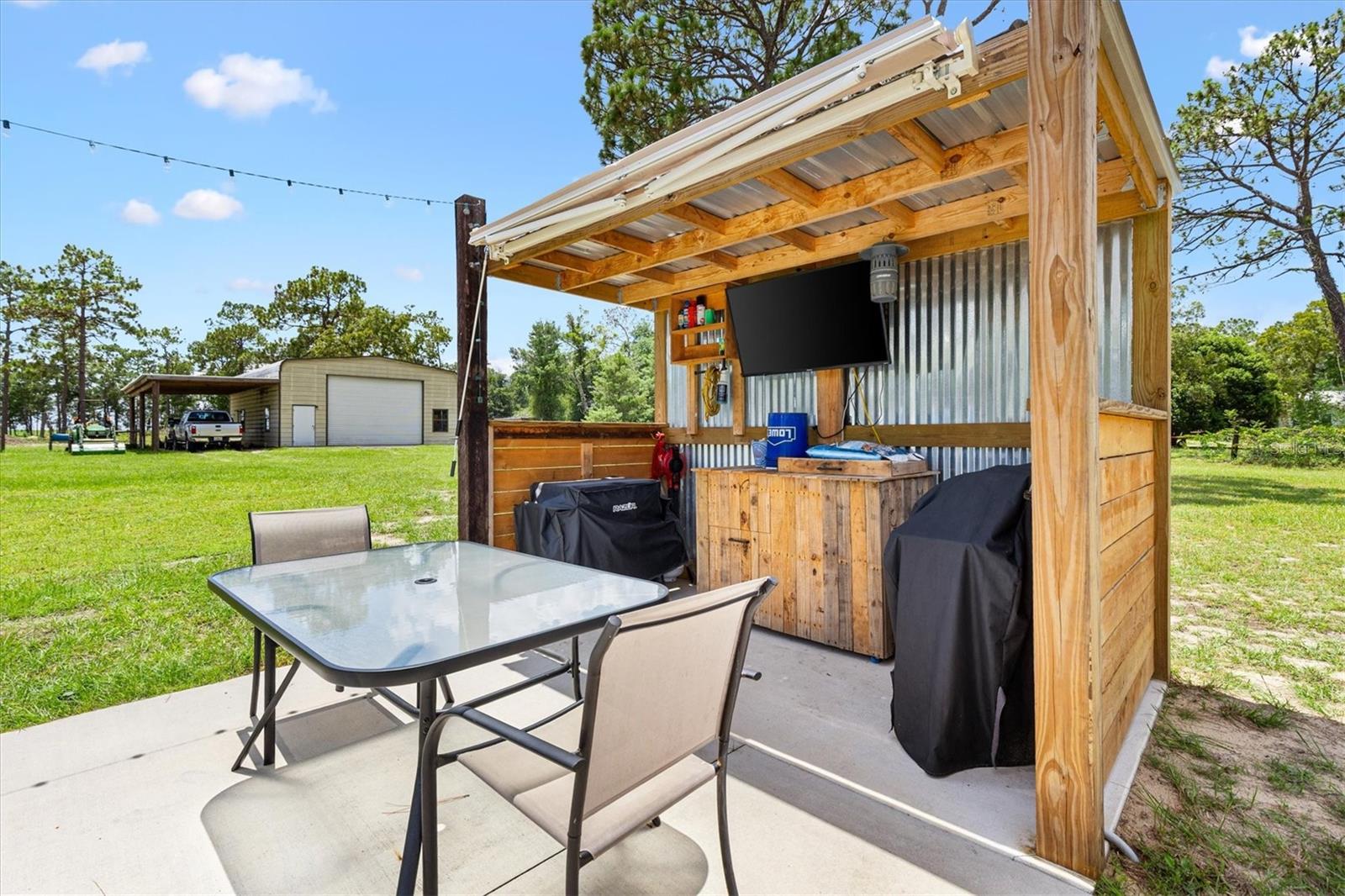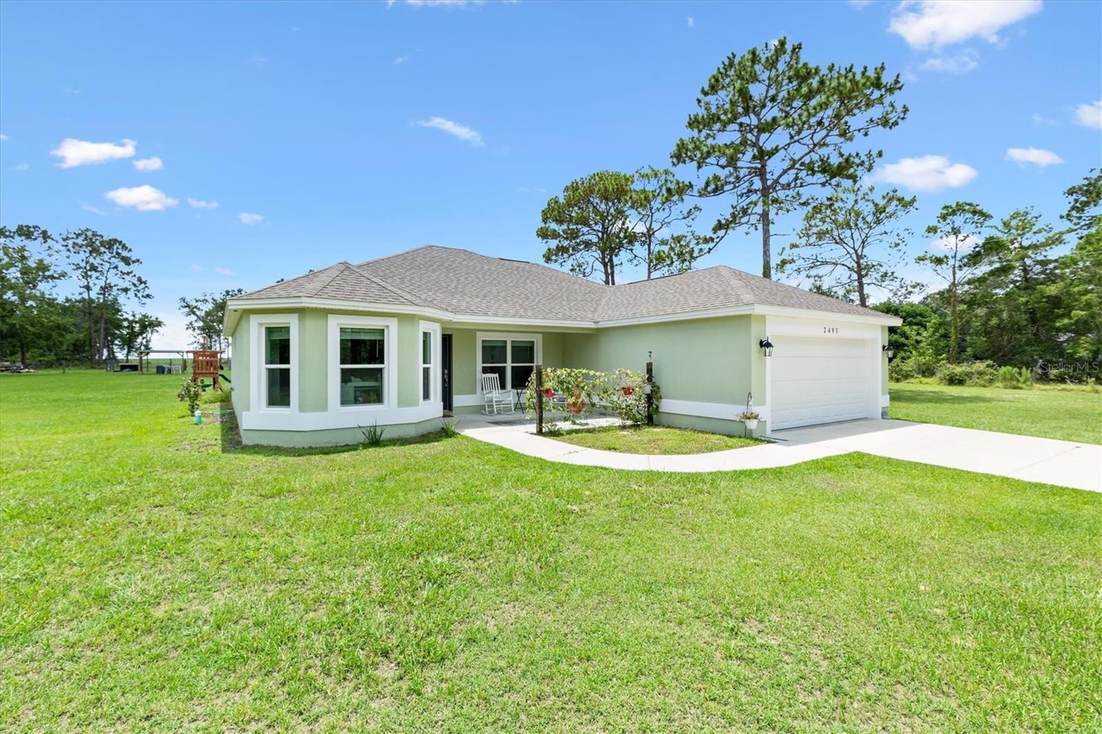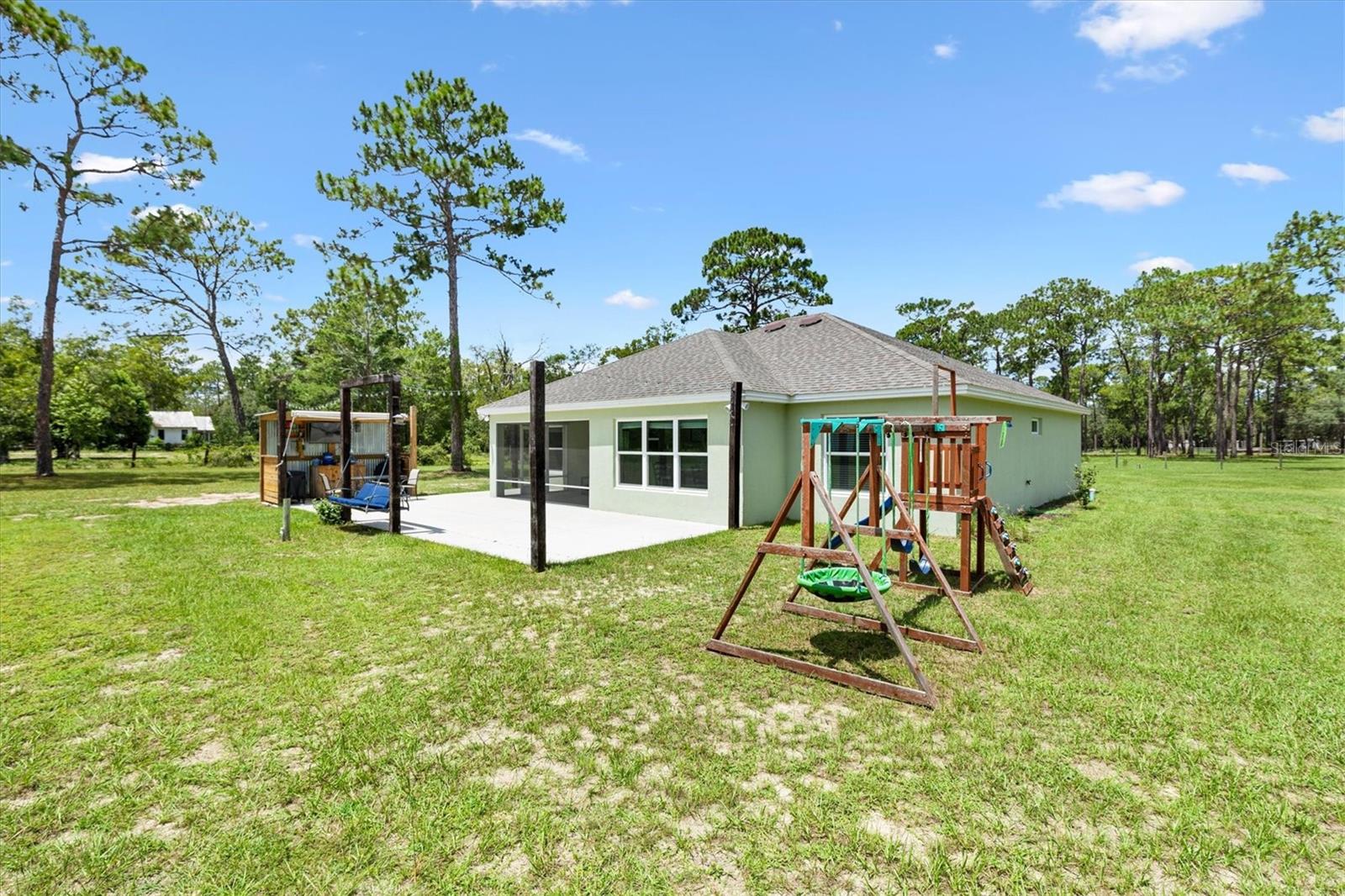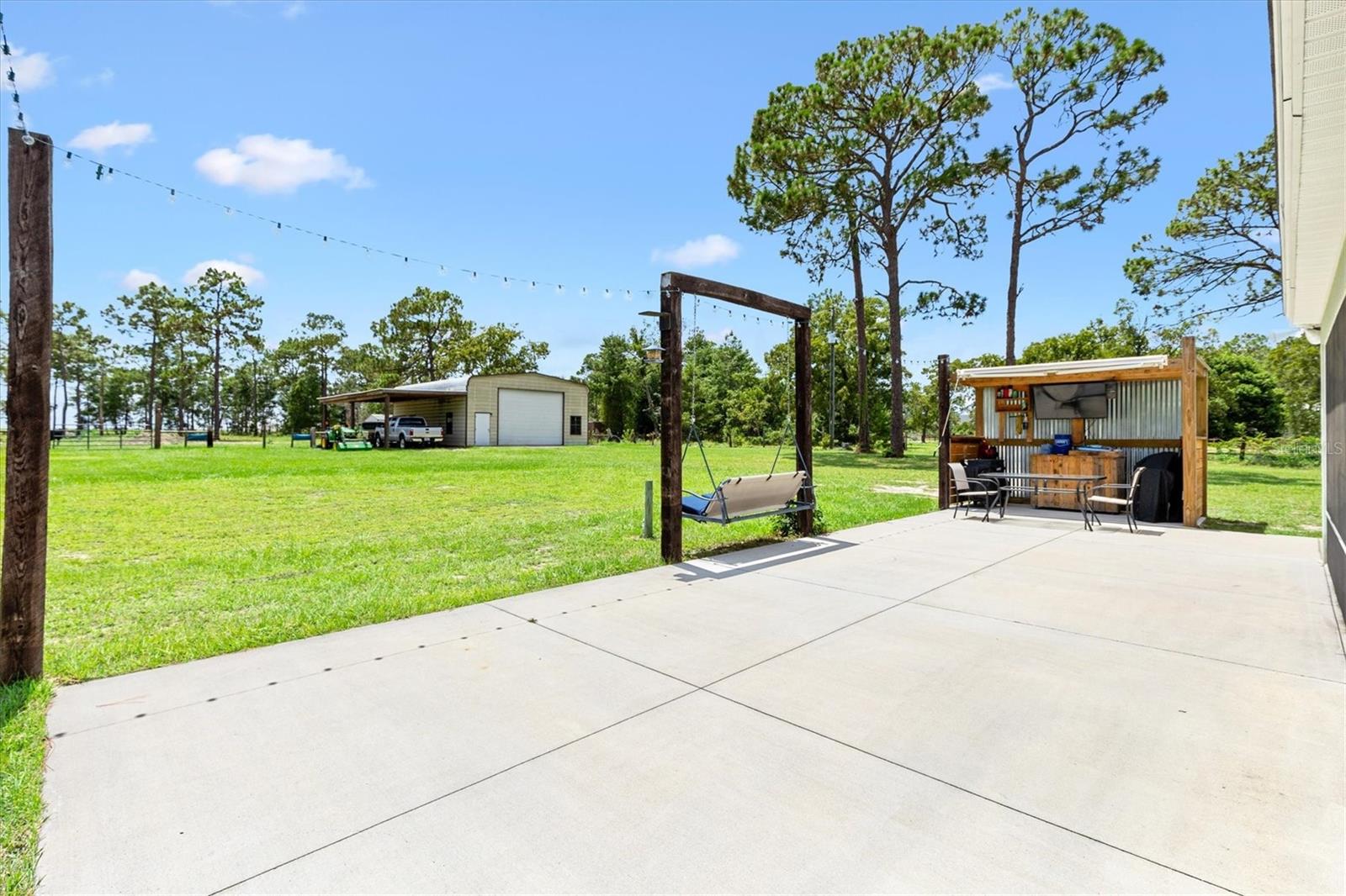 Escape to peace and privacy with this modern farmhouse retreat in Oxford, FL, built in 2022 and nestled on just over 5 acres of land. Tucked away in a quiet setting, this property offers the perfect blend of style, comfort, and functionality with endless possibilities for how you choose to enjoy it. Step inside to find a thoughtfully designed home featuring luxury vinyl plank flooring throughout the main living areas with cozy carpet in the bedrooms. The open-concept kitchen is ideal for entertaining, showcasing elegant quartz countertops in both the kitchen and bathrooms for a sleek, modern finish. The inviting covered front porch welcomes you in, while the rear screened lanai and concrete grilling patio provide the perfect spaces for gathering with family and friends. The land is yours to enjoy—whether you envision farm animals, gardens, or simply open space to roam, you have the freedom to create your own lifestyle. A 40'x30' barn on the property expands the opportunities even further, complete with a full bathroom for convenience. The barn can serve as a workshop, storage space, or a place to house your outdoor toys like boats and ATVs. An attached carport provides covered parking for one vehicle. For added peace of mind, the property is gated, offering both privacy and security. This is more than just a home—it’s a lifestyle. A rare opportunity to own a modern farmhouse on acreage in a sought-after Oxford location, just minutes from The Villages and all the surrounding conveniences. Schedule your private showing today and make this opportunity yours!