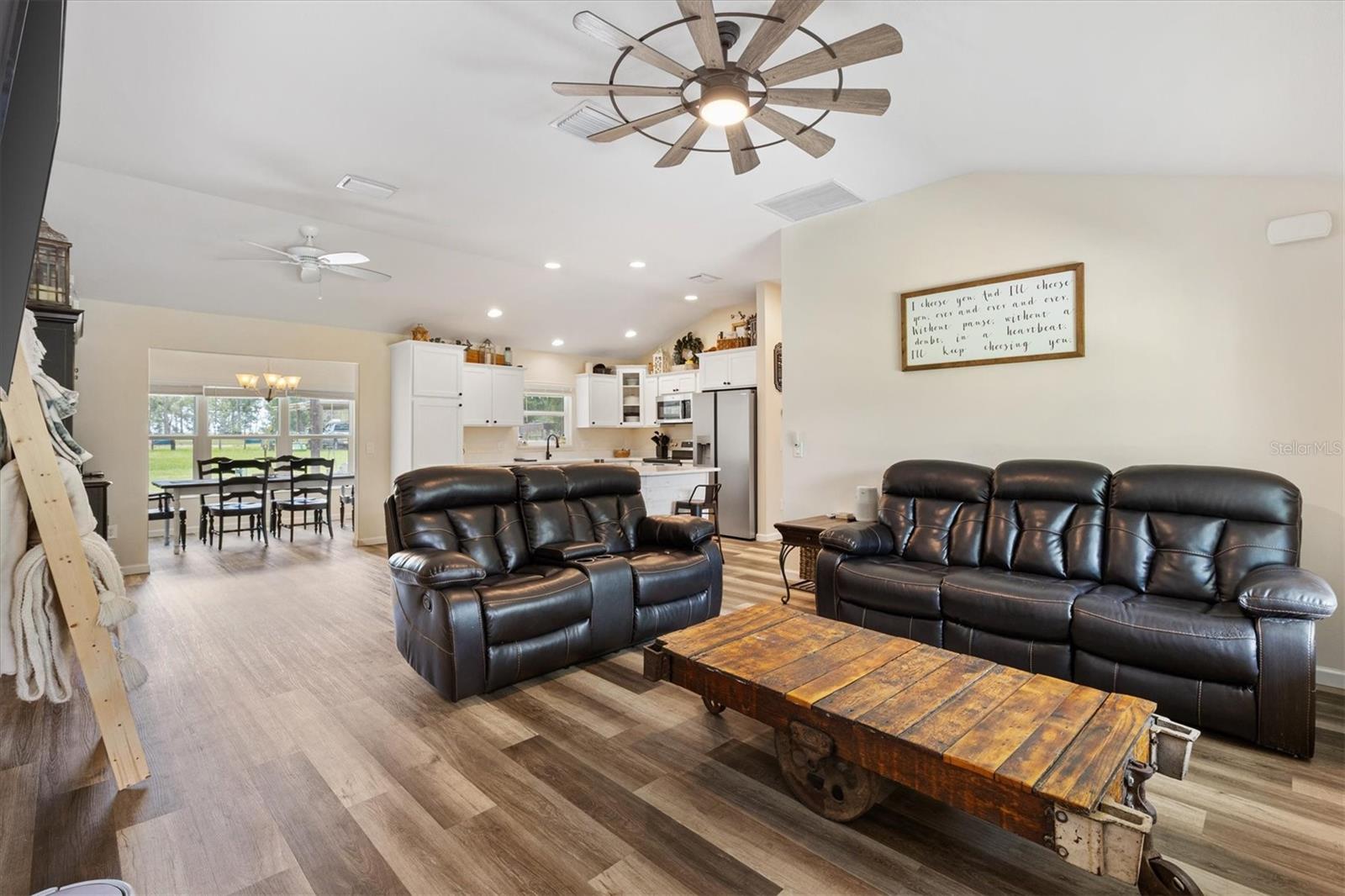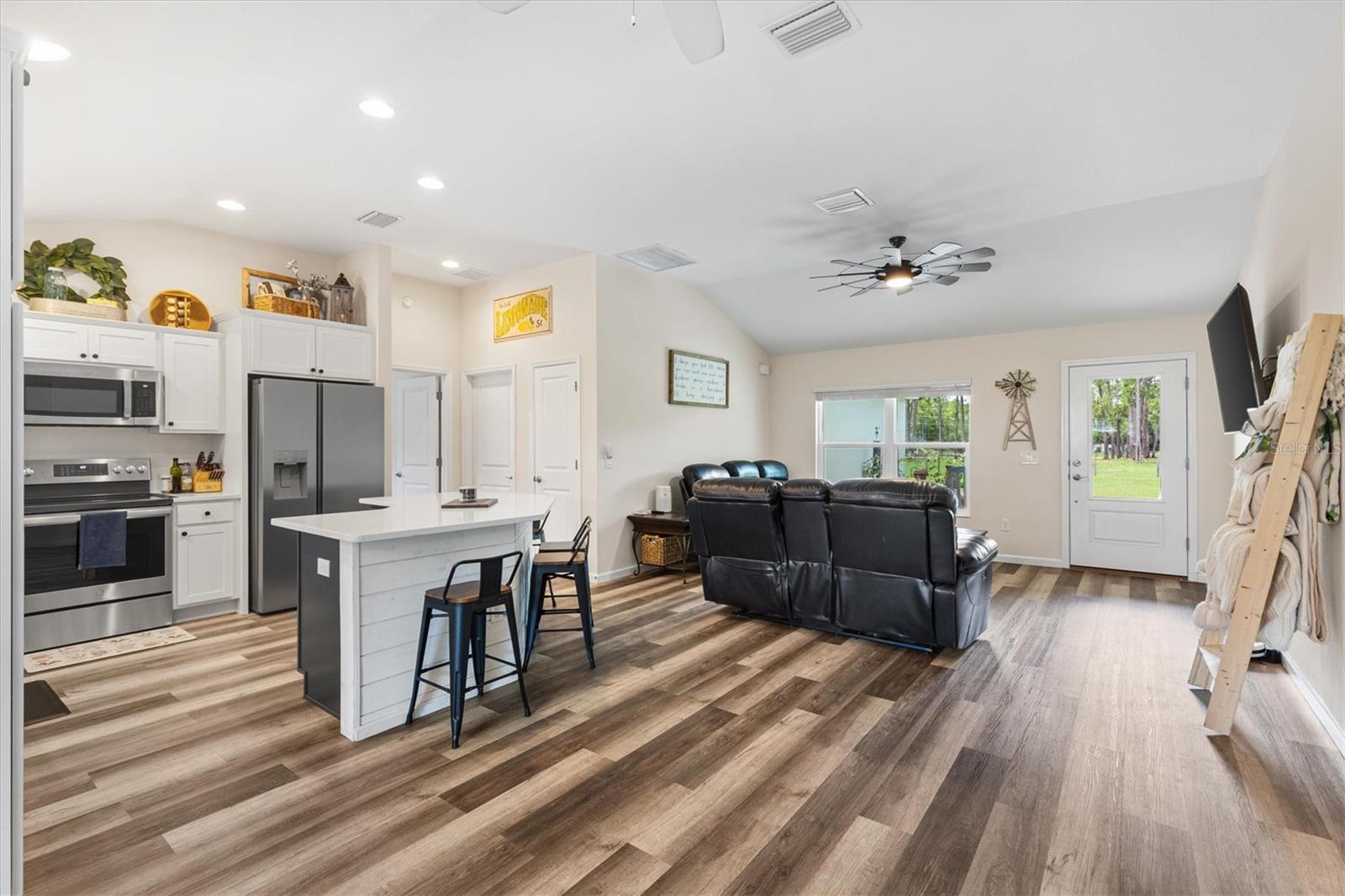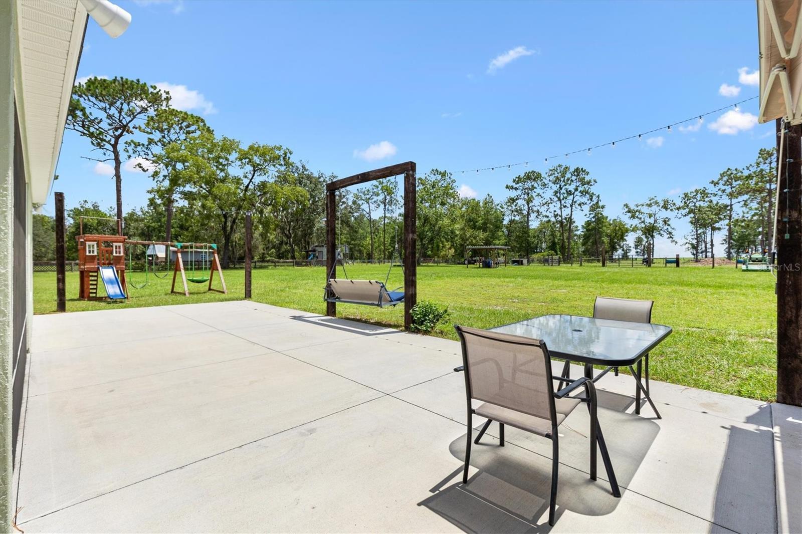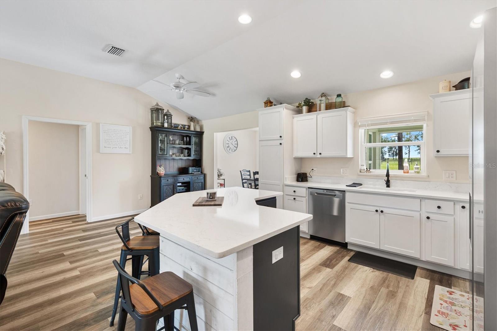 Escape to peace and privacy with this modern farmhouse retreat in Oxford, FL, built in 2022 and nestled on just over 5 acres of land. Tucked away in a quiet setting, this property offers the perfect blend of style, comfort, and functionality with endless possibilities for how you choose to enjoy it. Step inside to find a thoughtfully designed home featuring luxury vinyl plank flooring throughout the main living areas with cozy carpet in the bedrooms. The open-concept kitchen is ideal for entertaining, showcasing elegant quartz countertops in both the kitchen and bathrooms for a sleek, modern finish. The inviting covered front porch welcomes you in, while the rear screened lanai and concrete grilling patio provide the perfect spaces for gathering with family and friends. The land is yours to enjoy—whether you envision farm animals, gardens, or simply open space to roam, you have the freedom to create your own lifestyle. A 40'x30' barn on the property expands the opportunities even further, complete with a full bathroom for convenience. The barn can serve as a workshop, storage space, or a place to house your outdoor toys like boats and ATVs. An attached carport provides covered parking for one vehicle. For added peace of mind, the property is gated, offering both privacy and security. This is more than just a home—it’s a lifestyle. A rare opportunity to own a modern farmhouse on acreage in a sought-after Oxford location, just minutes from The Villages and all the surrounding conveniences. Schedule your private showing today and make this opportunity yours!