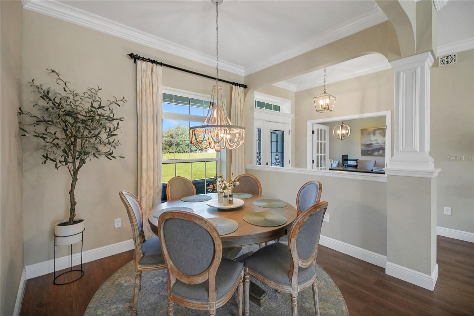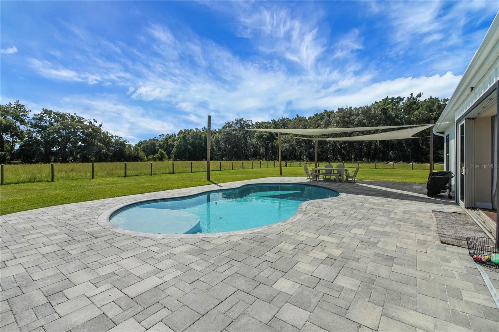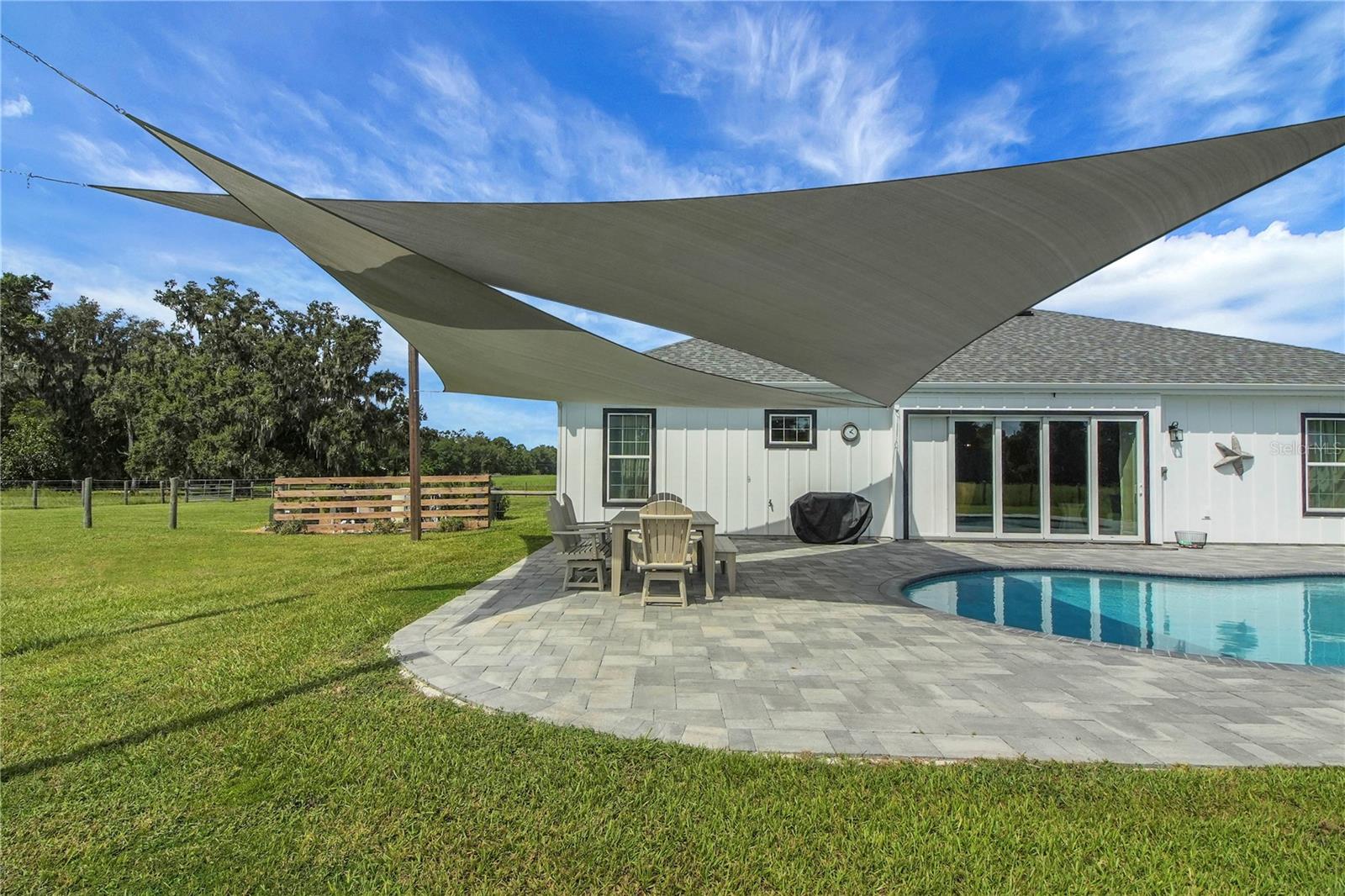 Country living at its finest! Nestled on over 10+ lush and mostly cleared acres in desirable Oxford, this custom 4-bedroom, 3-bath salt water pool home with bonus room is a true showstopper. Built in 2021 with BLOCK construction and Hardieboard siding, the home offers over 2,700 sq. ft. of thoughtfully designed living space. Step inside to find luxury vinyl flooring, crown molding, high ceilings, and 5-inch baseboards throughout the main areas. The open, split floor plan is ideal for entertaining, featuring a chef-inspired kitchen with quartz countertops, stainless steel appliances, white cabinetry, a farmhouse sink, crown accents, and a cabinet pantry. The spacious living room overlooks the sparkling saltwater pool and wide-open views beyond. The primary suite is filled with natural light and includes a spa-like bath with dual sinks, granite countertops, a corner soaking tub, and a beautifully tiled shower. The versatile bonus room includes a closet and private outdoor access—perfect as a game room, guest suite, or additional bedroom. Guest baths are equally impressive with granite counters, white cabinetry, and stylish tile shower & shower/tub combo. Step outside to your own private retreat! Enjoy the resort-style pool with sun shelf, paver decking, and plenty of space to host family and friends. With 10+ acres, there’s more than enough room for pets, toys, and the lifestyle you’ve been dreaming of.