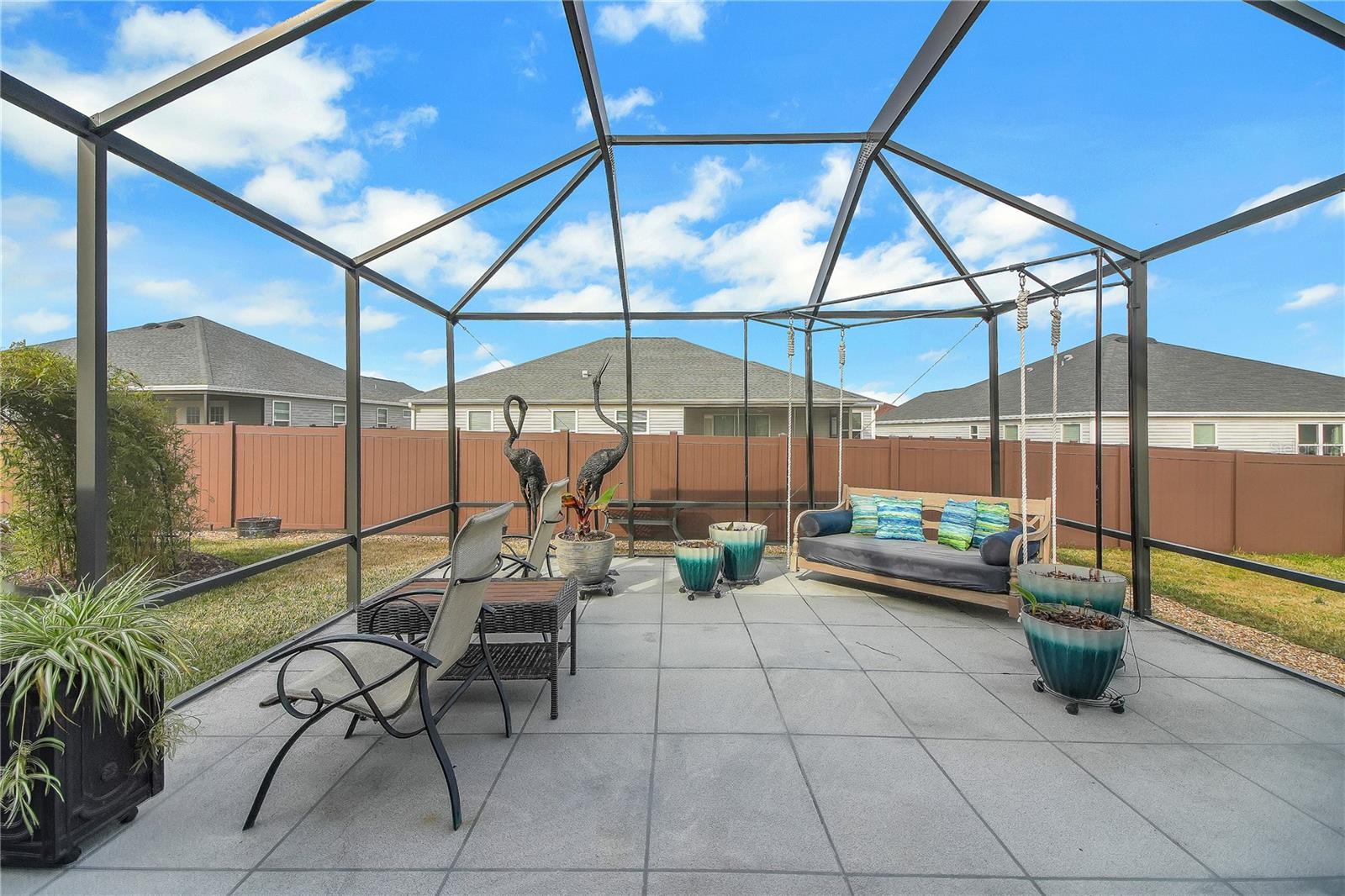 Beautiful 4BR/2BA home boasts exquisite upgrades with 2,000+/- square feet of living space and 2,850+/-square feet of total space with tons of natural light which includes an attached two-car garage, and a screened rear lanai with a large birdcage in the exclusive gated community of Oxford Oaks! From the moment you arrive, notice the lovely landscaped front yard, then walk under the covered porch to enter the front door with a sidelight. The owners have meticulously maintained and upgraded the home with gorgeous granite countertops in the kitchen, inside laundry room and both baths, a Roman walk in shower, oversized baseboards, large pantry, stainless steel appliances, fresh interior paint, No Popcorn ceilings, recessed lighting in the kitchen and fans with light kits in all bedrooms. There’s also a generously spaced open dining room, and a spacious living room with a wall of glass french doors overlooking the screened lanai, birdcage and backyard. Other features include volume ceilings and an indoor laundry room. With four bedrooms, there’s space for everyone! The three guest bedrooms share a full guest bathroom with granite countertop and a shower/tub combo. The primary bedroom is large in size, has an upgraded tray ceiling and showcases a spacious 6 x 13 walk in closet (WOW). The ensuite features beautiful granite countertops, dual sinks, a luxurious Roman walk-in shower, and a private water closet. The exterior of the home is just as impressive, with fresh landscaping, a two-car garage, a relaxing lanai with a screened birdcage and so much more. Last, but certainly not least, you’ll love the proximity to all of Oxford Oaks' exceptional amenities, including a large resort-style pool, pickleball, tennis and basketball courts, a playground, and outdoor fitness equipment. The outdoor pavilion is perfect for BBQs, picnics, or a friendly game of soccer or football. The wide streets and sidewalks encourage walking, biking, and exploring. Conveniently located just minutes from shopping, dining, schools, and more, this home offers the perfect balance of comfort, luxury, and convenience. Oxford Oaks is a non age-restricted, golf cart friendly community built by The Villages®. Lake Sumter Landing (5.4 miles) and Brownwood (7 miles) Squares in The Villages® offer various dining options, movie theaters, and nightly entertainment 365 days a year. Built in 2019, this home offers both convenience and charm and is ideally situated near shopping (Publix, Super Wal-Mart, Costco), dining & retail (Lake-Sumter Landing), The Villages Charter School, and much more.