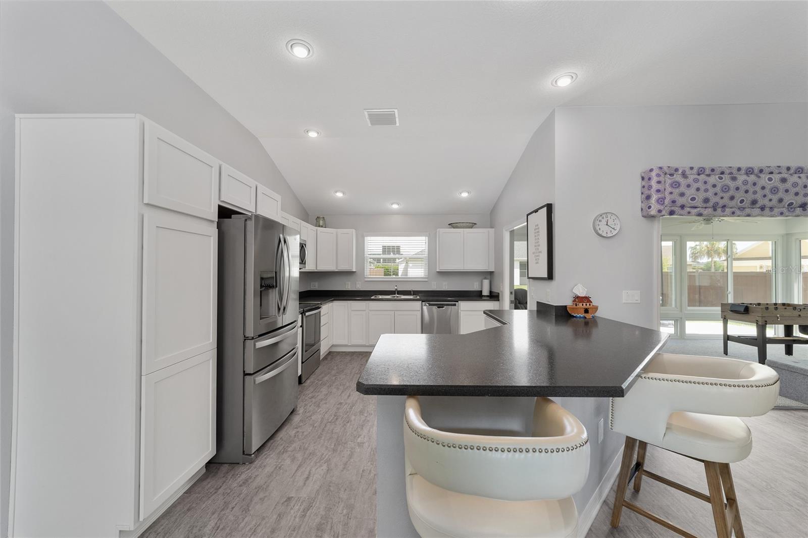 Welcome to this truly charming home in the highly sought-after Oxford Oaks community—a lively, amenity-rich neighborhood designed for families of all ages with activities for everyone. Three bedroom two bath Palm Beach Model. From the moment you arrive, you’ll fall in love with the inviting front porch, complete with a classic white picket fence and beautifully manicured landscaping. It’s the kind of space that instantly feels like home—perfect for morning coffee or unwinding in the evening. Step inside and you’re greeted by a bright, open floor plan filled with natural light and a warm, welcoming feel throughout. The layout flows effortlessly, offering a formal dining space, a spacious living area, and a well-appointed kitchen with door leading out to the Florida Room, featuring white cabinetry, stainless steel appliances, and a convenient breakfast bar—ideal for both everyday living and entertaining. The primary suite is a peaceful retreat, complete with a tray ceiling, updated fan/lighting, a large walk-in closet, and a beautifully finished ensuite bath with dual sinks and a tiled Roman walk-in shower. The additional bedrooms are generously sized and thoughtfully positioned with a shared bath, making it perfect for family or guests. One of the standout features of this home is the Glass Enclosed 20x11 Florida room, bright, airy, and versatile, with sliding windows that let you enjoy the fresh air on beautiful Florida days. Step outside to a spacious backyard with an extended patio to BBQ and plenty of room to add a pool, creating your own private outdoor oasis. Inside laundry including a large pantry. Epoxy garage floor and attic stairs for more storage. Living in Oxford Oaks means enjoying a vibrant, family-friendly community with incredible amenities including a resort-style pool, playground, basketball, pickleball, and tennis courts, plus an outdoor fitness area—something for everyone to enjoy. All of this in a prime location just minutes from shopping, dining, top-rated schools, including the Villages Charter schools and entertainment at Lake Sumter Landing. This home has the charm, space, and lifestyle buyers are looking for—come see it for yourself and fall in love.