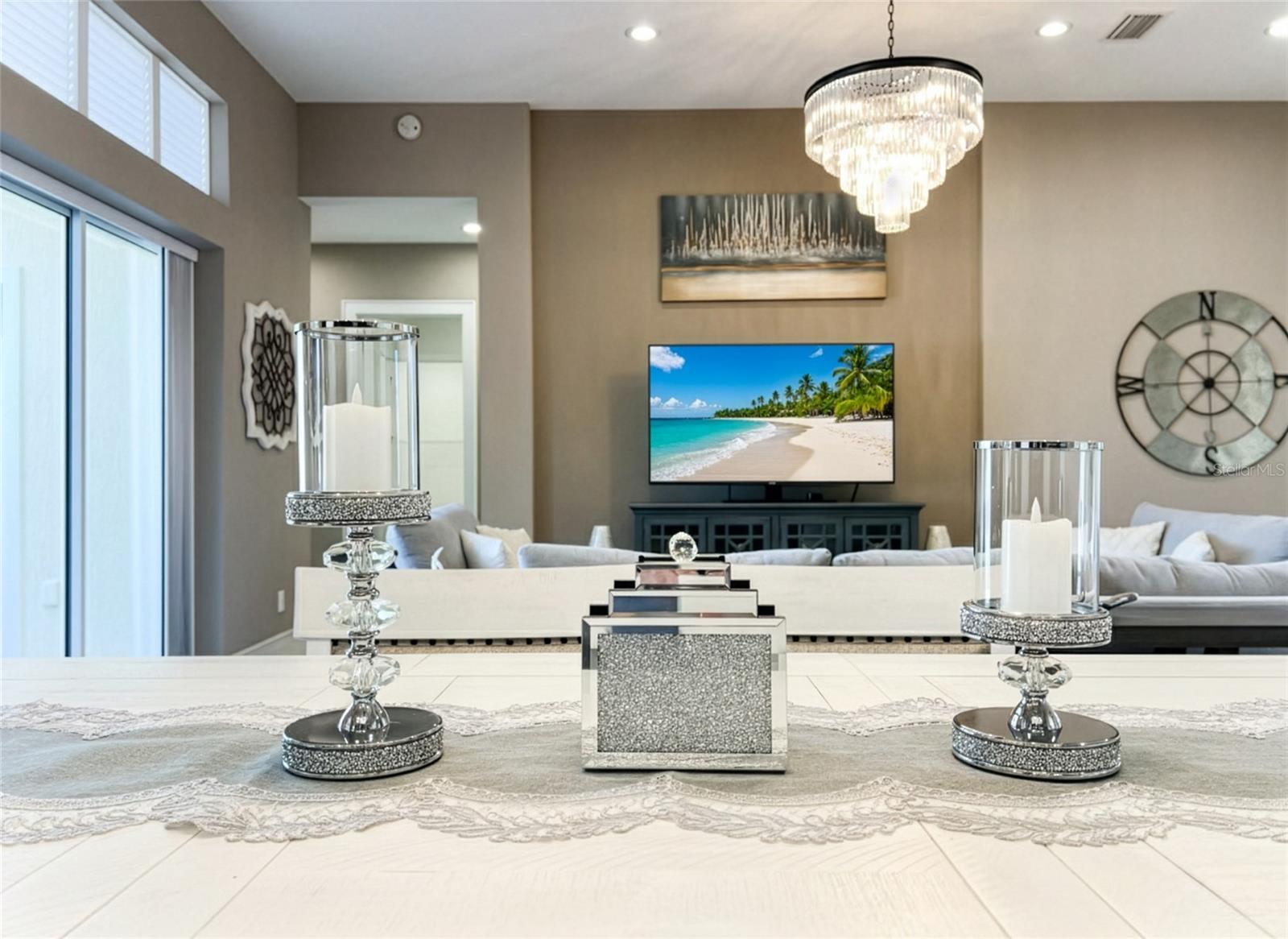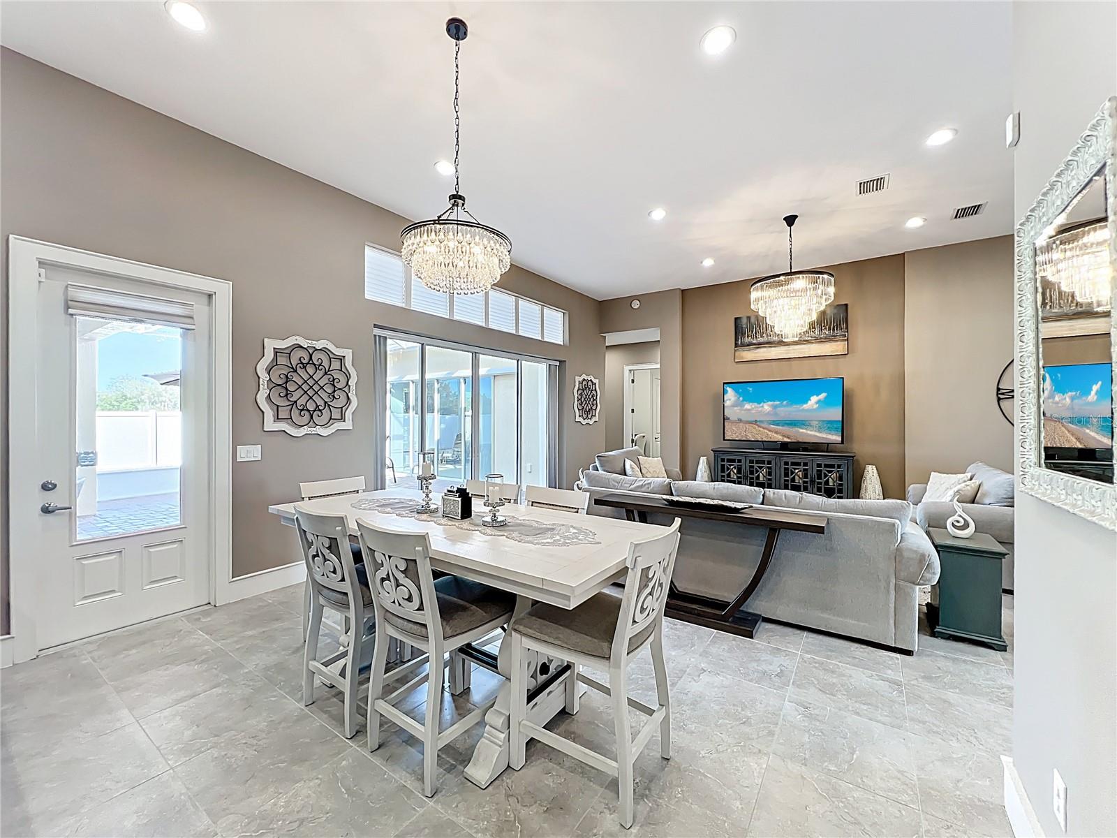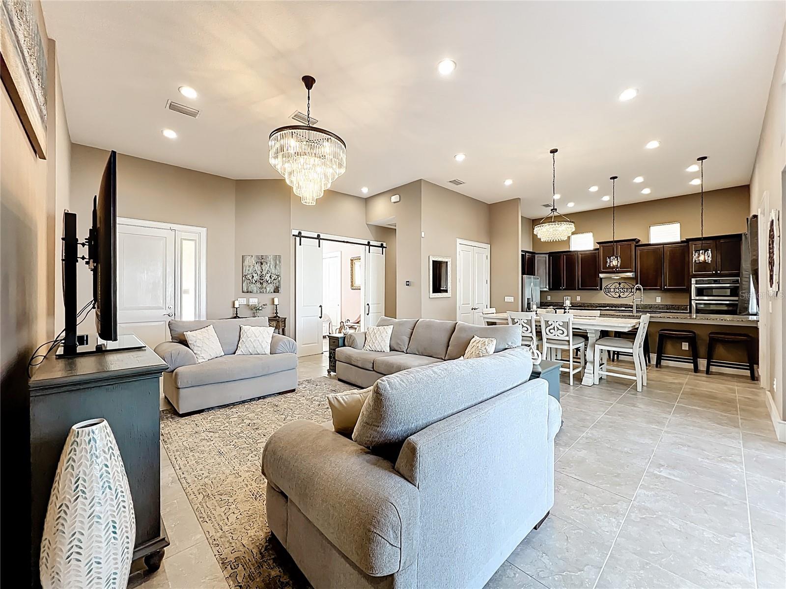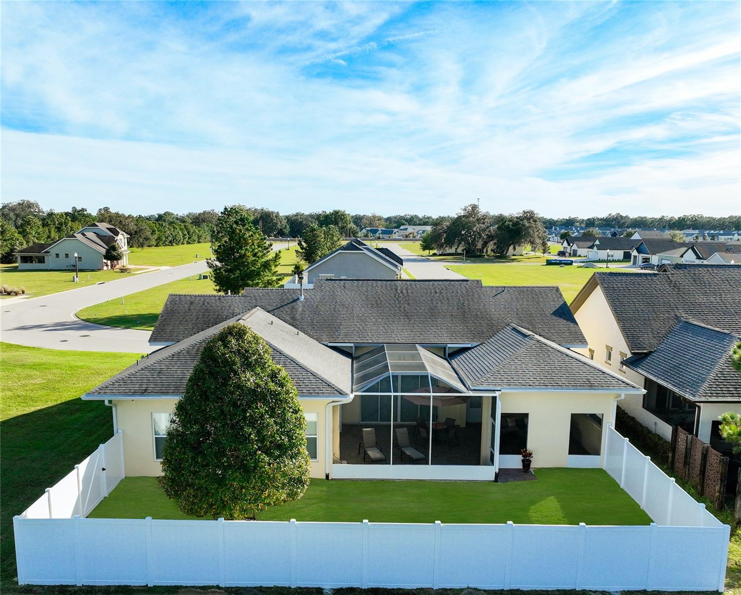 This GORGEOUS, immaculately kept Willow model home in Grand Oaks Manor, Oxford FL, is a showstopper! Fully furnished (option), offering a unique combination of modern elegance, comfort and privacy. Don’t miss out on this rarely available Willow model featuring 3 bedrooms/2 bath/oversized 2 car garage with an open split floor plan and SOARING 12’ ceilings. As you enter the great room you’ll notice the elegant multi-sliding telescoping glass doors with clear-story windows above which seamlessly expands the interior living area out onto the expansive lanai. Just beyond the great room is a Chef’s dream kitchen boasting 42” upper cabinets, beautiful granite countertops with sizeable island, gas range, dishwasher, refrigerator, microwave, double door pantry and kitchen pass-through window with granite counter - a perfect serving station and bar for your fun-filled outdoor gatherings on this very private, spacious outdoor birdcage lanai with privacy screen. Enjoy cozy dinners under the lighted patio table umbrella or take in a late night-movie on the wall-mounted flat screen TV from the comfort of the large sectional sofa, surrounded by the ambiance and warmth of the fire pit, or soak up the rays in the afternoon in your resort-style lounge chairs hidden away from the view of others by the privacy fence that encloses the large backyard. The primary suite offers a tray ceiling, huge walk-in closet and ensuite bathroom. The ensuite includes a glass-framed oversized shower, dual vanities with his and her sinks and a floor to ceiling three-way mirror and a separate room with toilet. Two spaciously appointed guest bedrooms are located on the opposite side of the home from the primary suite as well as a floor to ceiling linen closet in the hall and a private guest bathroom with a shower and tub combination. This home boasts several upgrades - new kitchen pendant lights, dining and living room chandeliers, brand new front load washer and dryer, living room Vertiglide blinds, 6” baseboards, 8’ solid wood interior doors with oversized 4” door casings, barn-style doors, custom interior paint, a massive stand up attic with plywood flooring accessible from the oversized 2-car garage, leaf guard protection seamless gutters, concrete flower bed curbing and white marble rock beds, brand new sprinkler system, and a state of the art builder-installed camera security system with upgraded smart camera night vision technology, guarding the entire home perimeter, lanai and front door, includes intrusion sensors on all doors and windows as well as glass break sensors with intrusion and fire alert monitoring. Whether you travel, are snowbirds or just want the best home protection for your family, this security system provides complete peace of mind. Conveniently located just minutes from The Villages, The Villages Charter School, and a myriad of dining, shopping and cultural events. The incredibly appointed Clubhouse offers event space for parties, weddings and family gatherings as well as a pool, hot tub and fitness center. There’s a dog park for your furry friends and a playground for the little ones as well as walking trails and pickle ball courts.