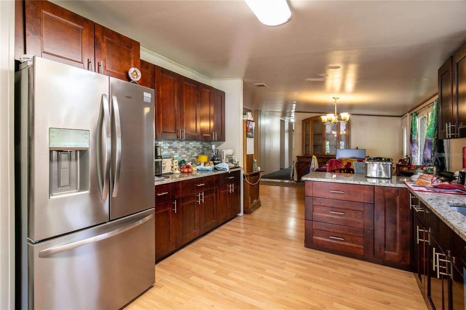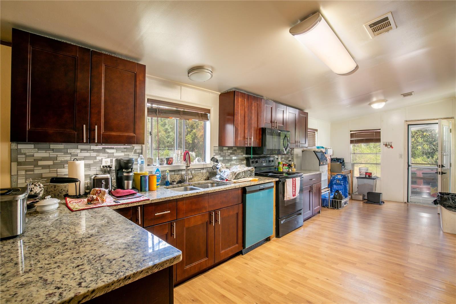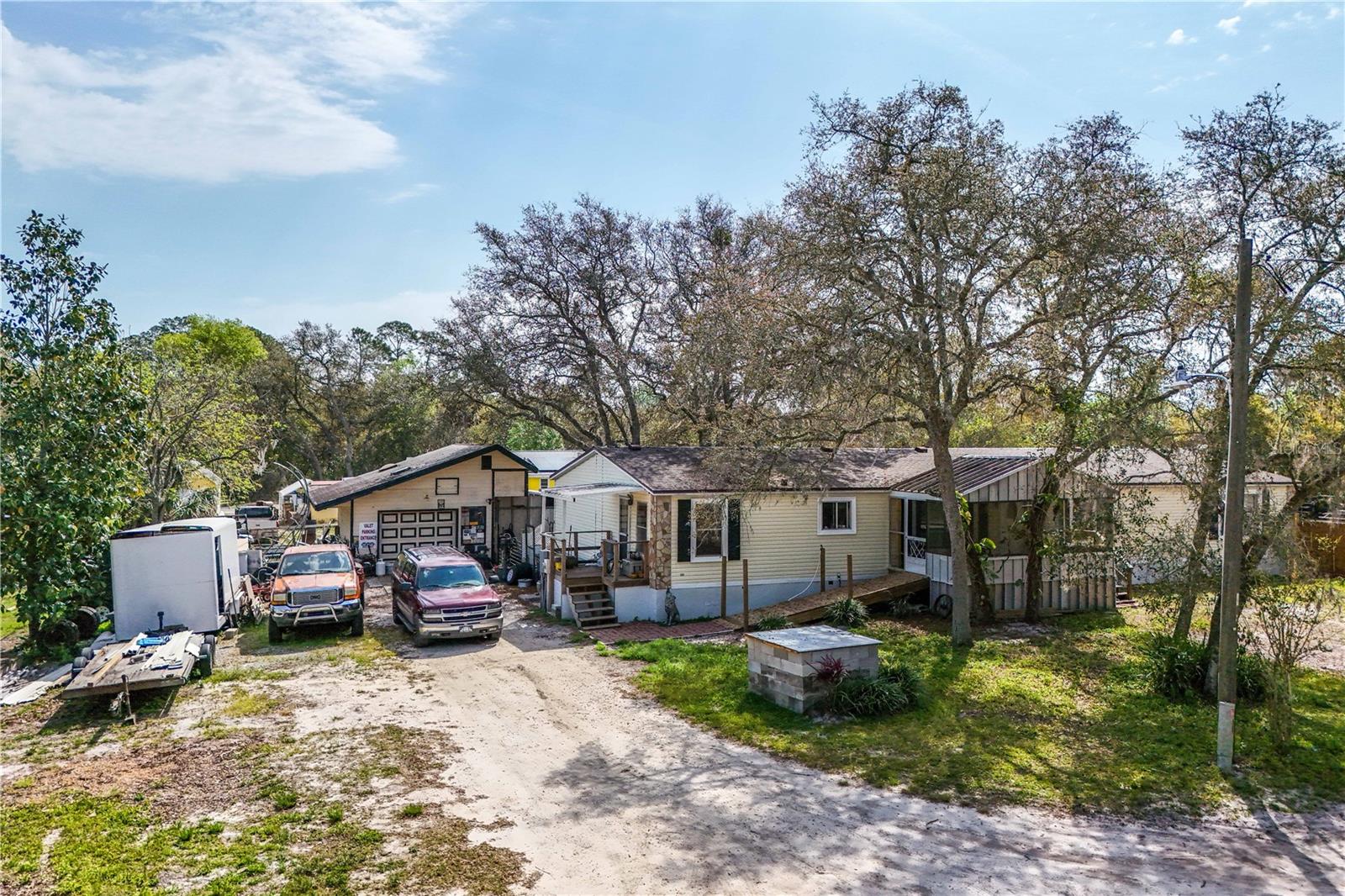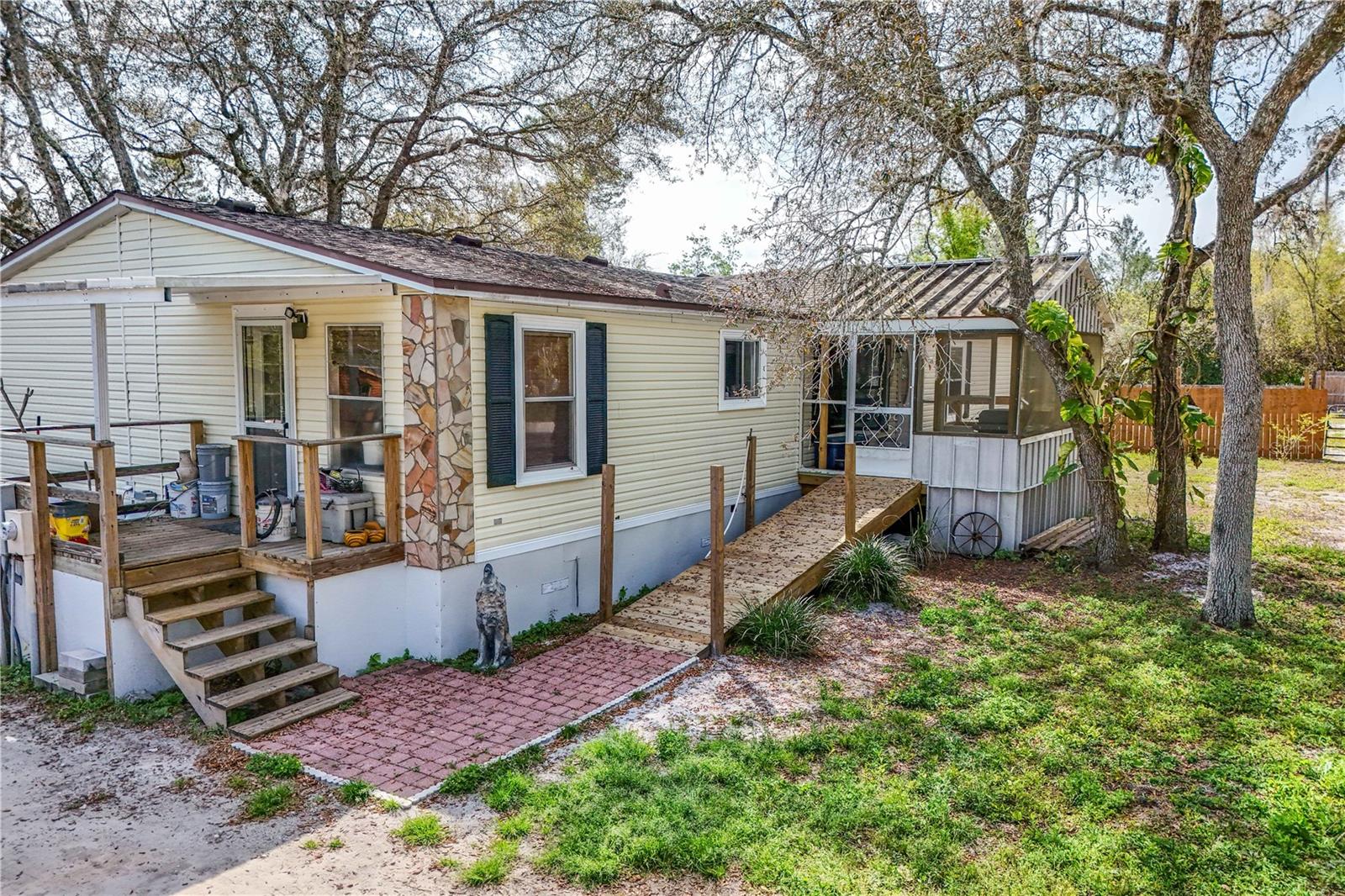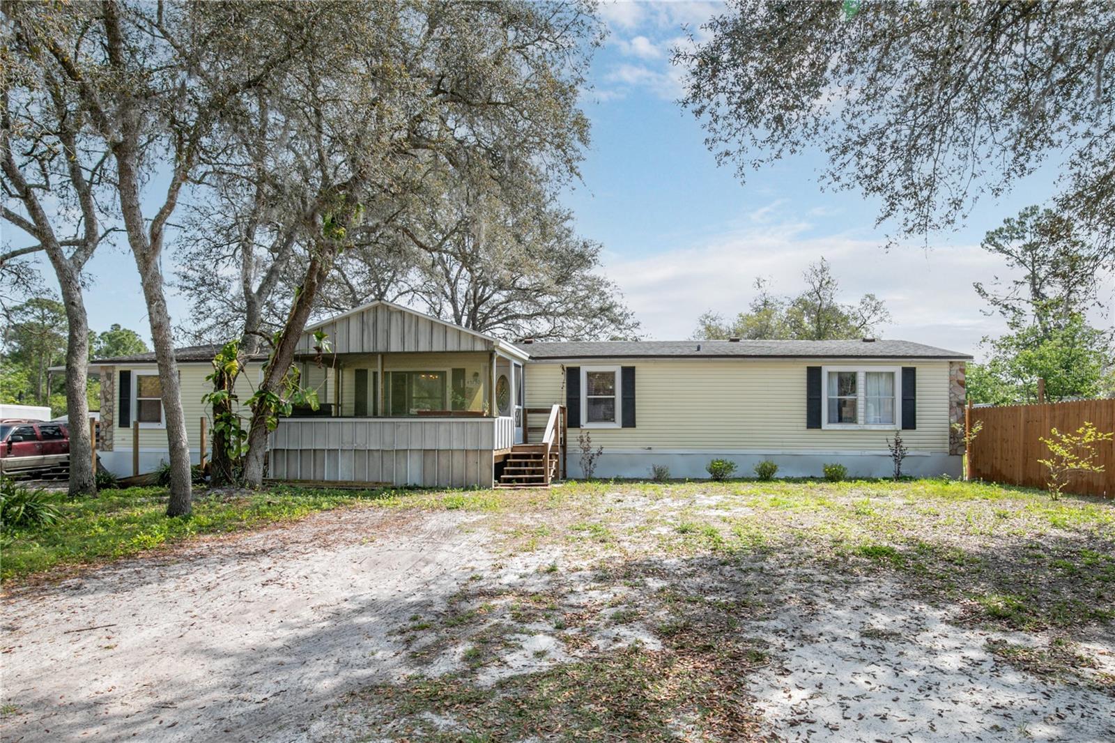 Are you looking for a large home, a large lot and a country setting, well you might have found it! This 2,300+- sq. ft. home on a half-acre lot is on a quiet road and has the majority of the property fenced in with a large gate. There's a detached garage and workshop; a front and back porch and it has a ramp to the front porch for easy access. The home has 3 bedrooms and 2 baths but there's a great room that can be converted into 2 more bedrooms. The Great room also has a wet bar with cabinets and a sink if you want to keep it as is for an entertainment area. It has a split floor plan, and the primary bedroom has a large ensuite with a garden tub and large walk-in shower. It has a large eat in kitchen which opens to the dining room and living room. If you need room both inside and out, then this is the property for you.