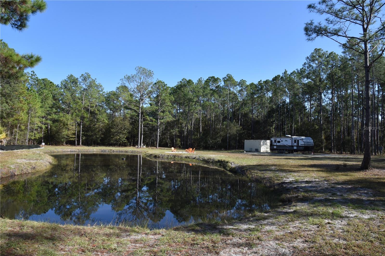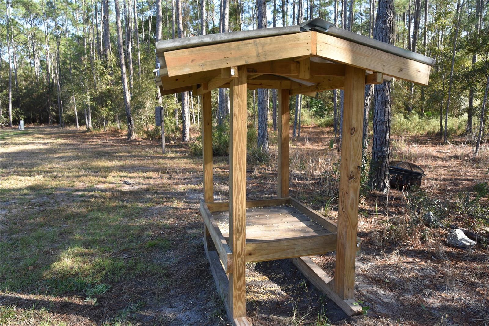 Tucked inside and surrounded by the Caravelle Ranch Wildlife Management Area, this secluded small-acreage hunting retreat offers a rare combination of privacy, low hunting pressure, and immediate usability. Because the surrounding WMA is a highly regulated quota hunt area, hunting pressure is extremely limited to only a few weekends each year, allowing this property to hunt far larger than its size and consistently hold quality wildlife. The land features a stocked pond that serves as a year-round water source and natural game magnet, drawing in whitetail deer, turkey, and wild hogs. With the surrounding WMA acting as a natural sanctuary, wildlife movement through the property remains steady throughout the season, creating excellent hunting opportunities in a peaceful, unpressured environment. This turn-key retreat is fully set up for comfortable stays and immediate enjoyment. A complete campsite is already in place, featuring a private water well, solar power system, and septic system, making extended trips easy and convenient. An enclosed deer blind and multiple feeders are included, providing a proven hunting setup that is ready to use from day one. Whether you are seeking a personal hunting hideaway, a weekend escape, or a long-term recreational investment, this rare offering delivers privacy, infrastructure, and productive hunting in one highly desirable package. *Jayco camper is NOT included in the listing price, but can potentially be purchased.