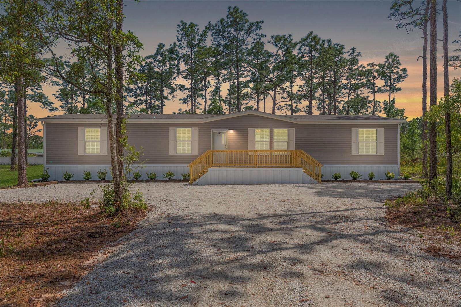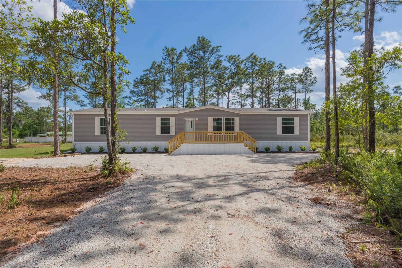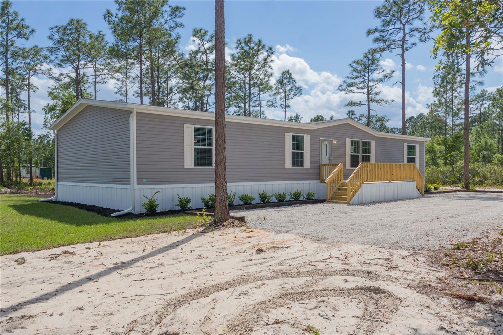 One or more photo(s) has been virtually staged. BUILT NEW 2024! Beautiful and pristine 2024 "Champion Homes/Homes of Merit" manufactured home, is nestled on a generous 1.19-acre lot close to historic St. Johns River and scenic walking trails. This 4-bedroom, 2-bathroom haven offers the perfect balance of modern comfort and natural beauty. Step inside to discover a refreshing, contemporary living space where luxury vinyl plank flooring stretches beneath your feet, leading you through an intuitively designed floorplan that maximizes both style and functionality. The heart of the home is equipped with brand-new appliances that add a sparkle to your culinary experiences. Freshly installed HVAC, gutters, and well equipment ensure year-round comfort and peace of mind, while the recent landscaping invites the outdoors in, creating a serene backdrop to your daily living. This location is a perfect spot to store your RV or boat for a quick weekend away or fishing adventure! Located just outside the quaint town of Palatka, this home offers an idyllic lifestyle where privacy, comfort, and the allure of the Florida wilderness come together. It's more than a home; it's your personal escape, where every day feels like a retreat from the bustle of the outside world.