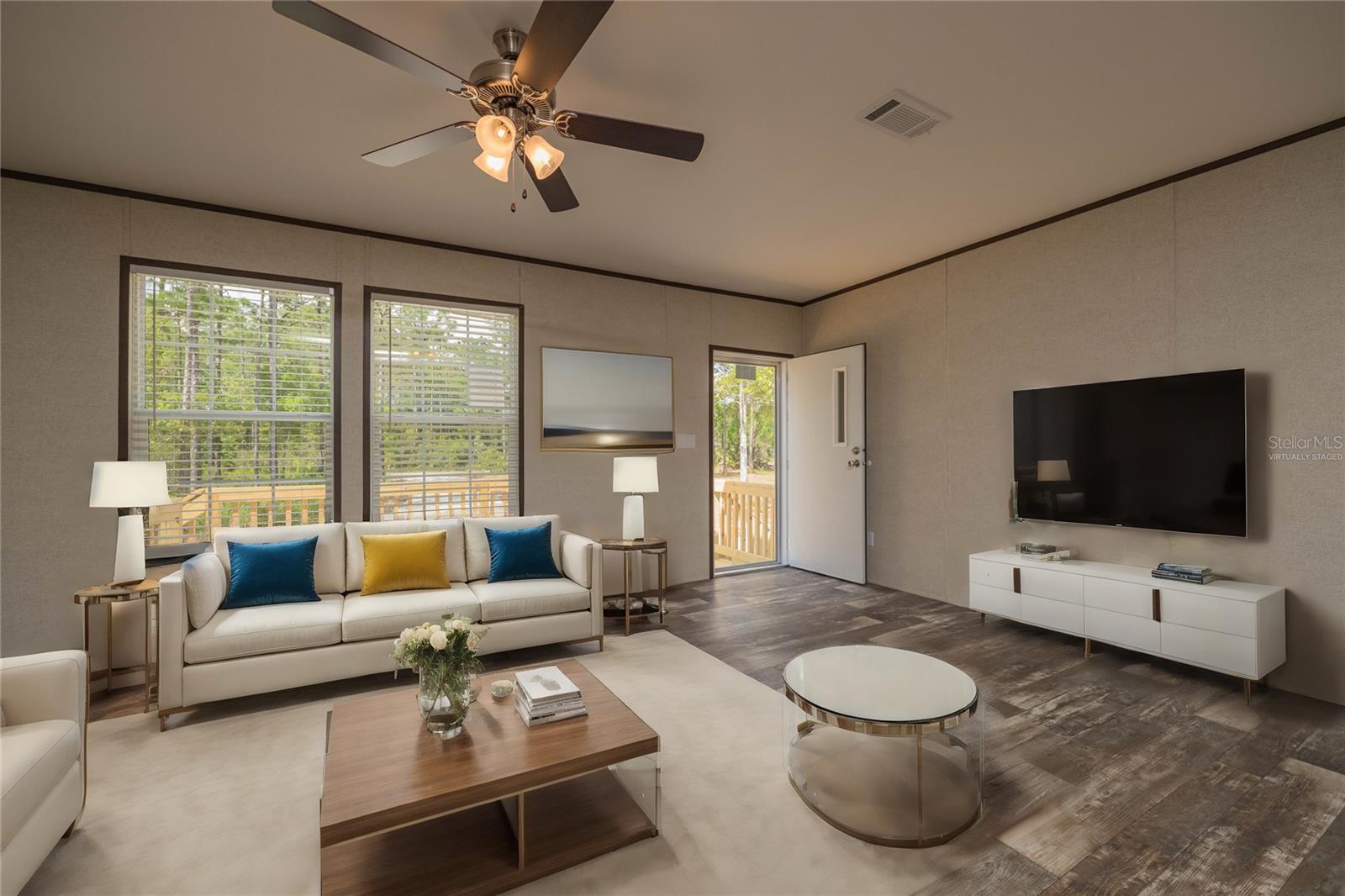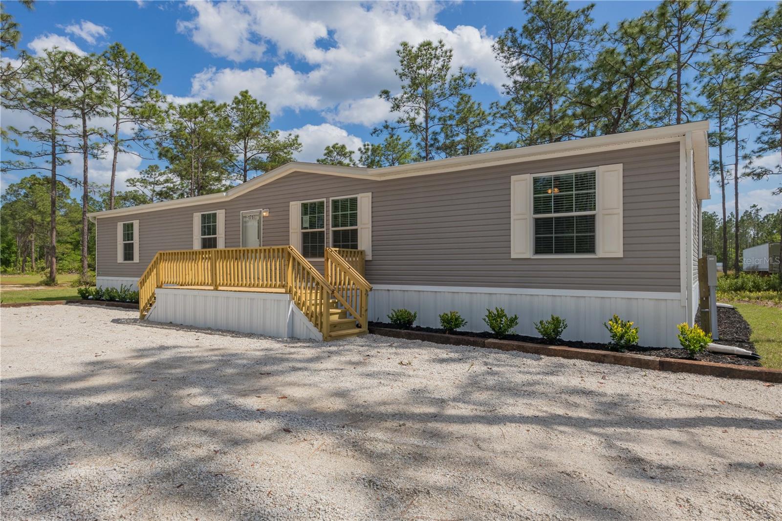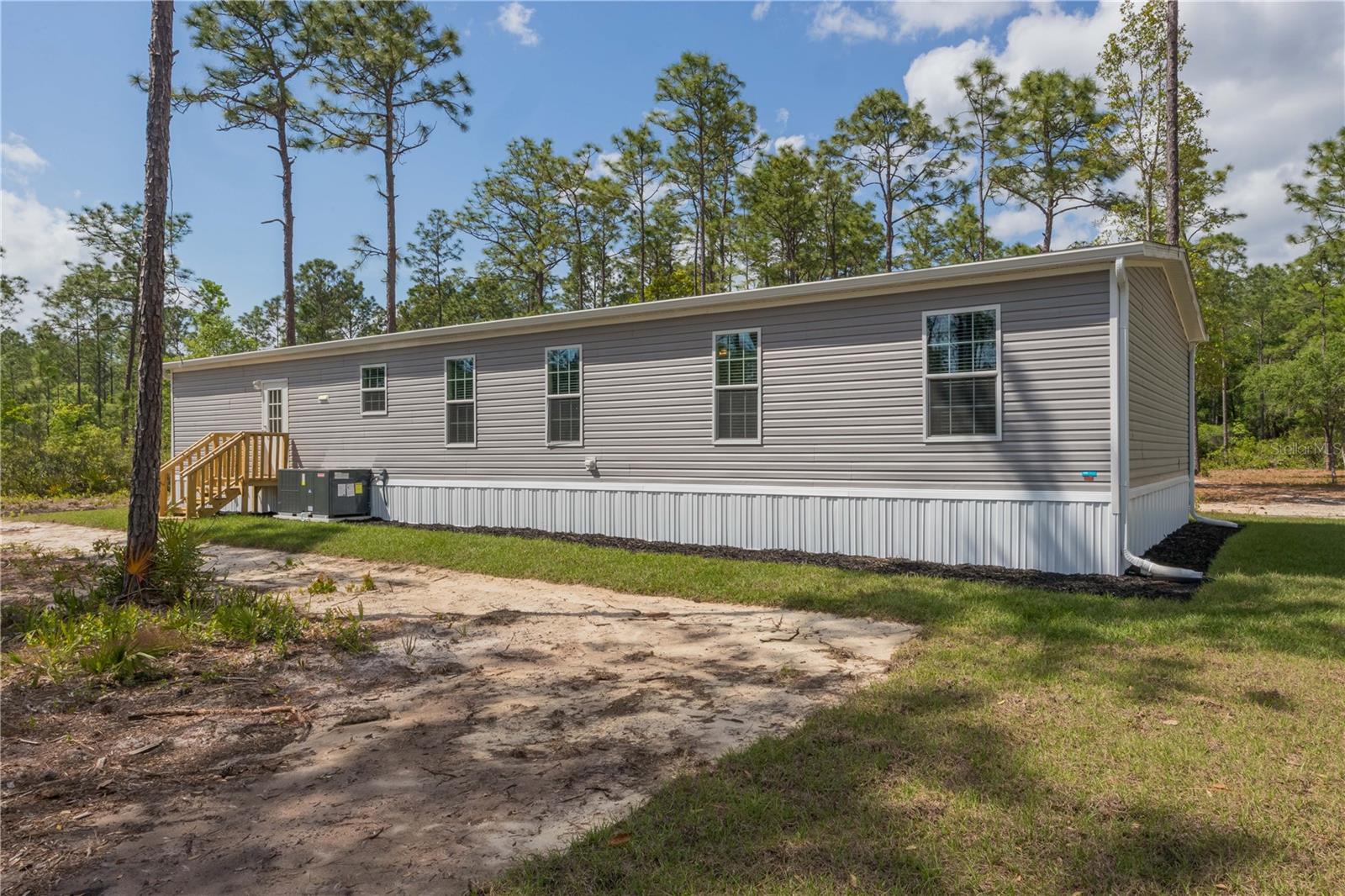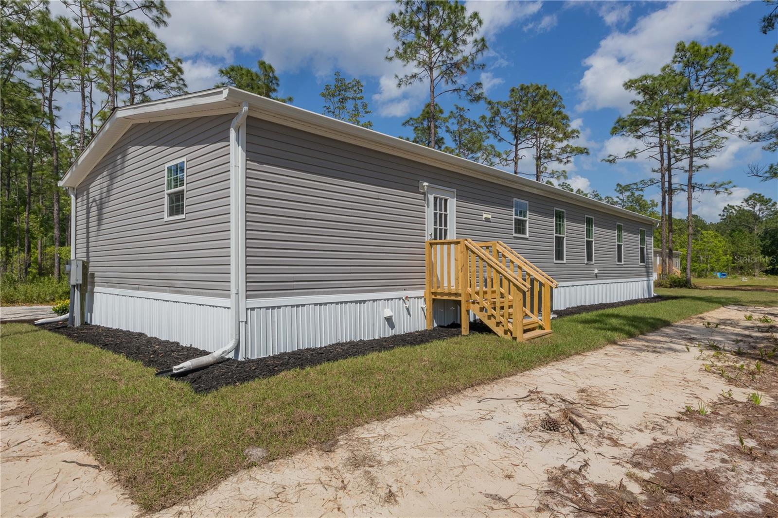 One or more photo(s) has been virtually staged. BUILT NEW 2024! Beautiful and pristine 2024 "Champion Homes/Homes of Merit" manufactured home, is nestled on a generous 1.19-acre lot close to historic St. Johns River and scenic walking trails. This 4-bedroom, 2-bathroom haven offers the perfect balance of modern comfort and natural beauty. Step inside to discover a refreshing, contemporary living space where luxury vinyl plank flooring stretches beneath your feet, leading you through an intuitively designed floorplan that maximizes both style and functionality. The heart of the home is equipped with brand-new appliances that add a sparkle to your culinary experiences. Freshly installed HVAC, gutters, and well equipment ensure year-round comfort and peace of mind, while the recent landscaping invites the outdoors in, creating a serene backdrop to your daily living. This location is a perfect spot to store your RV or boat for a quick weekend away or fishing adventure! Located just outside the quaint town of Palatka, this home offers an idyllic lifestyle where privacy, comfort, and the allure of the Florida wilderness come together. It's more than a home; it's your personal escape, where every day feels like a retreat from the bustle of the outside world.