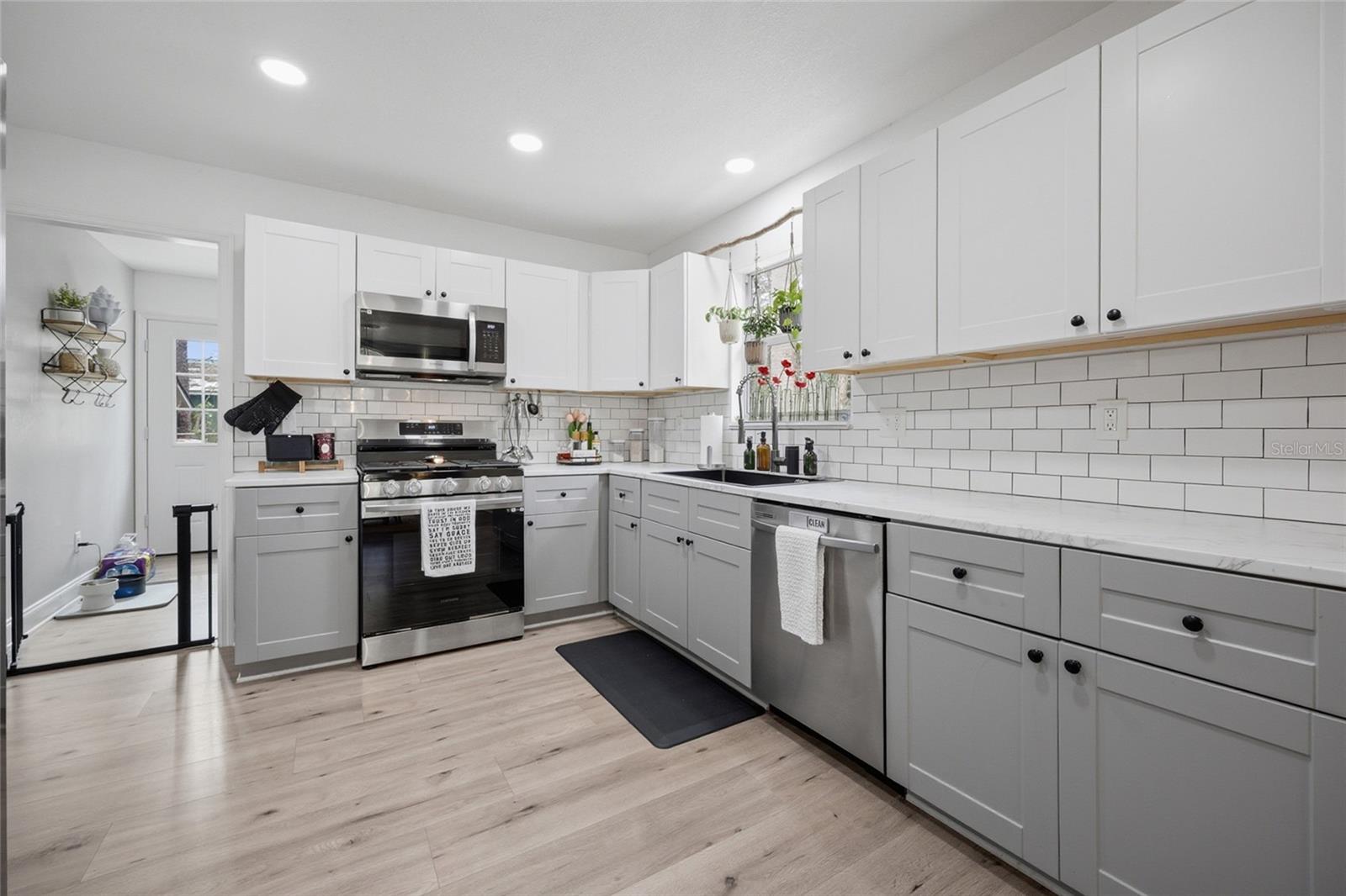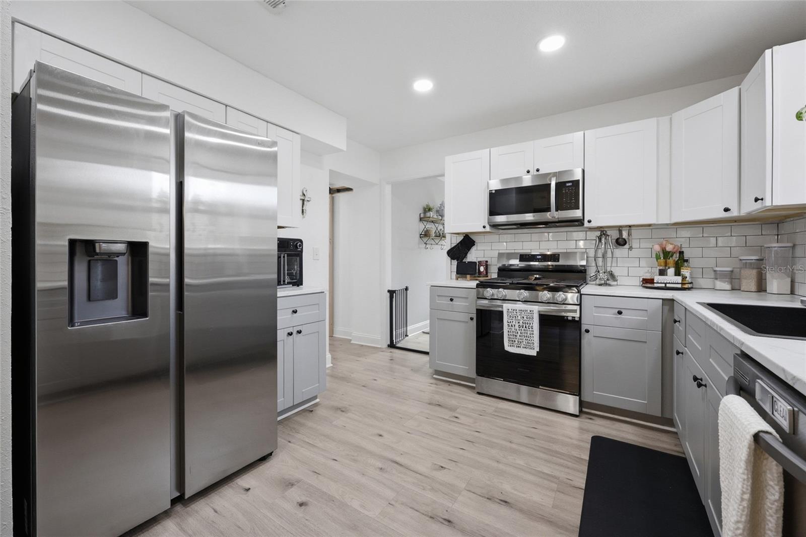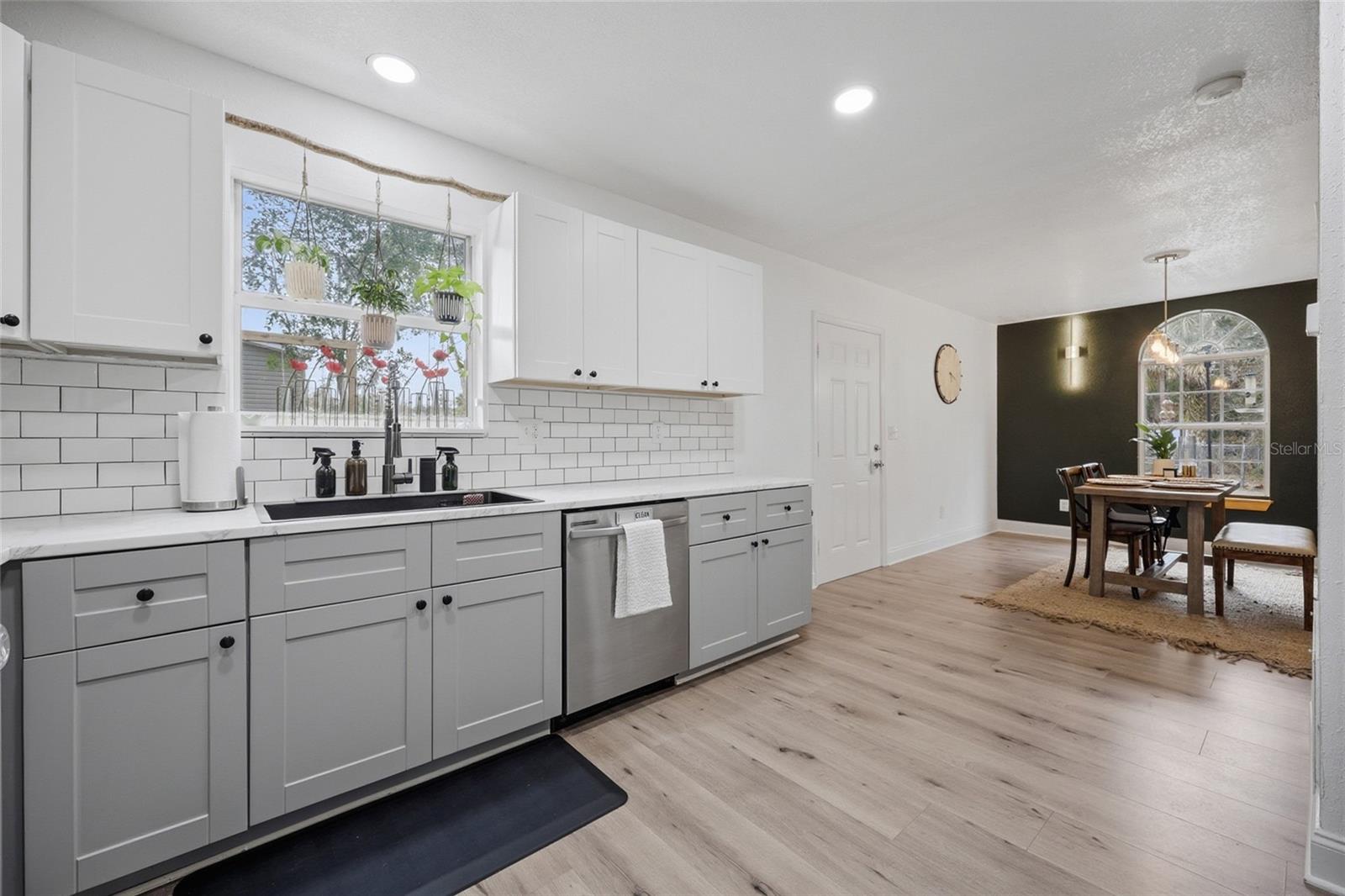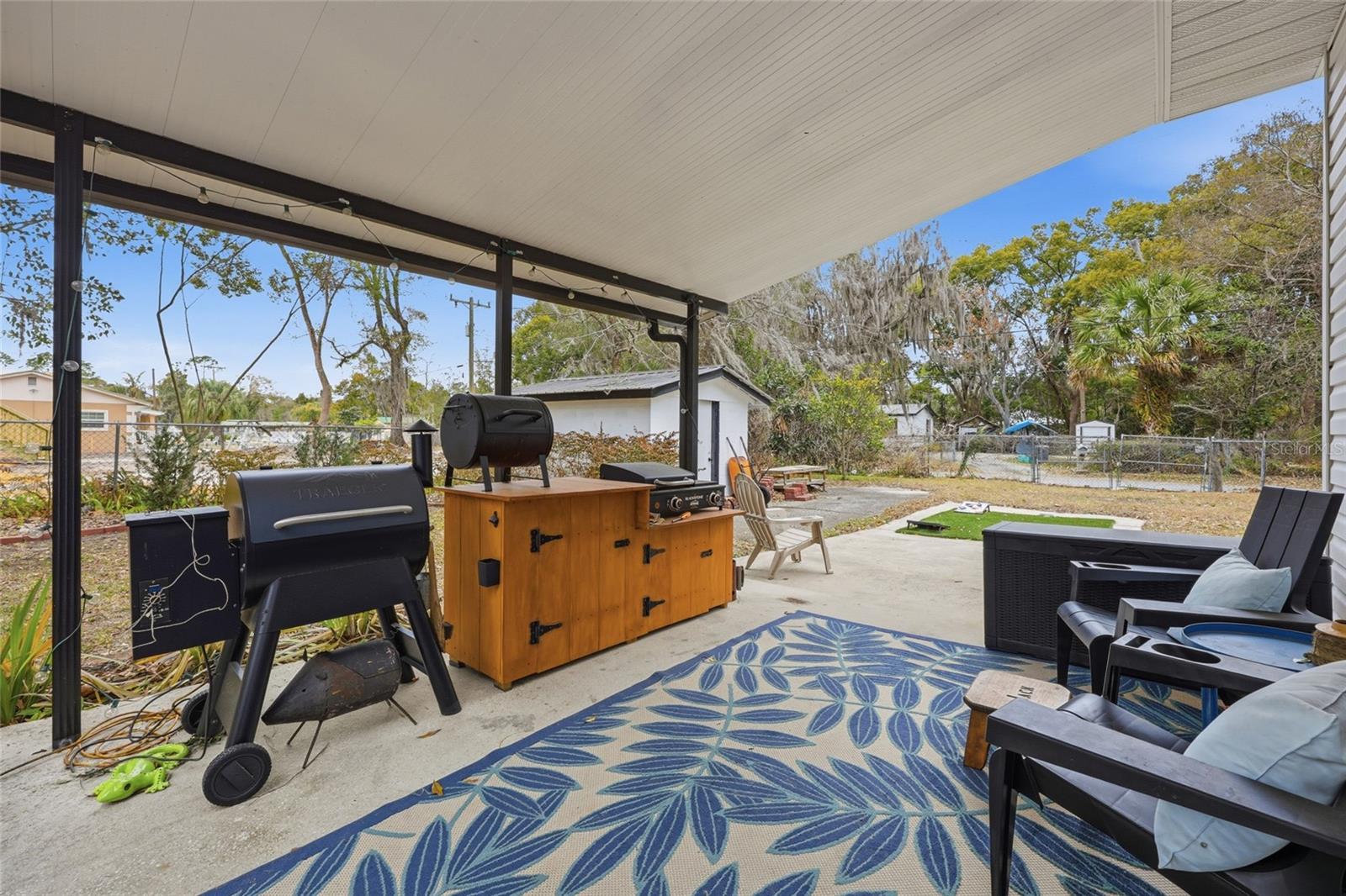 One-of-a-kind and full of character, this Mid-Century Modern-inspired home immediately commands your attention. Thoughtfully updated in 2023, with a metal roof installed in 2018 and a full re-plumb completed in 2025, this home offers the perfect blend of architectural charm and meaningful system upgrades. Drenched in natural light from oversized black-framed windows of every shape and size, the interior celebrates volume, texture, and design. The dramatic main living area features soaring 20-foot ceilings, a stunning balcony overlook, and a massive wood-burning brick fireplace--complete with a built-in wood box--creating the ultimate gathering and entertaining space, with a conveniently located half bath nearby.The primary suite is privately tucked beneath the balcony just off the main living area and features a modest yet stylish en-suite with a walk-in shower and double-sink vanity. Just down the hall, a dedicated office provides the perfect work-from-home retreat. The modern kitchen with gas range flows into a spacious dining room highlighted by a contemporary accent wall, while the walk-through laundry/mudroom adds everyday convenience. Upstairs, two large bedrooms are connected by a Jack-and-Jill bath, offering flexibility for family or guests. Outside, a wraparound concrete patio helps keep maintenance simple while extending your living and entertaining space outdoors. The covered rear patio is ideal for summer barbecues, and the spacious corner lot provides room for boats, trailers, and all your recreational toys. With well and septic service and no HOA, you'll enjoy both independence and functionality--all quietly located in the heart of Palatka just minutes from downtown, the riverfront, and Ravine Gardens State Park.