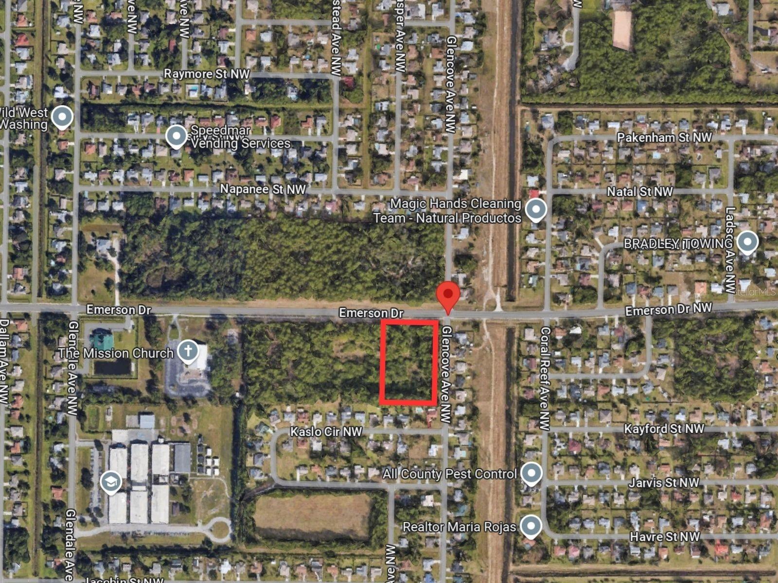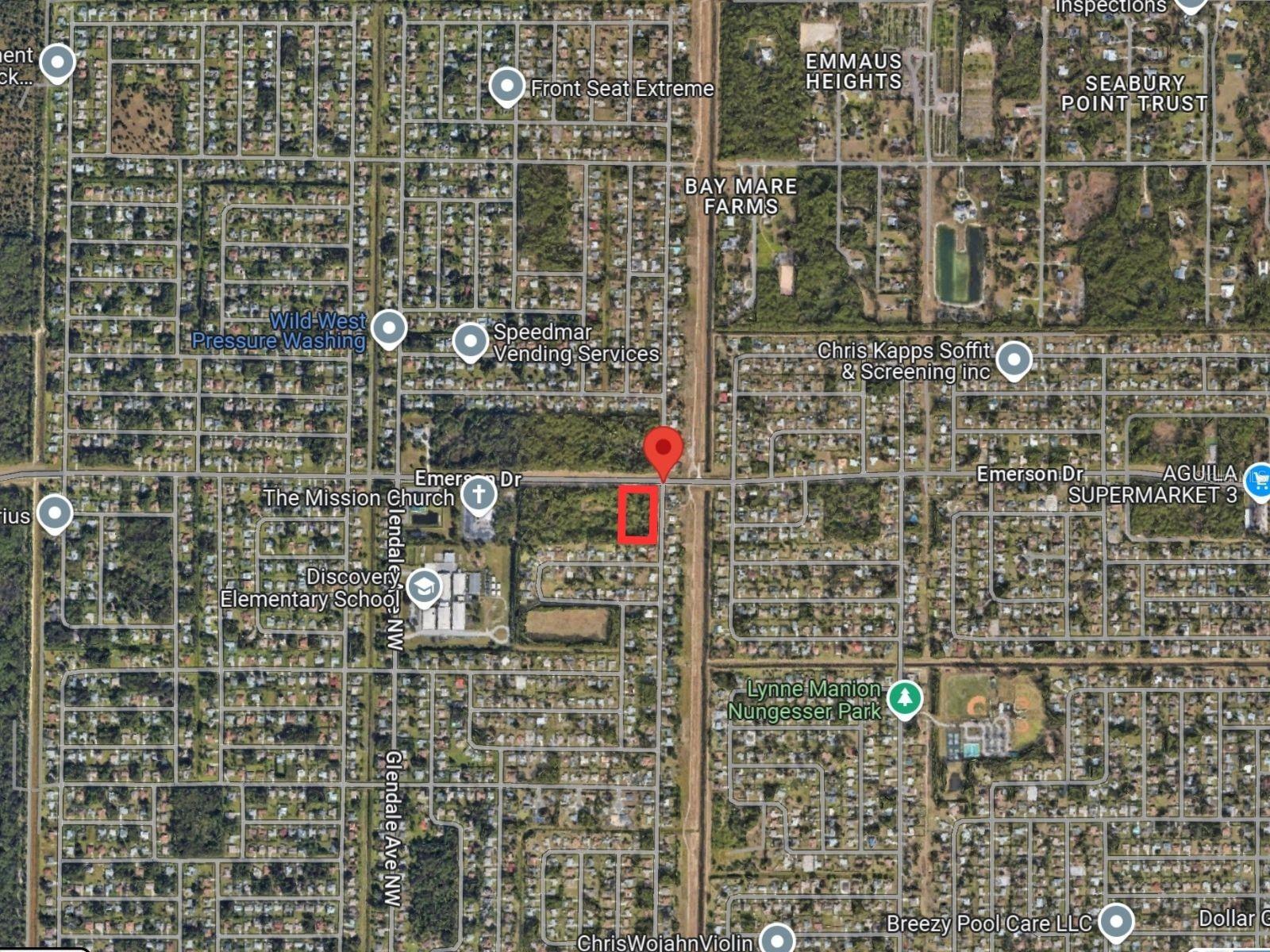 This 3-acre commercial land is approved for retail automotive gas/fuel sales. Situated at a signalized intersection along Emerson Dr, which is classified as a major collector road. The property has excellent visibility and access with utilities available. A conceptual plan includes: 3,000 sq ft gas station, Restaurant space, Retail/office space (approx. 20,500 sq ft total development). This prime location is ideal for commercial development in a rapidly growing area of Palm Bay, FL